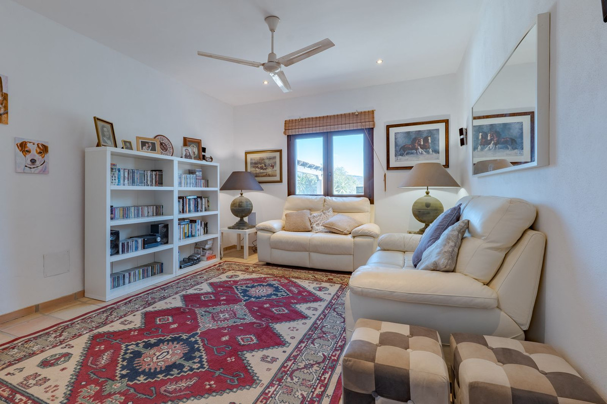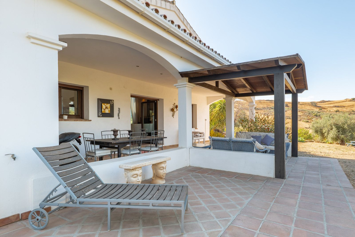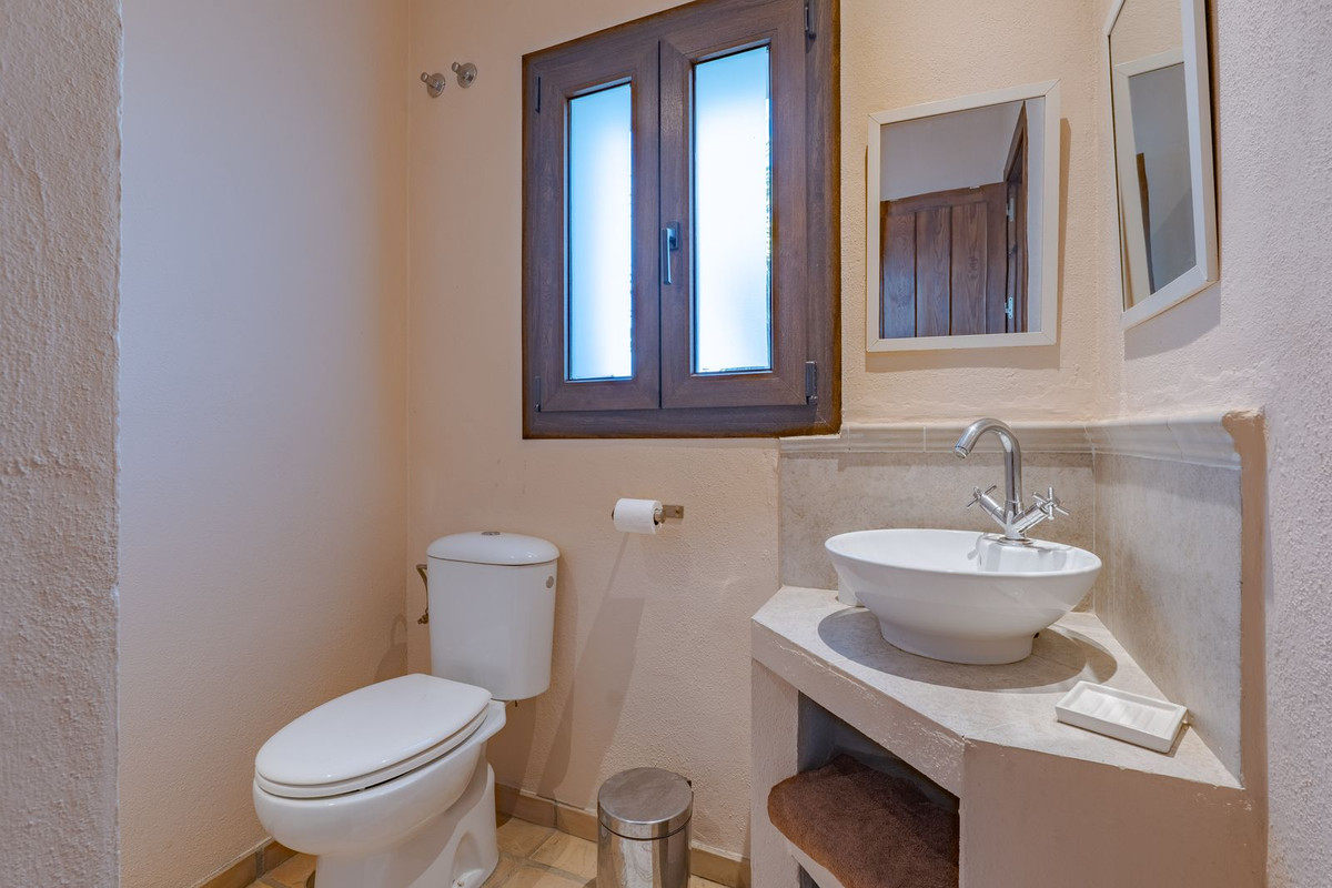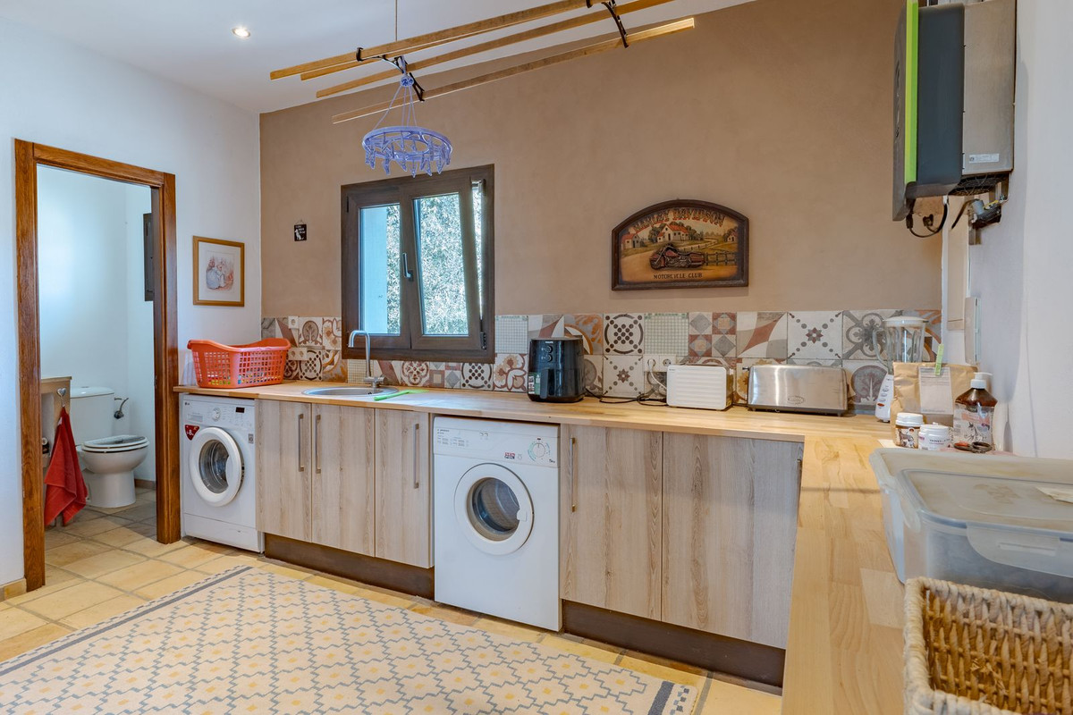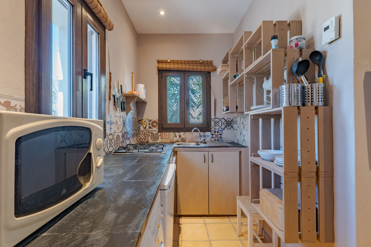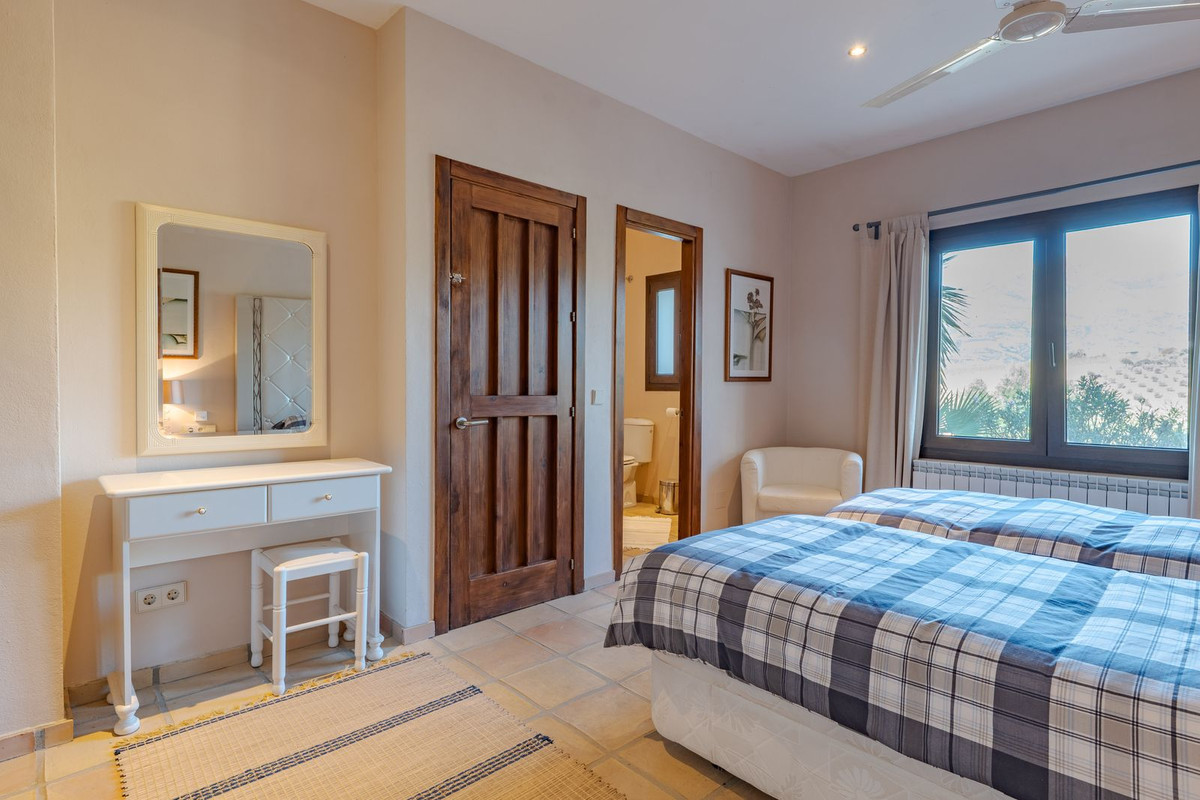 Exclusieve aanbieding! Dit ruime en comfortabele landhuis (Cortijo) is perfect voor een groot gezin, als luxe vakantiehuis of als investering met aanzienlijke verhuurmogelijkheden dankzij het onafhankelijke gastenverblijf. De woning verkeert in uitstekende staat en combineert authentieke charme met modern comfort. De adembenemende open indeling van de woonkamer, eetkamer en keuken vormt het hart van het huis. Hoge plafonds en grote ramen: deze architectonische kenmerken zorgen de hele dag voor maximale lichtinval en accentueren het ruimtelijke gevoel. Geniet op koelere avonden van de warmte van de open haard, omringd door charmante terracotta vloeren en de prachtige Spaanse houten voordeur die de landelijke sfeer benadrukt. De keuken is van alle gemakken voorzien en loopt naadloos over in de woonkamer, perfect voor gezelligheid en entertainment. Achter de keuken bevindt zich een ruime keuken/bijkeuken en een gastentoilet. Vanuit de woonkamer opent u de deuren naar het overdekte hoofdterras. Dit wordt uw favoriete plek om te dineren en te genieten van het spectaculaire uitzicht op de glooiende bergen. Een kleine trap leidt naar een gang die naar het hoofdslaapkamergedeelte leidt. Deze kamers zijn ruim en voorzien van praktische inbouwkasten, die optimale opbergruimte bieden. Uniek aan deze finca is het volledig afsluitbare en onafhankelijke gastenverblijf. Het is toegankelijk via het hoofdgebouw, maar heeft ook een eigen ingang, waardoor het ideaal is voor verhuur of als privédomein voor gasten. Dit appartement beschikt over: * 2 ruime slaapkamers, elk met een eigen badkamer. * keuken/woonkamer * Een groot privéterras met fantastisch uitzicht. Deze gastenaccommodatie biedt een uitstekende mogelijkheid om extra inkomsten te genereren door middel van vakantieverhuur (B&B/Vakantiehuis). Licencia de Primera Ocupación (LPO) aanwezig. De woning is voorzien van alle moderne gemakken: Airconditioning en centrale verwarming. Aangesloten op het elektriciteitsnet en voorzien van zonnepanelen. Aangesloten op het openbare drinkwaternet. Er is een goede internetverbinding beschikbaar. Privézwembad en terras: de perfecte plek om af te koelen tijdens de warme zomermaanden, met een adembenemend uitzicht over de vallei. Buitenbar en barbecueplek: Gelegen bij het zwembad, ideaal voor het organiseren van feesten, barbecues en lange zomeravonden. De tuin is beplant met volwassen olijfbomen en verschillende fruitbomen. Er is privéparkeergelegenheid op het terrein. De toegangsweg is grotendeels geasfalteerd. Alleen de laatste 600 meter zijn goed onderhouden onverharde wegen. Slechts 15 minuten rijden naar de charmante dorpjes Alozaina en Casarabonela. De internationale luchthaven van Malaga ligt op 45 minuten rijden, zodat u snel en eenvoudig van en naar uw thuisbasis kunt reizen. Finca - Cortijo, Casarabonela, Costa del Sol. 7 slaapkamers, 4,5 badkamers, bebouwd 362 m², terras 150 m². Ligging: Landelijk, Dichtbij de stad. Oriëntatie: Oost, Zuidwest. Staat: Goed. Zwembad: Privé. Klimaatregeling: Airconditioning, Centrale verwarming, Open haard. Uitzicht: Bergen, Platteland, Panoramisch, Tuin. Kenmerken: Inbouwkasten, Privéterras, Gastenappartement, Berging, Ensuite badkamer, Dubbel glas. Meubilair: Optioneel. Keuken: volledig ingericht. Tuin: Privé. Parkeren: Privé. Nutsvoorzieningen: elektriciteit, drinkwater, gas, fotovoltaïsche zonnepanelen. Categorie: Wederverkoop.