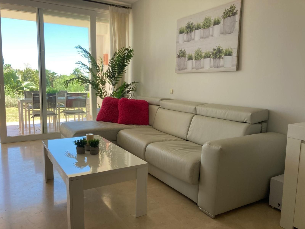 Prachtig appartement in Casares Costa met twee slaapkamers en twee badkamers, waar u kunt genieten van de ochtendzon op het prachtige tuinterras op het zuiden met uitzicht op de prachtige palmentuin en de zee in de verte. Gelegen in een spectaculair complex met drie zwembaden, een prachtige golfbaan en de fantastische turquoise lagune met parelwit zandstrand, waar u kunt kanoën, surfen, fitnessen en nog veel meer. Een modern appartement met airconditioning, een volledig uitgeruste keuken en een gezellige woonkamer met directe toegang tot het terras in een uniek en exclusief complex op korte afstand van Marbella en Estepona. Parkeerplaats en berging zijn bij de prijs inbegrepen.