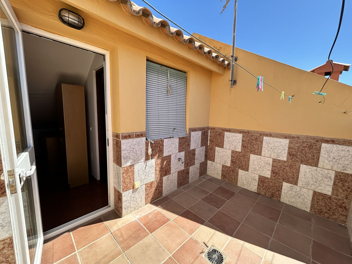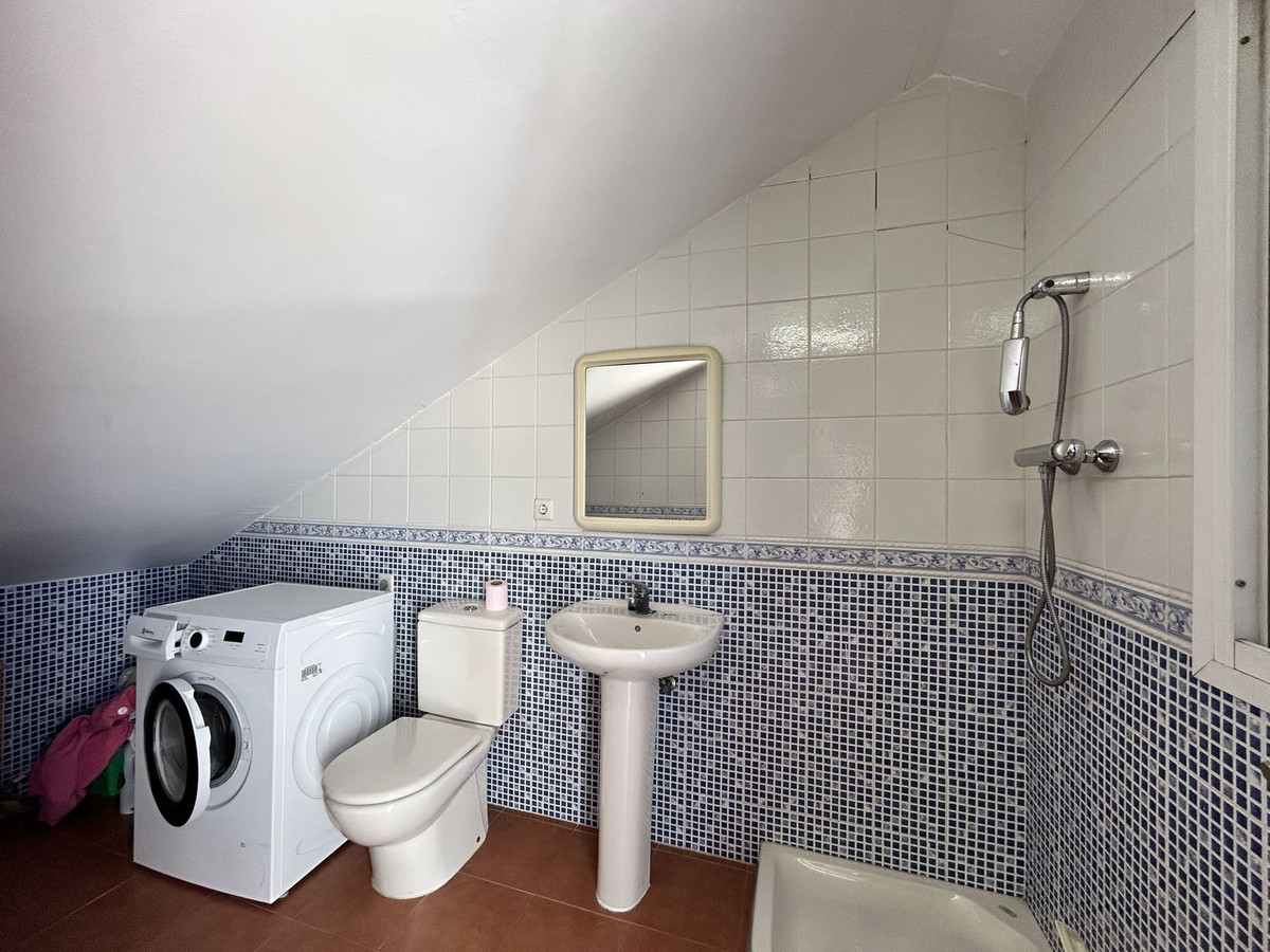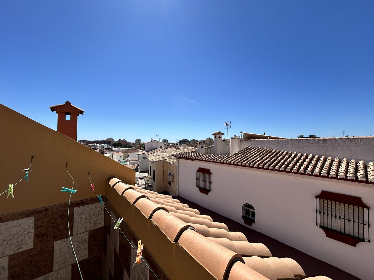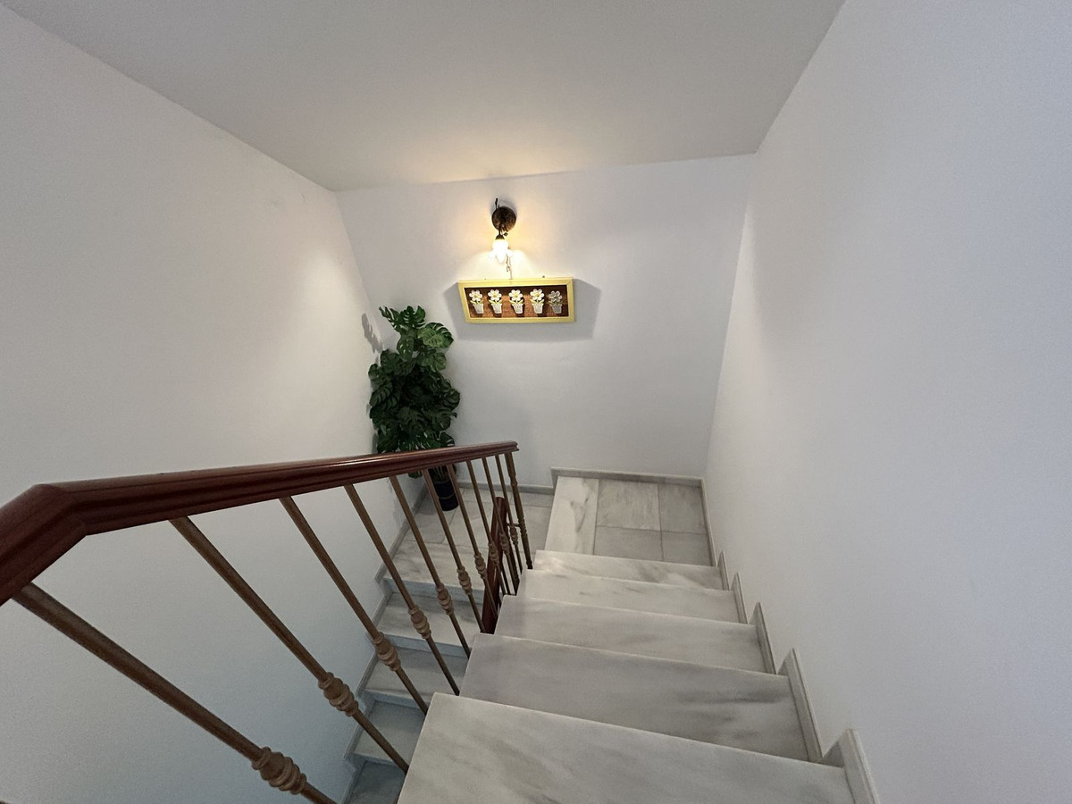 Ruime twee-onder-een-kapwoning te koop in het centrum van Los Pacos, Fuengirola. De woning beschikt over 4 slaapkamers, 2 terrassen, 3 badkamers, een gastentoilet, een entree, een binnenpatio en een eigen parkeerplaats. De woning is verdeeld over 3 verdiepingen. Op de begane grond bevinden zich de entree en parkeerplaats, een ruime woonkamer van 24 m², een grote keuken met eetkamer die grenst aan de circa 7 m² grote binnenporch, en een gastentoilet. Op de eerste verdieping bevinden zich drie slaapkamers. Eén daarvan heeft een eigen badkamer, een andere slaapkamer grenst aan een terras van 12 m² en de derde heeft toegang tot een balkon. Op deze verdieping bevindt zich ook nog een badkamer met een ligbad en een raam aan de buitenzijde voor natuurlijk licht en ventilatie. Alle kamers zijn naar buiten gericht. De tweede verdieping is open en heeft dakkapellen. Er is ook een badkamer met douche en toegang tot een terras met vrij uitzicht. De afwerking van het huis is van hoge kwaliteit: de vloer is van steengoed met een terracotta afwerking, wat zorgt voor warmte en duurzaamheid. Het meubilair bestaat uit klassieke houten elementen, wat een gezellige en tijdloze sfeer creëert. De binnendeuren en inbouwkasten zijn gemaakt van massief hout, met een klassiek design dat warmte uitstraalt. De kasten bieden veel opbergruimte en sluiten harmonieus aan op de kamers. De ramen op de begane grond zijn van wit aluminium en op de andere verdiepingen van donker aluminium. Ze zijn voorzien van dubbele beglazing en jaloezieën, wat zorgt voor een uitstekende thermische en akoestische isolatie. De woning ligt in een centraal gebied, dichtbij alle voorzieningen, openbaar vervoer, scholen en winkels. Er zijn geen gemeenschapskosten aan dit pand verbonden! Mis deze kans niet en neem vrijblijvend contact met ons op om een bezichtiging in te plannen. Eventuele kosten die voortvloeien uit het aankoopproces, zoals notariskosten, registratiekosten en overdrachtsbelasting, zijn niet bij de prijs inbegrepen.