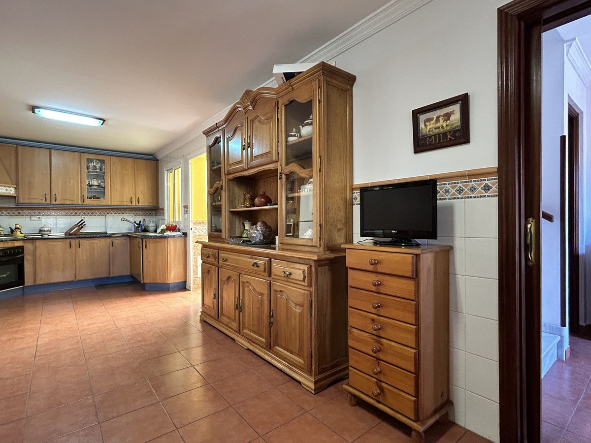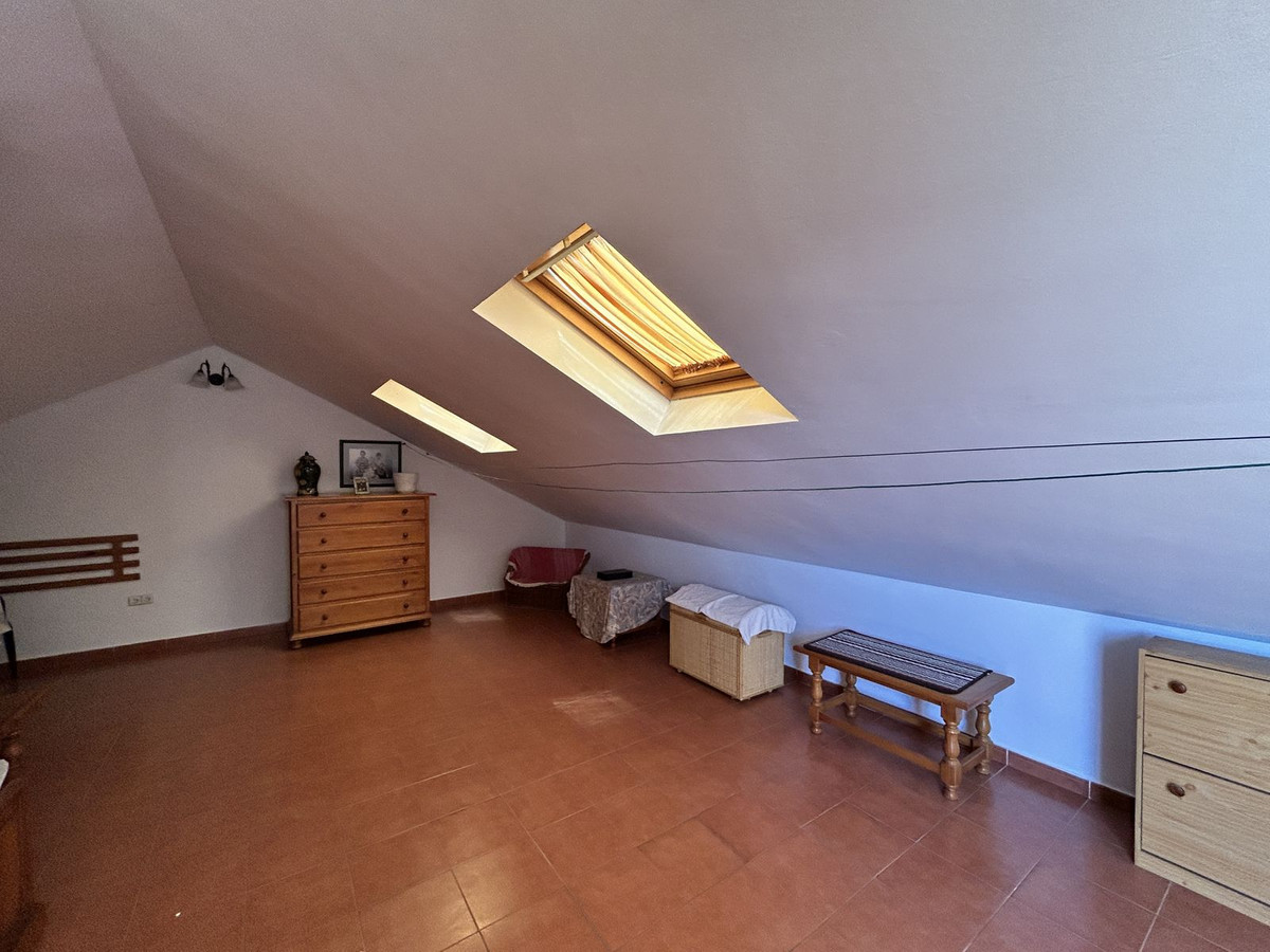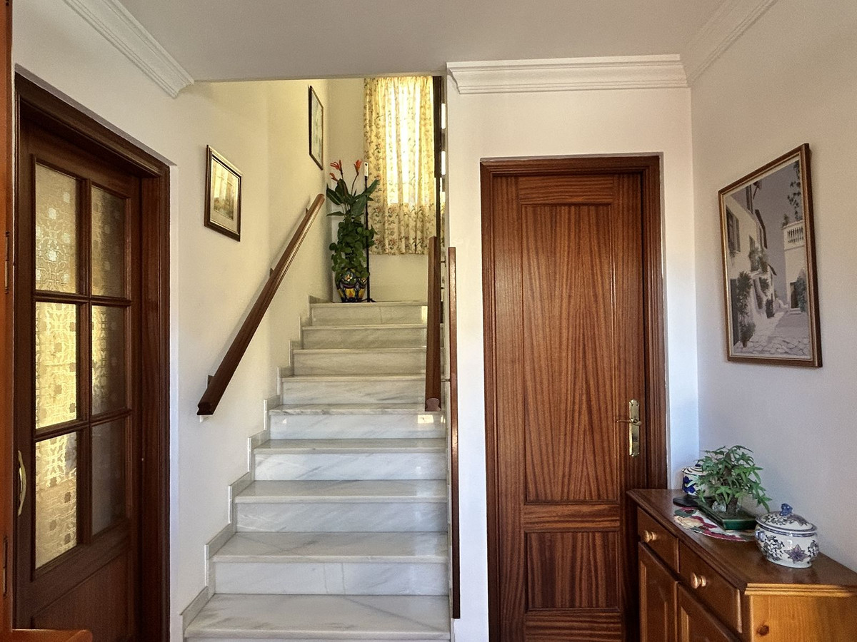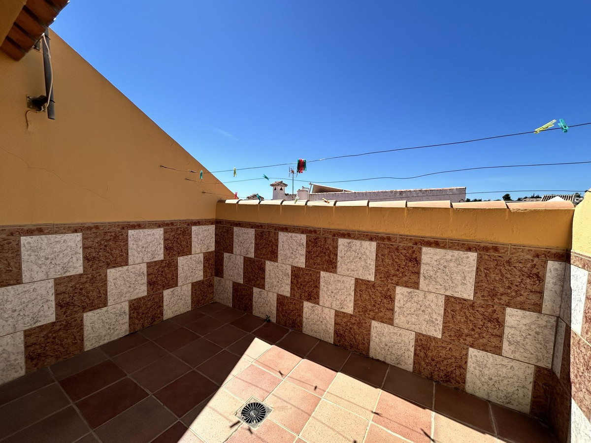 Ruime twee-onder-een-kapwoning te koop in het centrum van Los Pacos, Fuengirola. De woning beschikt over 4 slaapkamers, 2 terrassen, 3 badkamers, een gastentoilet, een entree, een binnenpatio en een eigen parkeerplaats. De woning is verdeeld over 3 verdiepingen. Op de begane grond bevinden zich de entree en parkeerplaats, een ruime woonkamer van 24 m², een grote keuken met eetkamer die grenst aan de circa 7 m² grote binnenporch, en een gastentoilet. Op de eerste verdieping bevinden zich drie slaapkamers. Eén daarvan heeft een eigen badkamer, een andere slaapkamer grenst aan een terras van 12 m² en de derde heeft toegang tot een balkon. Op deze verdieping bevindt zich ook nog een badkamer met een ligbad en een raam aan de buitenzijde voor natuurlijk licht en ventilatie. Alle kamers zijn naar buiten gericht. De tweede verdieping is open en heeft dakkapellen. Er is ook een badkamer met douche en toegang tot een terras met vrij uitzicht. De afwerking van het huis is van hoge kwaliteit: de vloer is van steengoed met een terracotta afwerking, wat zorgt voor warmte en duurzaamheid. Het meubilair bestaat uit klassieke houten elementen, wat een gezellige en tijdloze sfeer creëert. De binnendeuren en inbouwkasten zijn gemaakt van massief hout, met een klassiek design dat warmte uitstraalt. De kasten bieden veel opbergruimte en sluiten harmonieus aan op de kamers. De ramen op de begane grond zijn van wit aluminium en op de andere verdiepingen van donker aluminium. Ze zijn voorzien van dubbele beglazing en jaloezieën, wat zorgt voor een uitstekende thermische en akoestische isolatie. De woning ligt in een centraal gebied, dichtbij alle voorzieningen, openbaar vervoer, scholen en winkels. Er zijn geen gemeenschapskosten aan dit pand verbonden! Mis deze kans niet en neem vrijblijvend contact met ons op om een bezichtiging in te plannen. Eventuele kosten die voortvloeien uit het aankoopproces, zoals notariskosten, registratiekosten en overdrachtsbelasting, zijn niet bij de prijs inbegrepen.
