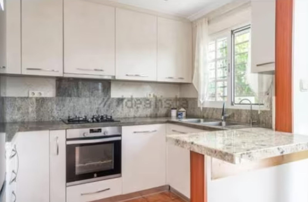 Je voelt de tuin al vanaf de eerste stap. Zodra je binnenkomt, opent de woonkamer zich en leidt naar de geïntegreerde keuken – perfect om te koken en te kletsen. Aan het einde steelt de eetkamer met glazen wanden de show: de volledig openslaande glazen deuren verbinden het terras met het gazon en het zwembad; zo vloeien zonnige ontbijtjes, zomerdutjes en lange diners in één vloeiende beweging van binnen en buiten. Vervolgens scheidt een gang het nachtgedeelte: drie rustige, lichte slaapkamers; de hoofdslaapkamer, met eigen badkamer, zorgt voor privacy. Aansluitend bevindt zich de tweede badkamer – gerenoveerd met een inloopdouche en strakke lijnen – die de andere twee slaapkamers bedient. Bovendien maken keramische vloeren het dagelijks leven gemakkelijk en garandeert airconditioning in het daggedeelte het hele jaar door comfort; als extraatje zorgen veiligheidsroosters voor de ramen aan de buitenkant voor gemoedsrust zonder dat het licht verloren gaat. Vanaf uw verhoogde terras loopt u een paar treden naar beneden en komt u direct in de gemeenschappelijke tuin met palmbomen en een zwembad terecht – een serene omgeving om in de buitenlucht te lezen, spelen of werken. En zodra u het complex verlaat, is de locatie uitstekend: een woonstraat in Nueva Andalucía, op korte loopafstand van Puerto Banús en Centro Plaza, met voorzieningen, restaurants en supermarkten op slechts enkele minuten loopafstand. Bovendien bereikt u met de auto in een mum van tijd de Golfvallei (Aloha, Las Brisas, Los Naranjos), internationale scholen en de oprit A-7/AP-7. Kortom, een gelijkvloerse woning die binnen- en buitenleven combineert in een van de best gelegen wijken van Marbella. Zullen we hem bezichtigen?