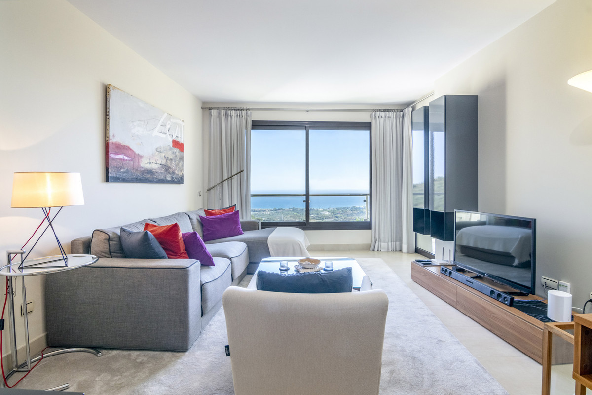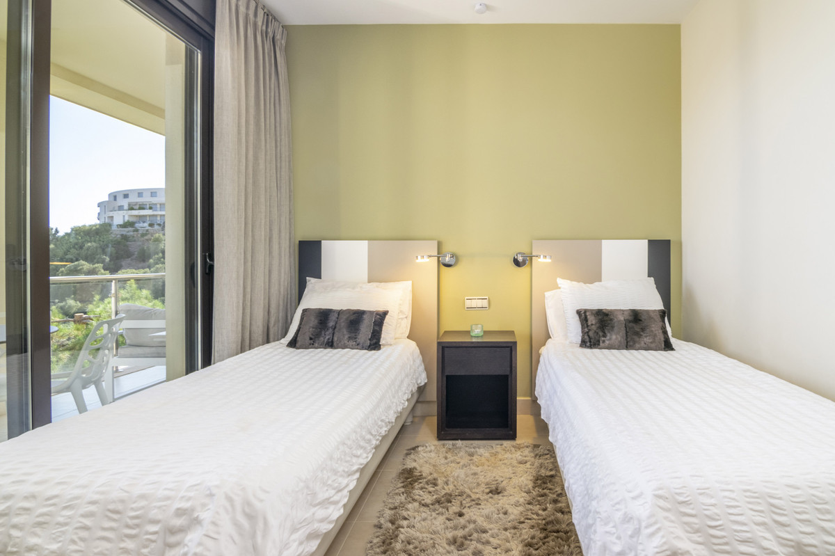 Stijlvol en modern, dit appartement met twee slaapkamers in het exclusieve Samara Resort in Marbella biedt een prachtig panoramisch uitzicht op de Middellandse Zee. Het appartement ligt op de eerste verdieping en is gemakkelijk bereikbaar via de prachtig aangelegde tuinen van het resort. Het appartement heeft een lichte en open indeling die de volledig uitgeruste keuken, eetkamer en woonkamer naadloos met elkaar verbindt, perfect voor een ontspannen leven aan de kust. Beide slaapkamers komen uit op een ruim terras met uitzicht op het zwembad en de zee, terwijl de master suite een elegante en-suite badkamer, kleedruimte en ruime inbouwkasten heeft. Een tweede badkamer met een strak, minimalistisch design, samen met een wasruimte en opbergruimte, zorgen voor dagelijks gemak. Gelegen in een luxe gated community met 24-uurs beveiliging, kunnen bewoners genieten van uitstekende voorzieningen, waaronder een spa, sauna, jacuzzi, massageruimte, verwarmd binnenzwembad, fitnessruimte en twee buitenzwembaden, waarvan één een indrukwekkend infinity pool is met adembenemend uitzicht op zee.