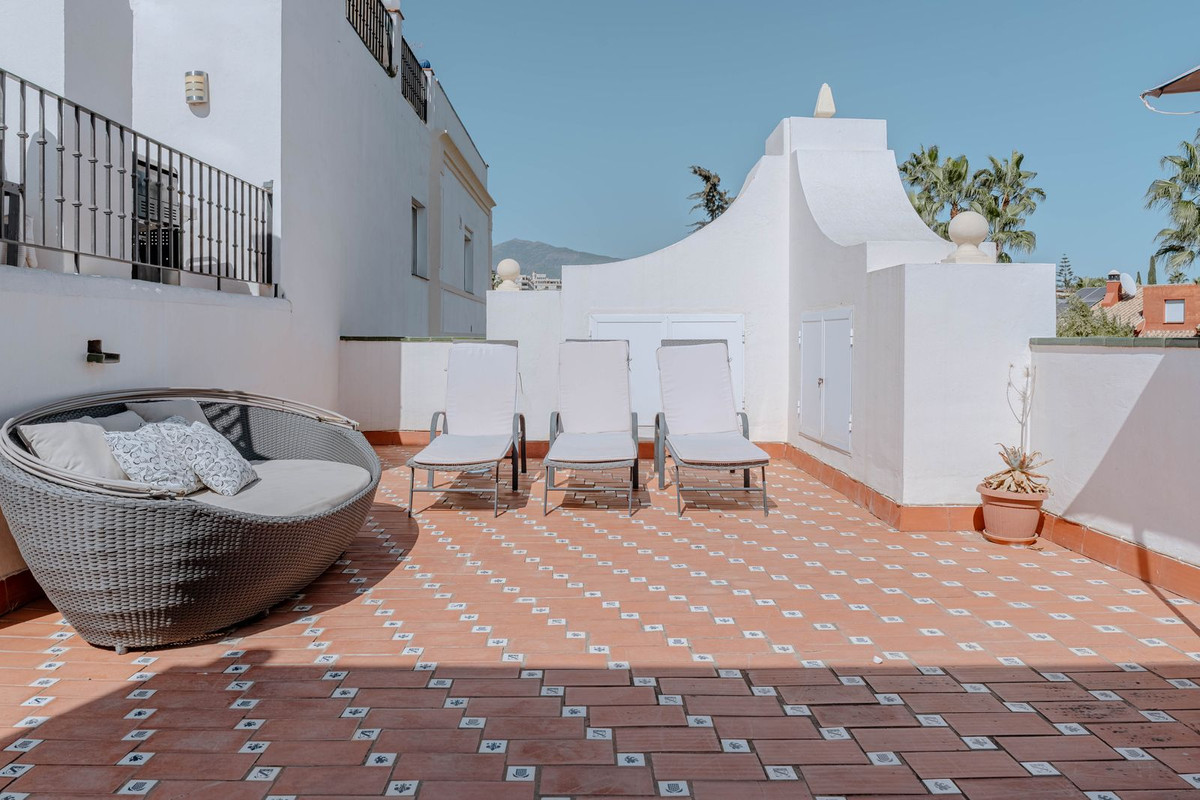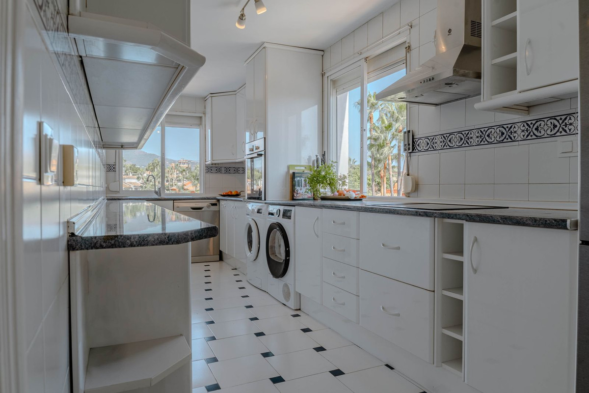 Ruim appartement met groot terras, de hele dag zon en een toplocatie tussen Marbella en Estepona Welkom in dit lichte en ruime appartement in de gewilde wijk Atalaya / Monte Biarritz, perfect gelegen tussen Marbella en Estepona. Gelegen in een rustige en goed onderhouden woonwijk, dicht bij scholen, golfbanen, supermarkten en openbaar vervoer, geniet deze woning van de zon van 's ochtends tot 's avonds. Het appartement biedt 147 m² woonoppervlakte, verdeeld over drie slaapkamers en twee badkamers, en biedt daarmee voldoende ruimte voor familie en gasten. Het hoogtepunt van de woning is het enorme terras van 127 m² met een prachtig uitzicht, ideaal om het hele jaar door te entertainen, te ontspannen en te genieten van het buitenleven. De royale buitenruimte maakt dit huis echt bijzonder. Binnen biedt het appartement veel mogelijkheden voor modernisering en persoonlijke accenten. De indeling is praktisch en biedt volop mogelijkheden om naar eigen smaak een unieke, stijlvolle woning te creëren. De gemeenschap is prachtig onderhouden en beschikt over een prachtig zwembad en weelderige tuinen die een rustige en uitnodigende sfeer creëren. Er is ook een garage en een lift die u rechtstreeks naar het appartement brengt, voor maximaal comfort en gemak in het dagelijks leven. Dit is een woning met enorm veel potentieel en een fantastische ligging, precies tussen Marbella en Estepona. Vanuit hier heeft u eenvoudig toegang tot alles wat u nodig heeft voor een comfortabel en zonnig leven aan de Costa del Sol.