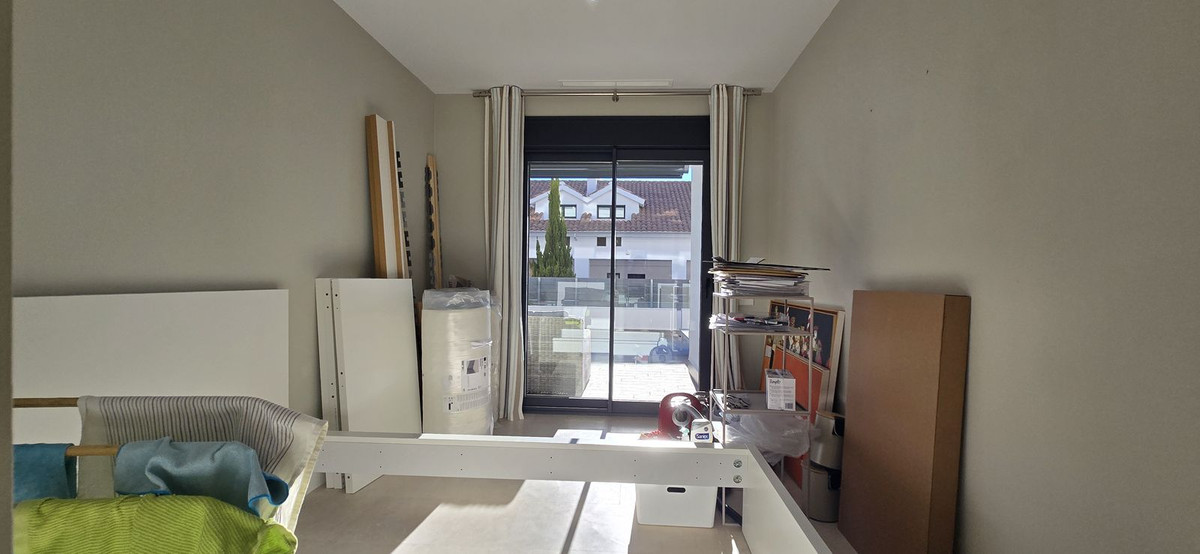 Estepona – Nieuwe Gouden Mijl Ontdek een unieke kans om eigenaar te worden van een licht, ruim en modern appartement met een groot privéterras met een prachtig uitzicht op de bergen. Deze stijlvolle woning verkeert in uitstekende staat. Bij binnenkomst zult u direct het gevoel van ruimte ervaren dat ontstaat door de open indeling, met een moderne Amerikaanse keuken en een royale woonkamer die naadloos aansluit op het ruime terras – de perfecte plek om te genieten van het heerlijke klimaat van de Costa del Sol. Het terras is verdeeld over twee niveaus: het onderste niveau beschikt over een privéjacuzzi, ideaal om in alle privacy te ontspannen. Beide slaapkamers hebben directe toegang tot het terras, waardoor de kamers baden in natuurlijk licht. De logeerkamer is voorzien van inbouwkasten, terwijl de hoofdslaapkamer beschikt over een inloopkast en een ruime en-suite badkamer met dubbele wastafels en een ligbad. Er is ook een moderne gastenbadkamer met een inloopdouche. Bij het pand horen twee privéparkeerplaatsen en een berging. Ocean Hills, gebouwd in 2016, biedt uitstekende gemeenschappelijke voorzieningen, waaronder twee zwembaden (één voor kinderen), een fitnessruimte en een ondergrondse parkeergarage. De locatie is ideaal: op slechts 5 minuten van de Atlas International School, op 3 minuten van de golfbaan La Resina en op minder dan 10 minuten van het strand en de lokale supermarkten. Het centrum van Estepona en Puerto Banús liggen op slechts 12 tot 15 minuten rijden. Extra functies: Elektrische jaloezieën Elektrische zonneschermen 2 parkeerplaatsen Opslagruimte
