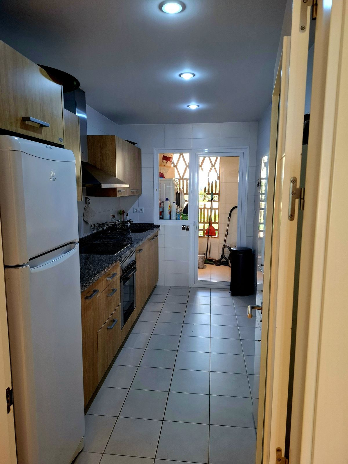Modern appartement in Los Robles de Los Arqueros Ervaar rust en comfort in dit moderne appartement op de begane grond, ideaal gelegen in de gewilde woonwijk Los Robles de Los Arqueros. Deze exclusieve, afgesloten community is omgeven door weelderige tropische tuinen en biedt een perfecte mix van modern wonen en natuurlijke schoonheid. Het appartement is op het zuiden gelegen, wat zorgt voor veel natuurlijk licht en een warme, gastvrije sfeer gedurende de dag. Het beschikt over twee slaapkamers en twee badkamers, waaronder een hoofdslaapkamer met en-suite badkamer en directe toegang tot het ruime terras. Vanaf hier kunt u genieten van een prachtig uitzicht en zelfs een glimp van de zee opvangen – de perfecte plek om te ontspannen en te genieten van de mediterrane zon. De woning beschikt over een volledig uitgeruste aparte keuken met een praktische bijkeuken/wasruimte, ontworpen voor zowel comfort als functionaliteit. Extra functies: Privé parkeerplaats in de ondergrondse parkeergarage Berging inbegrepen Groot gemeenschappelijk zwembad en apart kinderbad 24-uurs beveiliging binnen een afgesloten complex Onberispelijk onderhouden tropische tuinen Dit appartement is ideaal als permanente woning of vakantiehuis. Los Robles de Los Arqueros ligt op slechts een paar minuten van winkels, restaurants, diverse prestigieuze golfbanen en de stranden van San Pedro en Marbella. Het biedt de ideale balans tussen rust, comfort en bereikbaarheid: een oase van rust in het hart van de Costa del Sol.