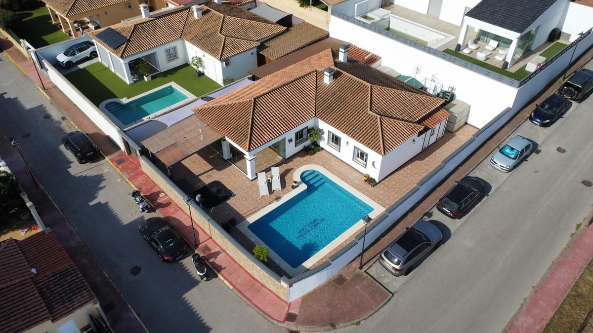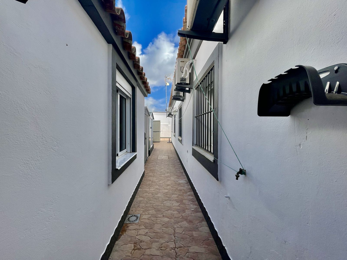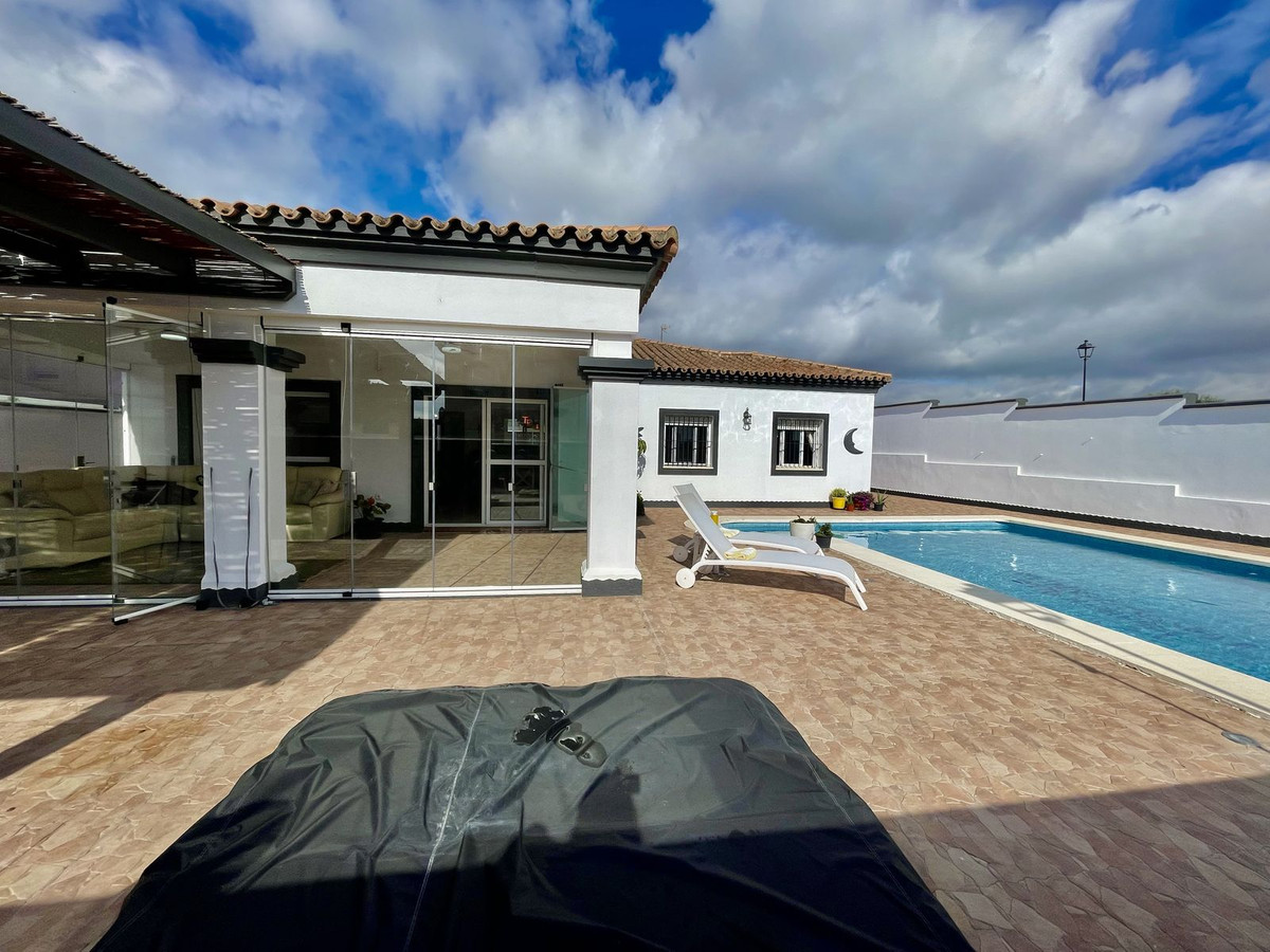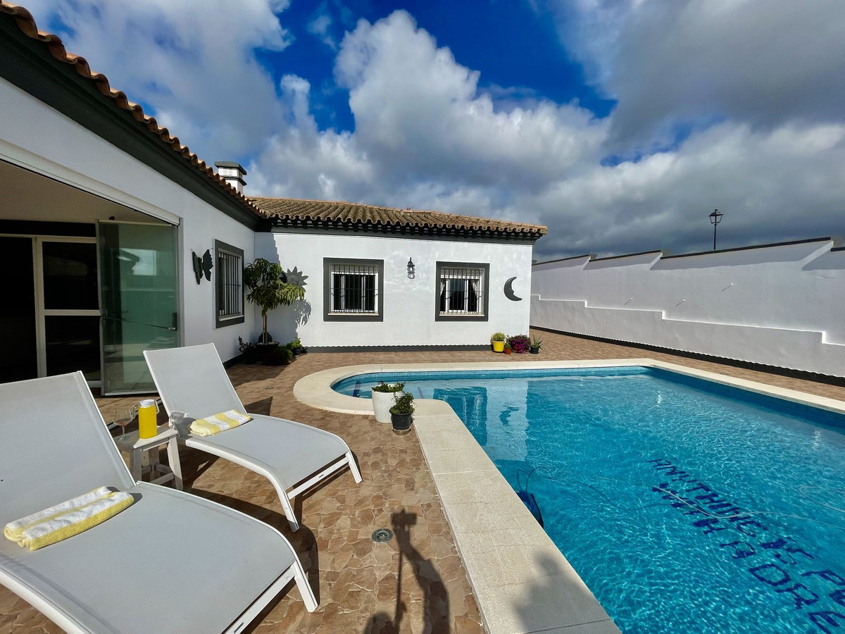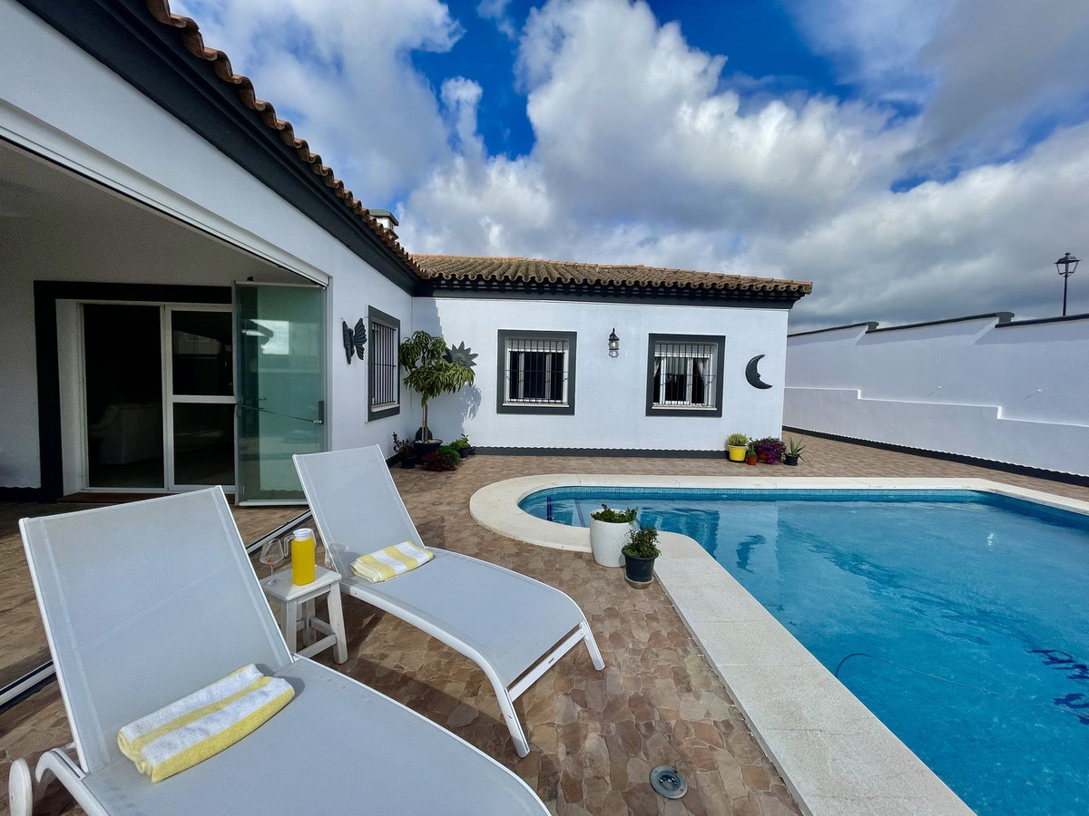 Deze charmante gelijkvloerse villa met 4 slaapkamers en 3 badkamers in Los Barrios biedt comfort, privacy en moderne afwerkingen in een rustige woonwijk. Gelegen op een hoekperceel van 495 m² met een bebouwde oppervlakte van 229 m², biedt de woning een open uitzicht over het groene landschap, Gibraltar en uitstekende privacy. De villa, oorspronkelijk gebouwd in 2004, is dit jaar (2025) grondig gerenoveerd. Er is meer dan € 50.000 geïnvesteerd in verbeteringen, waaronder een nieuwe keuken, overal tegelwerk, een groot terras met glazen wanden en een volledige herschildering van zowel de binnen- als buitenkant. Het resultaat is een frisse, instapklare woning die een moderne stijl combineert met een ontspannen mediterrane levensstijl. De woning is met veel aandacht voor detail en zorg gerenoveerd voor eigen gebruik. De woning is gelijkvloers en beschikt over vier slaapkamers, een lichte en ruime woonkamer met toegang tot het terras met toegang tot een groot privézwembad van 40 m² en een aparte verwarmde spa van 5 m². Het zwembadgedeelte is volledig betegeld en versierd met potplanten, wat zorgt voor een groene sfeer en tegelijkertijd het onderhoud eenvoudig houdt. Er is ook een garage/oprit met ruime bergruimte en parkeergelegenheid op eigen terrein voor drie auto's. Er zijn drie slaapkamers die twee complete badkamers delen, allemaal met inbouwkasten. De hoofdslaapkamer is goed geproportioneerd met een grote kleedruimte en een eigen badkamer. Elke slaapkamer is voorzien van airconditioning of een plafondventilator als u de voorkeur geeft aan een energiezuinigere optie. De keuken is volledig uitgerust en buiten bevinden zich een bijkeuken en een voorraadkast. Aan de achterkant van het huis bevinden zich drie opbergruimtes, ideaal voor het opbergen van bagage, extra meubels en apparatuur. Er ligt een uitgestrekt nationaal park direct naast het huis en twee stadsparken op respectievelijk 2 en 5 minuten loopafstand, ideaal voor gezinnen en ochtendwandelingen. Het nabijgelegen Palmones-estuarium, een beschermd natuurreservaat, ligt op slechts 5 minuten rijden en is een geliefde plek voor hondenbezitters en natuurliefhebbers. De villa ligt op loopafstand van winkels, cafés, dierenartsen en lokale voorzieningen en op korte loopafstand van Palmones, een charmant vissersdorpje dat bekend staat om zijn uitstekende visrestaurants en relaxte strandsfeer. Met zijn privacy, groene omgeving en gunstige ligging dicht bij Gibraltar (14 km), Algeciras (5 km) en Sotogrande (15 km), biedt deze woning de perfecte balans tussen alledaags comfort en de relaxte Andalusische levensstijl. De huidige eigenaren verhuizen naar de Verenigde Staten en het pand kan daarom volledig gemeubileerd en zonder extra kosten worden opgeleverd, of indien gewenst leeg.