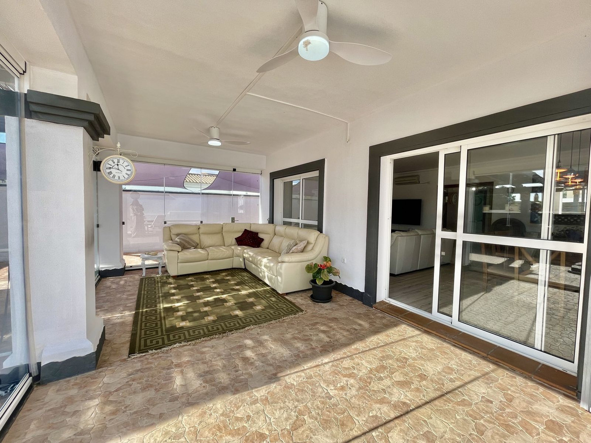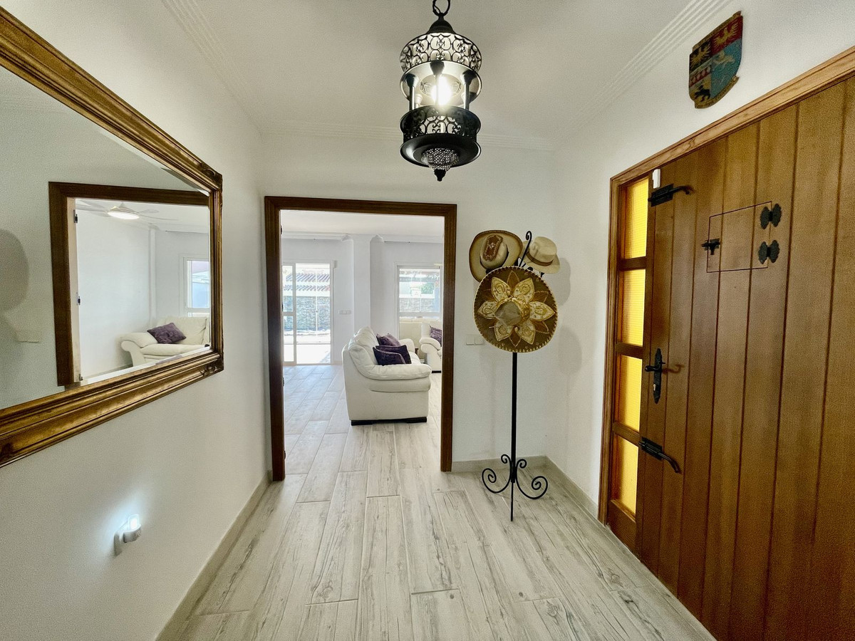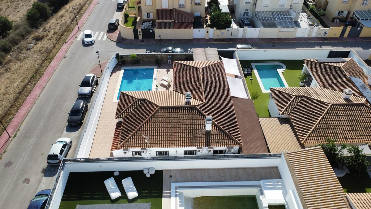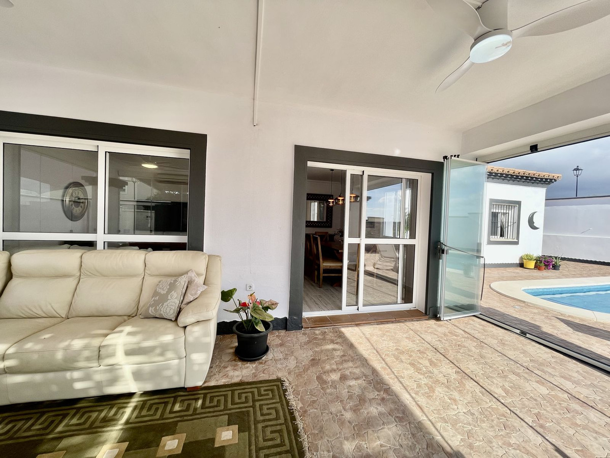 Deze charmante gelijkvloerse villa met 4 slaapkamers en 3 badkamers in Los Barrios biedt comfort, privacy en moderne afwerkingen in een rustige woonwijk. Gelegen op een hoekperceel van 495 m² met een bebouwde oppervlakte van 229 m², biedt de woning een open uitzicht over het groene landschap, Gibraltar en uitstekende privacy. De villa, oorspronkelijk gebouwd in 2004, is dit jaar (2025) grondig gerenoveerd. Er is meer dan € 50.000 geïnvesteerd in verbeteringen, waaronder een nieuwe keuken, overal tegelwerk, een groot terras met glazen wanden en een volledige herschildering van zowel de binnen- als buitenkant. Het resultaat is een frisse, instapklare woning die een moderne stijl combineert met een ontspannen mediterrane levensstijl. De woning is met veel aandacht voor detail en zorg gerenoveerd voor eigen gebruik. De woning is gelijkvloers en beschikt over vier slaapkamers, een lichte en ruime woonkamer met toegang tot het terras met toegang tot een groot privézwembad van 40 m² en een aparte verwarmde spa van 5 m². Het zwembadgedeelte is volledig betegeld en versierd met potplanten, wat zorgt voor een groene sfeer en tegelijkertijd het onderhoud eenvoudig houdt. Er is ook een garage/oprit met ruime bergruimte en parkeergelegenheid op eigen terrein voor drie auto's. Er zijn drie slaapkamers die twee complete badkamers delen, allemaal met inbouwkasten. De hoofdslaapkamer is goed geproportioneerd met een grote kleedruimte en een eigen badkamer. Elke slaapkamer is voorzien van airconditioning of een plafondventilator als u de voorkeur geeft aan een energiezuinigere optie. De keuken is volledig uitgerust en buiten bevinden zich een bijkeuken en een voorraadkast. Aan de achterkant van het huis bevinden zich drie opbergruimtes, ideaal voor het opbergen van bagage, extra meubels en apparatuur. Er ligt een uitgestrekt nationaal park direct naast het huis en twee stadsparken op respectievelijk 2 en 5 minuten loopafstand, ideaal voor gezinnen en ochtendwandelingen. Het nabijgelegen Palmones-estuarium, een beschermd natuurreservaat, ligt op slechts 5 minuten rijden en is een geliefde plek voor hondenbezitters en natuurliefhebbers. De villa ligt op loopafstand van winkels, cafés, dierenartsen en lokale voorzieningen en op korte loopafstand van Palmones, een charmant vissersdorpje dat bekend staat om zijn uitstekende visrestaurants en relaxte strandsfeer. Met zijn privacy, groene omgeving en gunstige ligging dicht bij Gibraltar (14 km), Algeciras (5 km) en Sotogrande (15 km), biedt deze woning de perfecte balans tussen alledaags comfort en de relaxte Andalusische levensstijl. De huidige eigenaren verhuizen naar de Verenigde Staten en het pand kan daarom volledig gemeubileerd en zonder extra kosten worden opgeleverd, of indien gewenst leeg.