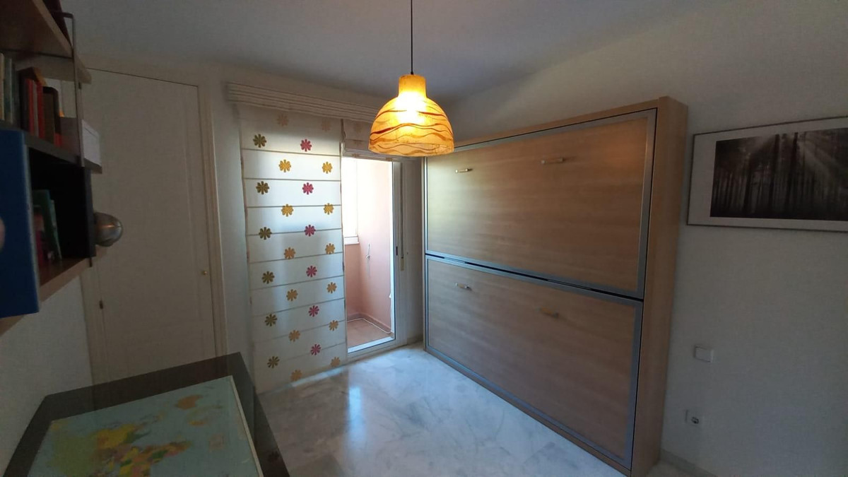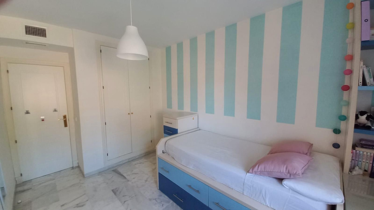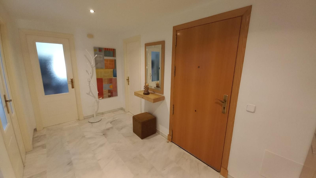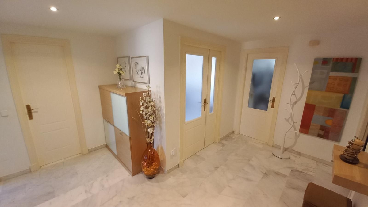 Prachtig appartement met 3 slaapkamers op een toplocatie in Estepona – op loopafstand van het strand en de jachthaven Dit lichte en ruime appartement ligt in een beveiligde, afgesloten woonwijk en biedt de perfecte combinatie van comfort, privacy en gemak. Het ligt op slechts 10 minuten lopen van het strand en de jachthaven van Estepona. Het pand biedt een open panoramisch uitzicht op het zwembad en de aangelegde tuinen en maakt deel uit van een rustige gemeenschap met slechts twee buren per verdieping. Binnen leidt een gastvrije hal naar drie ruime slaapkamers met inbouwkasten en twee badkamers, waaronder een grote en-suite badkamer in de hoofdslaapkamer. Een van de slaapkamers beschikt over een klein terras, omgeven door glazen gordijnen, wat een gezellige en veelzijdige ruimte biedt. Het appartement beschikt over centrale airconditioning in de slaapkamers en de woonkamer, een volledig uitgeruste aparte keuken en een ruime woon-/eetkamer met toegang tot het hoofdterras, dat ook is afgesloten met glazen gordijnen en ideaal is om het hele jaar door van te genieten. Bewoners kunnen genieten van twee buitenzwembaden, omgeven door prachtig onderhouden tuinen. Een privéparkeerplaats is inbegrepen. Dit is een uitzonderlijke kans om een kwalitatief hoogwaardige woning te bezitten in een van de meest gewilde gebieden van Estepona, dichtbij alle voorzieningen zoals scholen, supermarkten, cafés, apotheken en recreatiemogelijkheden, met gemakkelijke toegang tot de snelweg A7. Ideaal als permanente woning, vakantiehuis of investering.