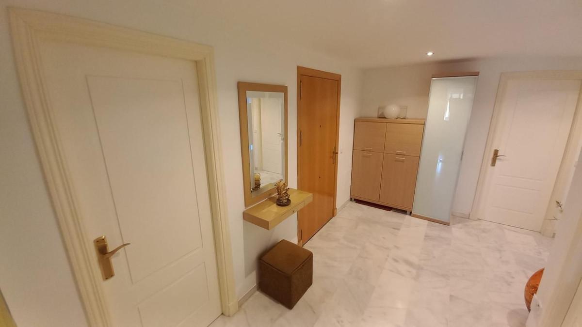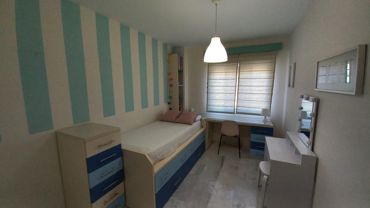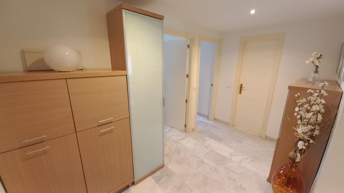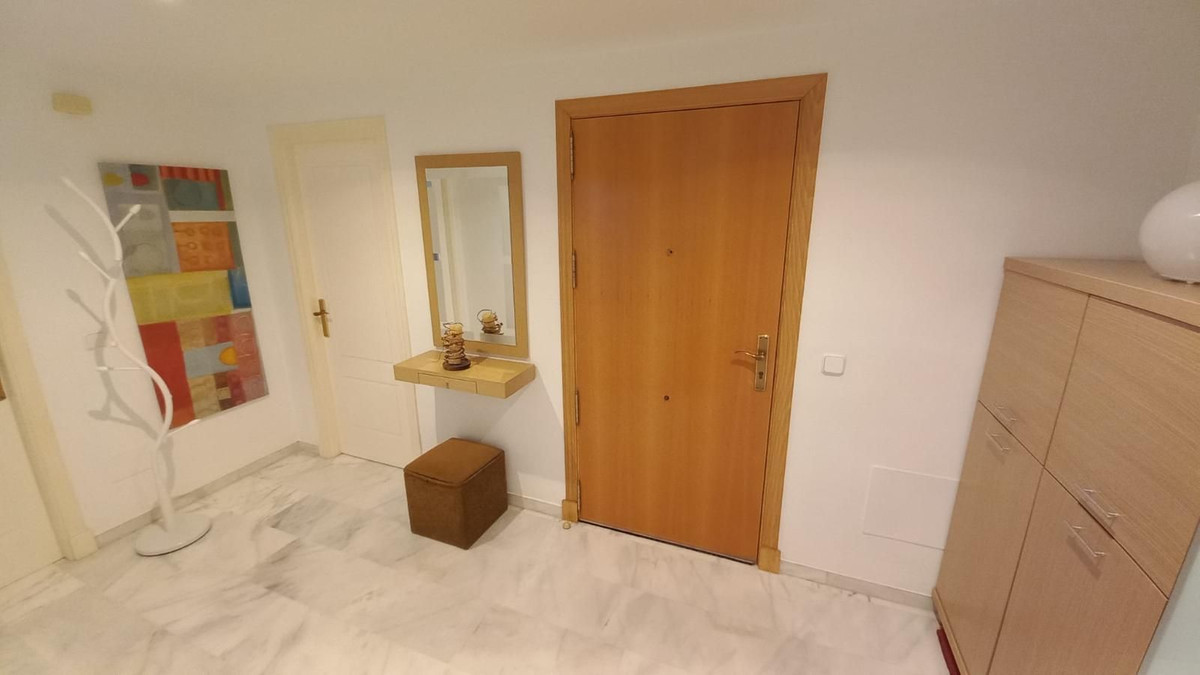 Prachtig appartement met 3 slaapkamers op een toplocatie in Estepona – op loopafstand van het strand en de jachthaven Dit lichte en ruime appartement ligt in een beveiligde, afgesloten woonwijk en biedt de perfecte combinatie van comfort, privacy en gemak. Het ligt op slechts 10 minuten lopen van het strand en de jachthaven van Estepona. Het pand biedt een open panoramisch uitzicht op het zwembad en de aangelegde tuinen en maakt deel uit van een rustige gemeenschap met slechts twee buren per verdieping. Binnen leidt een gastvrije hal naar drie ruime slaapkamers met inbouwkasten en twee badkamers, waaronder een grote en-suite badkamer in de hoofdslaapkamer. Een van de slaapkamers beschikt over een klein terras, omgeven door glazen gordijnen, wat een gezellige en veelzijdige ruimte biedt. Het appartement beschikt over centrale airconditioning in de slaapkamers en de woonkamer, een volledig uitgeruste aparte keuken en een ruime woon-/eetkamer met toegang tot het hoofdterras, dat ook is afgesloten met glazen gordijnen en ideaal is om het hele jaar door van te genieten. Bewoners kunnen genieten van twee buitenzwembaden, omgeven door prachtig onderhouden tuinen. Een privéparkeerplaats is inbegrepen. Dit is een uitzonderlijke kans om een kwalitatief hoogwaardige woning te bezitten in een van de meest gewilde gebieden van Estepona, dichtbij alle voorzieningen zoals scholen, supermarkten, cafés, apotheken en recreatiemogelijkheden, met gemakkelijke toegang tot de snelweg A7. Ideaal als permanente woning, vakantiehuis of investering.