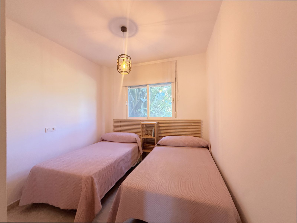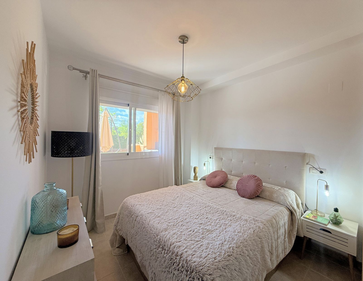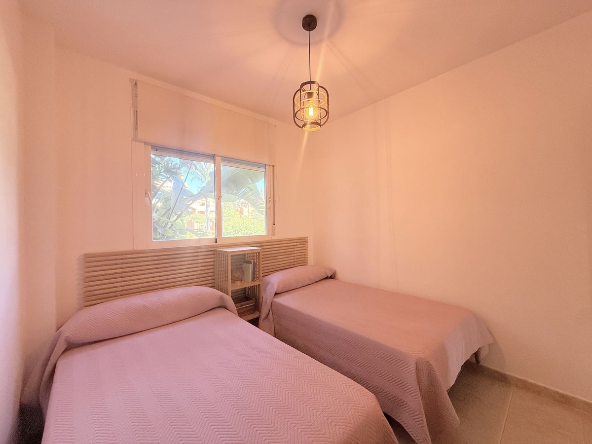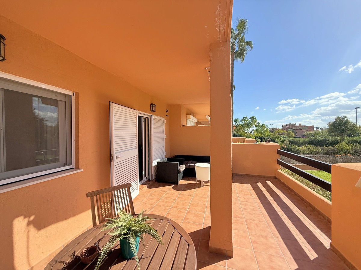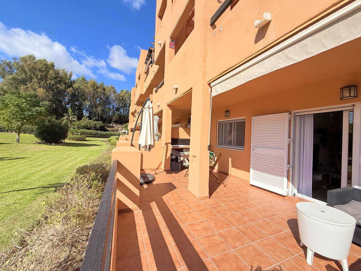 MOOI BEGANE GROND APPARTEMENT MET RUIM TERRAS EN AANGENAAM UITZICHT OP DE TUIN, CASARES COSTA. Gelegen in Casares Costa, een opkomende wijk die rust, natuur en uitstekende toekomstmogelijkheden combineert. Omringd door prestigieuze golfbanen zoals Finca Cortesin en Doña Julia, en vlakbij luxe projecten en het nieuwe Hilton-hotel – momenteel in aanbouw en op weg om een van de meest iconische hotels in de regio te worden. Deze locatie ligt op een ideale locatie tussen de jachthavens van Estepona en La Duquesa, op slechts 4 minuten rijden. Hier vindt u een grote verscheidenheid aan restaurants, strandbars, recreatiegebieden en fijne zandstranden, evenals een charmante promenade die langs een groot deel van de Costa del Sol loopt. Het appartement verkeert in uitstekende staat en is instapklaar. Het is geheel gelijkvloers en beschikt over twee ruime slaapkamers en twee gerenoveerde badkamers. De lichte en gezellige woonkamer geeft via grote schuifdeuren toegang tot een heerlijk terras met uitzicht op de gemeenschappelijke tuinen – een ideale plek om te ontspannen en te genieten van de natuurlijke omgeving. Dankzij de ligging op het zuiden geniet de woning de hele dag van zonlicht. Gelegen in een afgesloten complex met voetgangerstoegang tot het strand in ongeveer 15 minuten via een aangelegd pad. Het complex beschikt over 6 gemeenschappelijke zwembaden (waarvan één het hele jaar geopend), uitgestrekte groene zones en weelderige tropische tuinen. Extra voorzieningen zijn onder andere 12-uurs conciërgebeveiliging, warme/koude airconditioning, een ondergrondse parkeerplaats voor een groot voertuig en een berging. Een fantastische investeringskans – zowel voor permanente bewoning als voor verhuur, zowel voor vakantie als voor langere tijd. Een bezichtiging is van harte aan te raden!