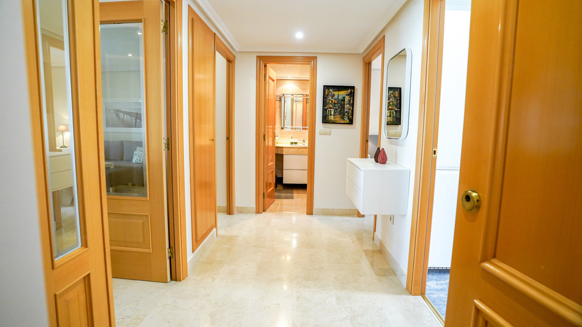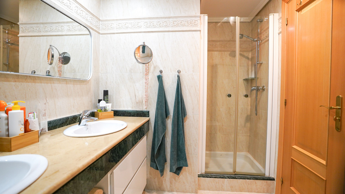 Stap binnen in dit prachtige appartement, waar comfort en stijl naadloos samenkomen. Met twee uitgestrekte terrassen van in totaal 47 m², op het oosten en westen gericht, biedt dit huis adembenemende uitzichten op de bergen en weelderige gemeenschappelijke tuinen, perfect om te genieten van de ochtendzon of om 's avonds te ontspannen. Gemaakt met materialen van topkwaliteit en elegante marmeren vloeren, straalt het appartement verfijning uit en garandeert het duurzaamheid. Gebouwd in 2004 en onderhouden in uitstekende staat, maakt het deel uit van een exclusieve ontwikkeling die is ontworpen voor ontspanning en welzijn. Bewoners hebben toegang tot eersteklas faciliteiten, waaronder een zwembad, een volledig uitgeruste sportschool en een sauna, ideaal voor zowel actieve als ontspannen levensstijlen. Ontworpen met het oog op praktische bruikbaarheid, beschikt dit huis over centrale airconditioning, inbouwkasten en het extra gemak van een eigen garage en berging. Lage gemeenschapskosten vergroten de aantrekkingskracht, waardoor het een slimme keuze is voor degenen die op zoek zijn naar een primaire woning of een tweede huis. Dit appartement heeft een goede ligging en ligt in de buurt van voorzieningen zoals restaurants, openbaar vervoer, sportfaciliteiten en scholen. Het biedt de perfecte balans tussen rust en bereikbaarheid.