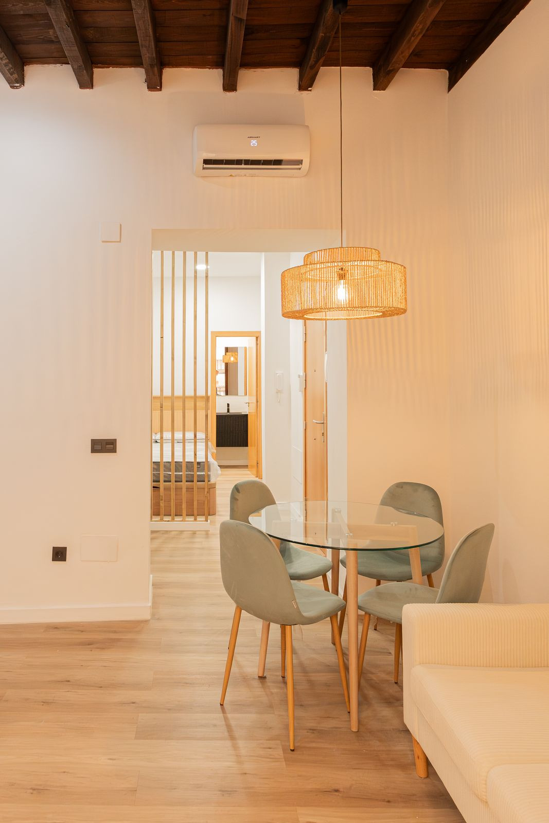 Centrum van Málaga – Historische wijk. Ontdek dit charmante appartement in het hart van Málaga, op slechts twee minuten lopen van Plaza de la Constitución en de bruisende hoofdstraat, Calle Marqués de Larios – echt in het stadscentrum. Perfect gelegen op loopafstand van winkels, restaurants, voorzieningen, het theater, het park en zelfs de Muelle 1, de boulevard langs het water. Het appartement is gelegen in een volledig gerenoveerd gebouw uit de jaren 1880 en heeft een woonoppervlakte van 44 m². Oorspronkelijk bestond het uit één slaapkamer, maar het is nu omgebouwd tot een loft-achtige indeling met een geïntegreerde keuken en woonkamer, die dankzij het grote raam veel natuurlijk licht binnenlaat. De gloednieuwe keuken is speciaal voor deze woning ontworpen en is voorzien van een afzuigkap, keramische kookplaat, oven, wasmachine/droger en ingebouwde koelkast – allemaal gloednieuw, ongebruikt en inbegrepen in de prijs. De meubels in de woonkamer en slaapkamer zijn eveneens nieuw en ongebruikt. De woning beschikt tevens over een nieuwe airconditioning en een alarmsysteem. Kom kijken – er is geen ander appartement zo centraal gelegen en in zo'n perfecte staat te koop.
