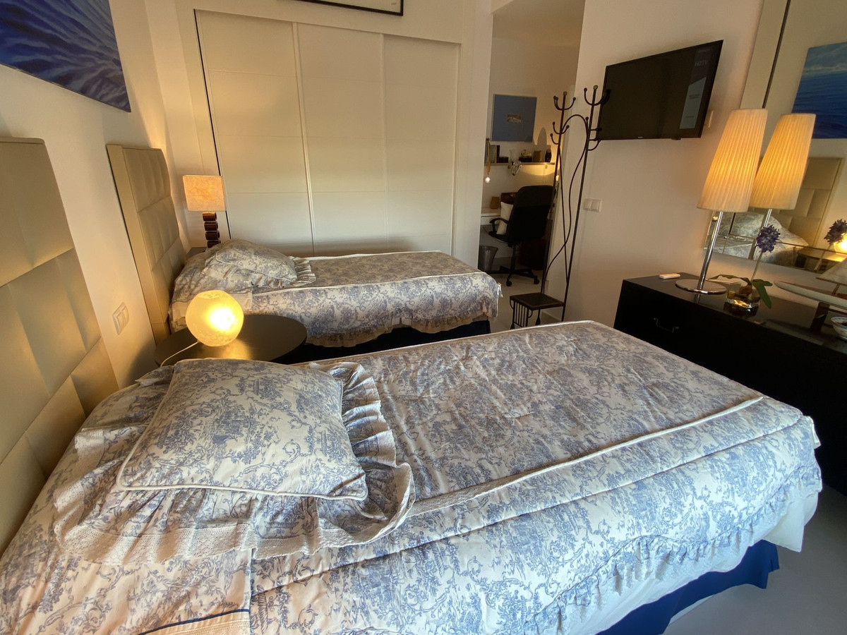 Hedendaagse elegantie in Finca Cortesin – Luxe duplexwoning aan de golfbaan Ervaar een ongeëvenaarde levensstijl in deze stijlvolle duplexwoning op de begane grond, gelegen in Las Terrazas de Finca Cortesin, een van de meest exclusieve woonwijken van Zuid-Europa. Met een oppervlakte van 185 m² combineert deze woning het comfort van een villa met het gemak van een privéwoning binnen het bekroonde vijfsterrenresort Finca Cortesin Golf & Hotel Resort. Het interieur, vervaardigd met de beste materialen, beschikt over een ruime open woonkamer, een volledig uitgeruste moderne keuken en kamerhoge glazen deuren die de ruimte overspoelen met natuurlijk licht en toegang bieden tot een privétuin met uitzicht op de golfbaan. De master suite beschikt over een inloopkast en een privéterras, aangevuld met twee extra slaapkamers die ideaal zijn voor gasten of familie. Marmeren vloeren, hoogwaardig timmerwerk en volledige klimaatbeheersing zorgen voor comfort en elegantie in het hele huis. Bewoners genieten van voorzieningen van wereldklasse, waaronder: Infinity-zwembad en zonneterras met uitzicht op de golfbaan Barbecueplaats en aangelegde tropische tuinen 24-uursbeveiliging, videobewaking en professionele conciërgeservice. Perfect gelegen in het hart van de Costa del Sol, op slechts enkele minuten van Sotogrande, Estepona en Marbella, biedt deze residentie een uitzonderlijke kans voor wie op zoek is naar luxe, privacy en een mediterrane levensstijl op een van de meest prestigieuze locaties van Europa. Neem gerust contact met ons op om een bezichtiging in te plannen!