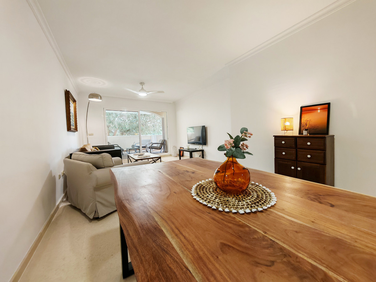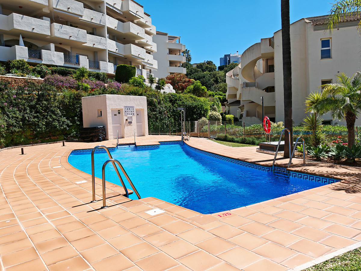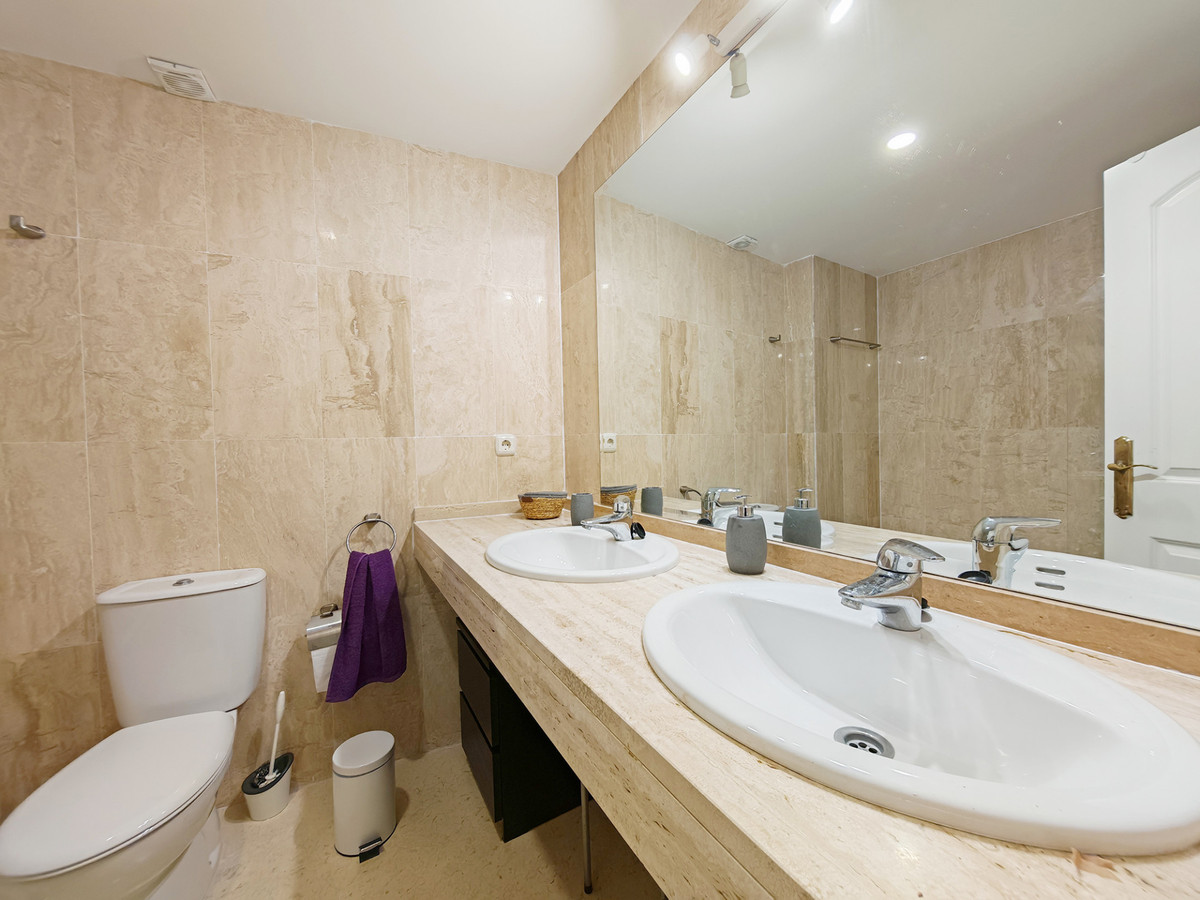 Appartement te koop in Elviria, Marbella met 2 slaapkamers, 2 badkamers, waarvan 1 en suite, op het zuidwesten/westen gelegen, met een gemeenschappelijk zwembad, een gemeenschappelijke garage (1 parkeerplaats) en een gemeenschappelijke tuin. De woning heeft een woonoppervlakte van 123 m² en een terras van 16,25 m². De woning beschikt over de volgende faciliteiten: airconditioning, volledig gemeubileerd, volledig ingerichte keuken, marmeren vloeren, privéterras, ingerichte keuken, watertank, uitzicht op het platteland, binnenzwembad, wasruimte, internet - wifi, overdekt terras, inbouwkasten, afgesloten complex, lift, dichtbij zee/strand, dichtbij golfbaan, balkon, uitstekende staat, plafondkoelsysteem, dichtbij de stad, dichtbij scholen, bewakingscamera's, gelegen in een golfresort en dichtbij restaurants.