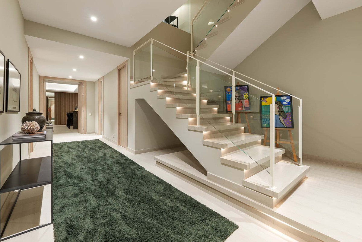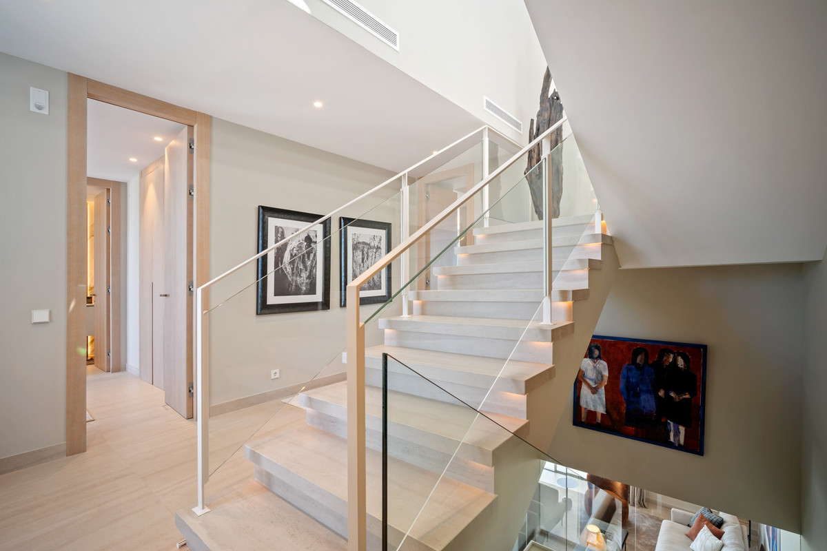 Belangrijke mededeling: Om u optimaal van dienst te kunnen zijn, verzoeken wij u vriendelijk uw e-mailadres en telefoonnummer te vermelden bij uw aanvraag. Dank u wel. Dit architectonische meesterwerk maakt indruk met zijn gedurfde geometrische lijnen, verfijnde design en harmonieuze gebruik van hoogwaardige materialen in neutrale tinten. De villa is zorgvuldig ingedeeld met vier ruime slaapkamers met eigen badkamer en biedt flexibiliteit om zich naadloos aan te passen aan uw levensstijl. De residentie is ontworpen om de grenzen tussen binnen en buiten te vervagen en beschikt over een ruim overdekt terras, ideaal om te dineren en gasten te ontvangen met familie en vrienden. Het op maat gemaakte dakterras biedt een privézwembad en een adembenemend panoramisch uitzicht over de Middellandse Zee, Gibraltar, Afrika en de iconische berg La Concha in Marbella. Verdeeld over vier luxe verdiepingen, verbonden door een privélift, straalt de woning zowel comfort als gemak uit. De strakke Siematic-keuken is volledig uitgerust met hoogwaardige apparatuur, terwijl vloerverwarming het hele jaar door comfort en energiezuinigheid garandeert. Geïntegreerde Bang & Olufsen-luidsprekers en tv's tillen de woonervaring naar een hoger niveau met tijdloze elegantie en superieur geluid. Er is een privégarage met ruimte voor twee voertuigen en dankzij de toplocatie van het pand bent u op loopafstand van restaurants, winkels en sportfaciliteiten, waardoor het dagelijks leven zowel moeiteloos als aangenaam wordt. Dit is een unieke kans om een echt instapklare luxe woning te verwerven op een van de meest gewilde locaties van Marbella. Bovendien zal de geplande verwijdering van bestaande elektriciteitsleidingen in het gebied het onbelemmerde uitzicht en de visuele aantrekkingskracht van de omgeving verder vergroten. ONS BUREAU GEEFT DE MAKELAARDIJ EEN NIEUWE DEFINITIE AAN DE VASTGOEDERVARING MET EEN TOEWIJDING AAN EEN NAADLOZE, KLANTGERICHTE SERVICE. Onze missie gaat veel verder dan alleen vastgoedtransacties: wij bieden u een compleet, verheven traject naar vastgoedeigendom, dat zo soepel en stressvrij mogelijk verloopt. Met onze gespecialiseerde visumondersteuning vereenvoudigen we internationale verhuizingen door de juridische en administratieve complexiteit voor u en uw gezin vakkundig af te handelen. Om uw start in Spanje nog gemakkelijker te maken, bieden we ook gratis NIE-hulp aan. Zo nemen we bureaucratische obstakels weg en bespaart u kostbare tijd. Wij begrijpen dat elke investering belangrijk is. Daarom werkt ons hypotheekbemiddelingsteam onvermoeibaar samen om de meest concurrerende voorwaarden te verkrijgen, afgestemd op uw unieke financiële profiel. Zo worden uw droomhuis sneller dan ooit haalbaar. Onze aanpak is helder en direct: u heeft uitsluitend met ons te maken, zonder onnodige tussenpersonen. Dit garandeert een transparant en gestroomlijnd aankoopproces. We bieden ook gratis juridisch advies om uw investering te beschermen en te garanderen dat uw belangen gedurende het hele proces worden beschermd. U profiteert van exclusieve toegang tot premium aanbiedingen, aangeboden door onze toegewijde makelaars met diepgaande marktkennis en toegang tot mogelijkheden buiten de markt. Het gaat niet alleen om het vinden van een woning, maar om het creëren van een persoonlijke ervaring die past bij uw levensstijl en langetermijnvisie. Wij verkopen niet alleen onroerend goed: wij helpen u bij het opbouwen van uw toekomst, met zorg, duidelijkheid en vertrouwen. LAAT ONS U VERHUIZEN!
