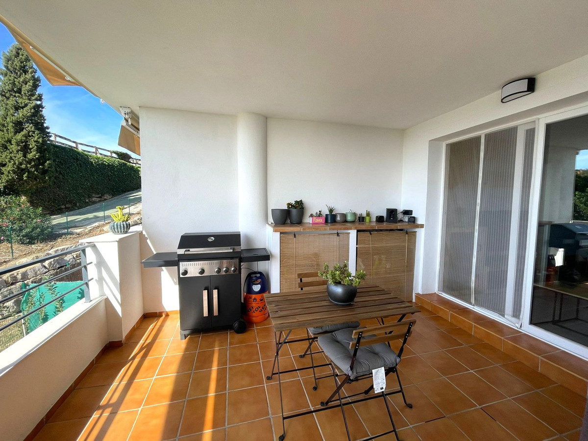 Appartement met 3 slaapkamers en uitzicht op de golfbaan – Doña Julia, Casares Lichte woning met een echt bruikbaar terras. Deze woning biedt goed benutte ruimte, vrij uitzicht over de golfbaan en zeer lage servicekosten. Belangrijkste feiten 82 m² binnenoppervlakte Terras van 26 m² met direct uitzicht op de golfbaan 3 slaapkamers 2 badkamers (waarvan één en-suite) Woon-eetkamer met uitstekend natuurlijk licht Westen gericht (middagzon) Parkeren inbegrepen Gemeenschapskosten: € 50/maand Hoogtepunten Slimme indeling met comfortabele, lichte kamers. Praktisch terras: ideale grootte voor een eettafel en een chill-out gedeelte; vrij uitzicht over de golfbaan. Hoofdslaapkamer met eigen badkamer: privacy en comfort. Lage exploitatiekosten: € 50,- per maand aan gemeenschapskosten, ongebruikelijk in de regio. Rustige ligging bij de golfbaan, op slechts enkele minuten van het strand en voorzieningen, met gemakkelijke toegang tot de A-7/AP-7. Ideaal voor Voor wie van de middagzon houdt en het hele jaar door van het terras gebruik wil maken. Golf- en natuurliefhebbers die toch dicht bij de kust willen verblijven. Investeerders die op zoek zijn naar een goede prijs-kwaliteitverhouding qua meters, locatie en lage maandlasten.