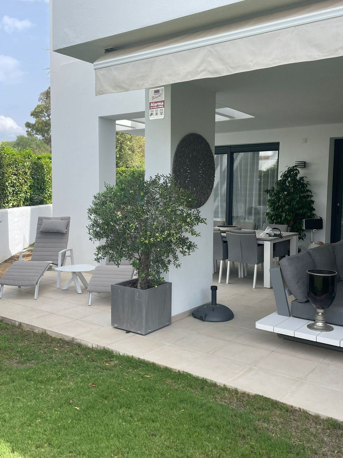 LUXUEUS APPARTEMENT MET 2 SLAAPKAMERS DICHTBIJ DE GOLF IN ATALAYA (inclusief 2 parkeerplaatsen!!!) Dit prachtige appartement met 2 slaapkamers is gelegen in het exclusieve Las Terrazas de Atalaya ontwikkeling in Estepona, Malaga. Gelegen in een beveiligde community, deze moderne en Moderne woning biedt luxe wonen met prachtig uitzicht op de golfbaan. Het appartement beschikt over een ruime woonoppervlakte van 99 m2, met marmeren vloeren door het hele appartement. Het open ontwerp zorgt voor veel natuurlijk licht, waardoor een lichte en luchtige sfeer ontstaat. woonkamer geeft uit op een privétuin van 45m2, perfect om te genieten van het prachtige uitzicht en buiten dineren. De woning beschikt over 2 slaapkamers, beide met inbouwkasten, en 2 badkamers. De hoofdslaapkamer De slaapkamer heeft een en-suite badkamer en directe toegang tot het terras. De tweede slaapkamer heeft ook biedt uitzicht op de tuin. Extra voorzieningen van dit appartement zijn onder meer airconditioning, dubbele beglazing, elektrische jaloezieën, en een gepantserde deur voor extra veiligheid. Het pand verkeert in uitstekende staat en wordt geleverd met optioneel meubilair. Bewoners van Las Terrazas de Atalaya hebben toegang tot een gemeenschappelijk zwembad en tuin, evenals een tennis-/paddlebaan en een buitengym. De ontwikkeling profiteert ook van toezicht. camera's en een beveiligde ingang voor gemoedsrust. Dit appartement ligt dicht bij golfbanen en is perfect voor golfliefhebbers. Gunstig gelegen nabij voorzieningen en biedt gemakkelijke toegang tot de bruisende stad Malaga. Met Met zijn luxe voorzieningen en toplocatie is dit appartement een must-see voor wie op zoek is naar een Moderne woning in een golfomgeving.