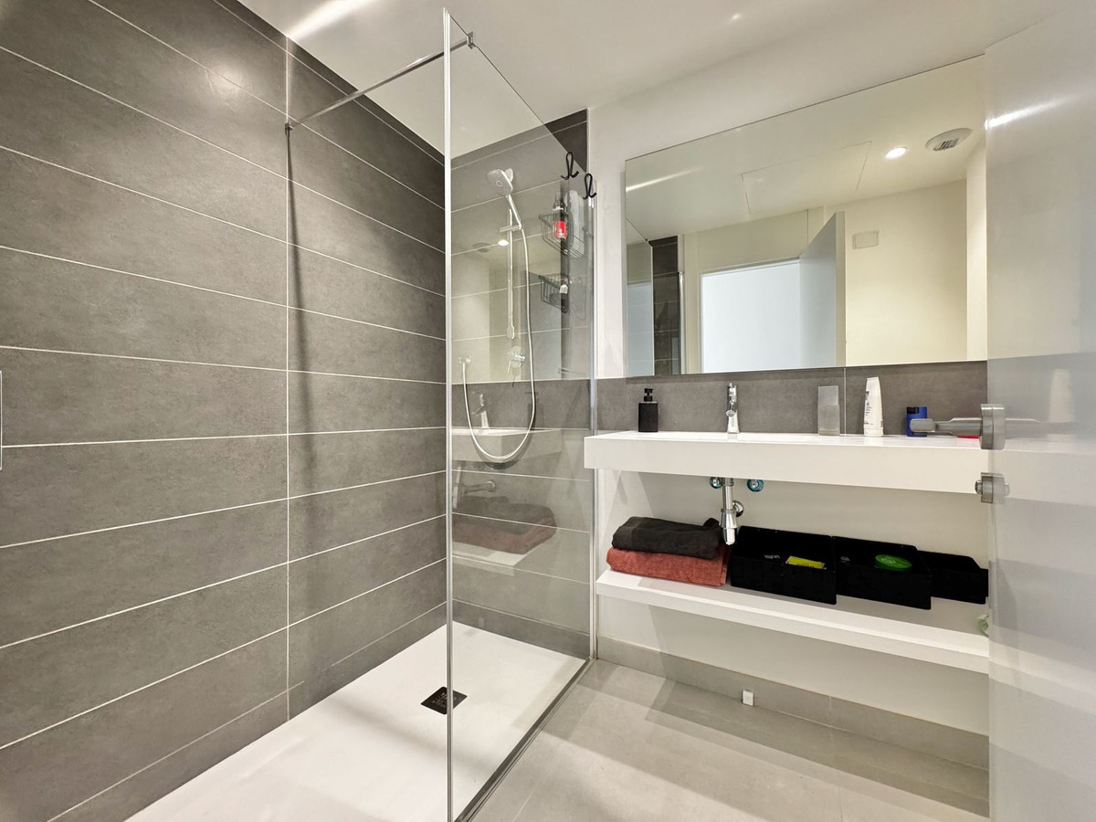 Luxe duplex penthouse met 2 slaapkamers en panoramisch uitzicht op zee en de bergen - Higuerón West, Fuengirola Binnen- en buitenleven op zijn best wacht op u in dit duplex penthouse met zuidwestelijke ligging, gelegen in het prestigieuze Higuerón West, een ecologisch verantwoord beveiligd resort omgeven door weelderig groen en op slechts enkele minuten van het strand. Met een binnenruimte van 86 m² en twee ruime terrassen – een gedeeltelijk overdekt terras van 34 m² naast de woonkamer en een dakterras van 45 m² – biedt deze woning een adembenemend panoramisch uitzicht op de Middellandse Zee, het Mijas-gebergte en de groene gordel van de urbanisatie. De lichte, open woonkamer sluit naadloos aan op het hoofdterras en creëert zo een perfecte plek om buiten te dineren, te ontspannen in de zon of te genieten van het uitzicht. Het appartement beschikt over twee slaapkamers, waaronder een hoofdslaapkamer met een dressing, twee moderne badkamers met vloerverwarming, een volledig uitgeruste open keuken met Neff-apparatuur, een wasruimte en een entreekast. Comfort en gemak worden versterkt door elektrische zonneschermen in het appartement en op het hoofdterras. Het appartement is volledig gemeubileerd en instapklaar. Het penthouse beschikt verder over twee terrassen waar u heerlijk kunt ontspannen of gewoon kunt genieten van de zonsondergang. Er is een berging en er zijn twee grote parkeerplaatsen. Bewoners hebben toegang tot uitzonderlijke faciliteiten, waaronder de Higuerón Sports Club met paddle- en tennisbanen, een verwarmd 25m-zwembad, een fitnessruimte, een spa en een Beach Club, maar ook een co-workingruimte, elektrische oplaadpunten voor fietsen en auto's, een conciërgeservice met optioneel verhuurbeheer en milieuvriendelijke wandel- en fietspaden in de hele urbanisatie. In de buurt vindt u een supermarkt, stomerij, apotheek en een tiental restaurants, waaronder het met een Michelin-ster bekroonde Sollo. De woning is goed bereikbaar, met een treinstation dat gemakkelijke toegang biedt tot het centrum van Malaga en de luchthaven. De woning ligt op slechts 15 minuten van de internationale luchthaven van Malaga, op 20 minuten van Puerto Banús en Marbella, en op slechts een paar minuten van het strand. Dit uitzonderlijke duplex penthouse combineert luxe, comfort en lifestyle in een van de meest gewilde beveiligde resorts aan de Costa del Sol. Neem vandaag nog contact met ons op voor een privébezichtiging!
