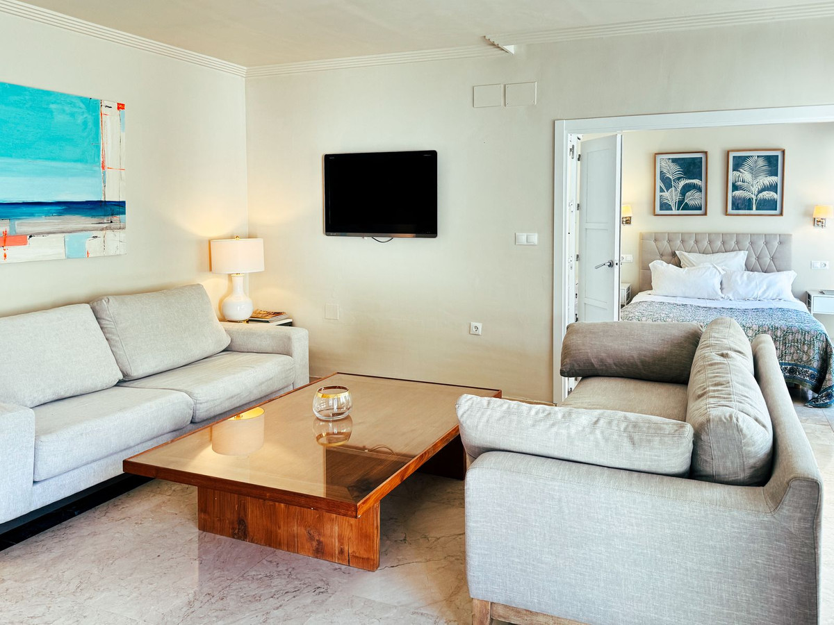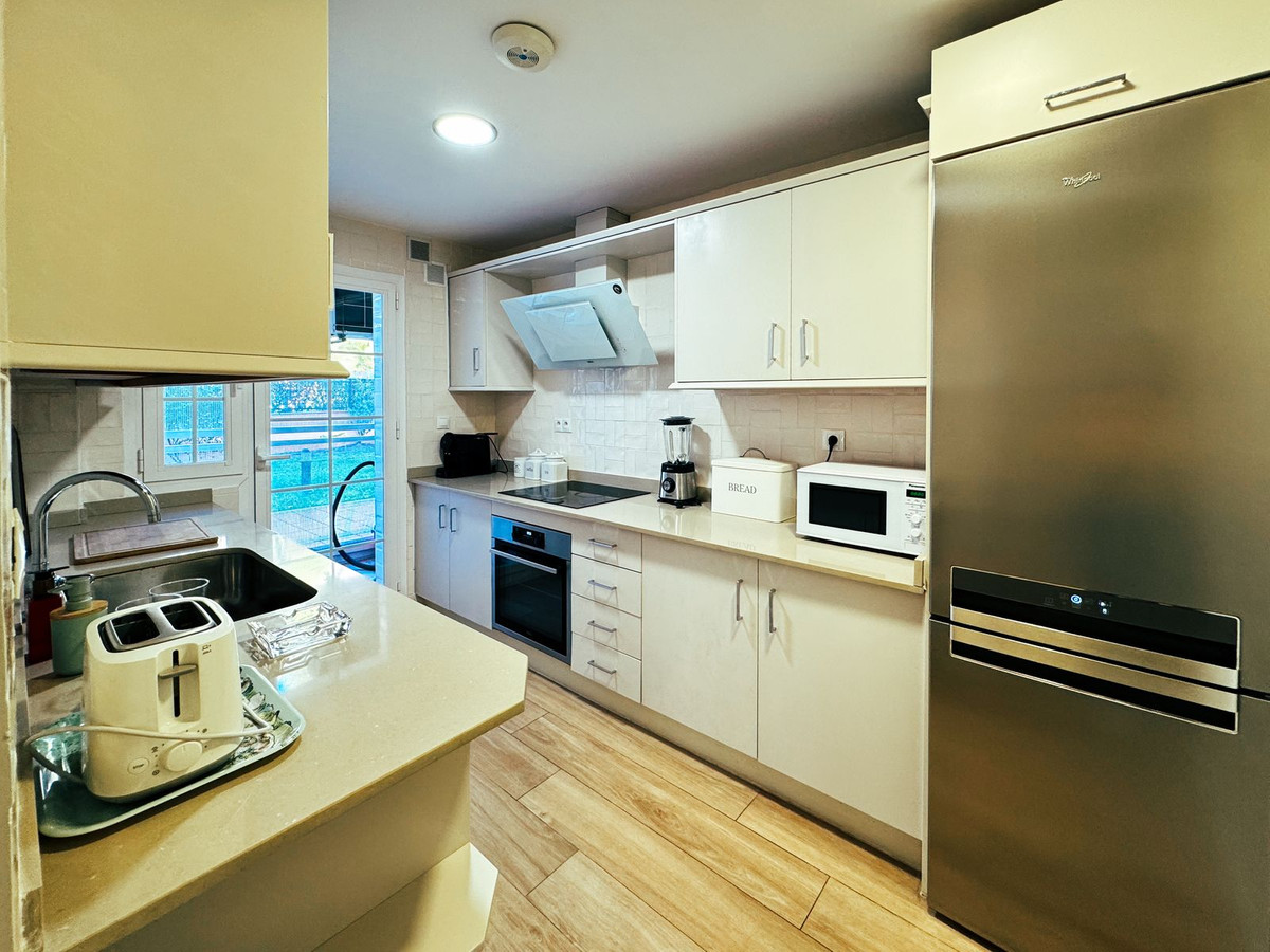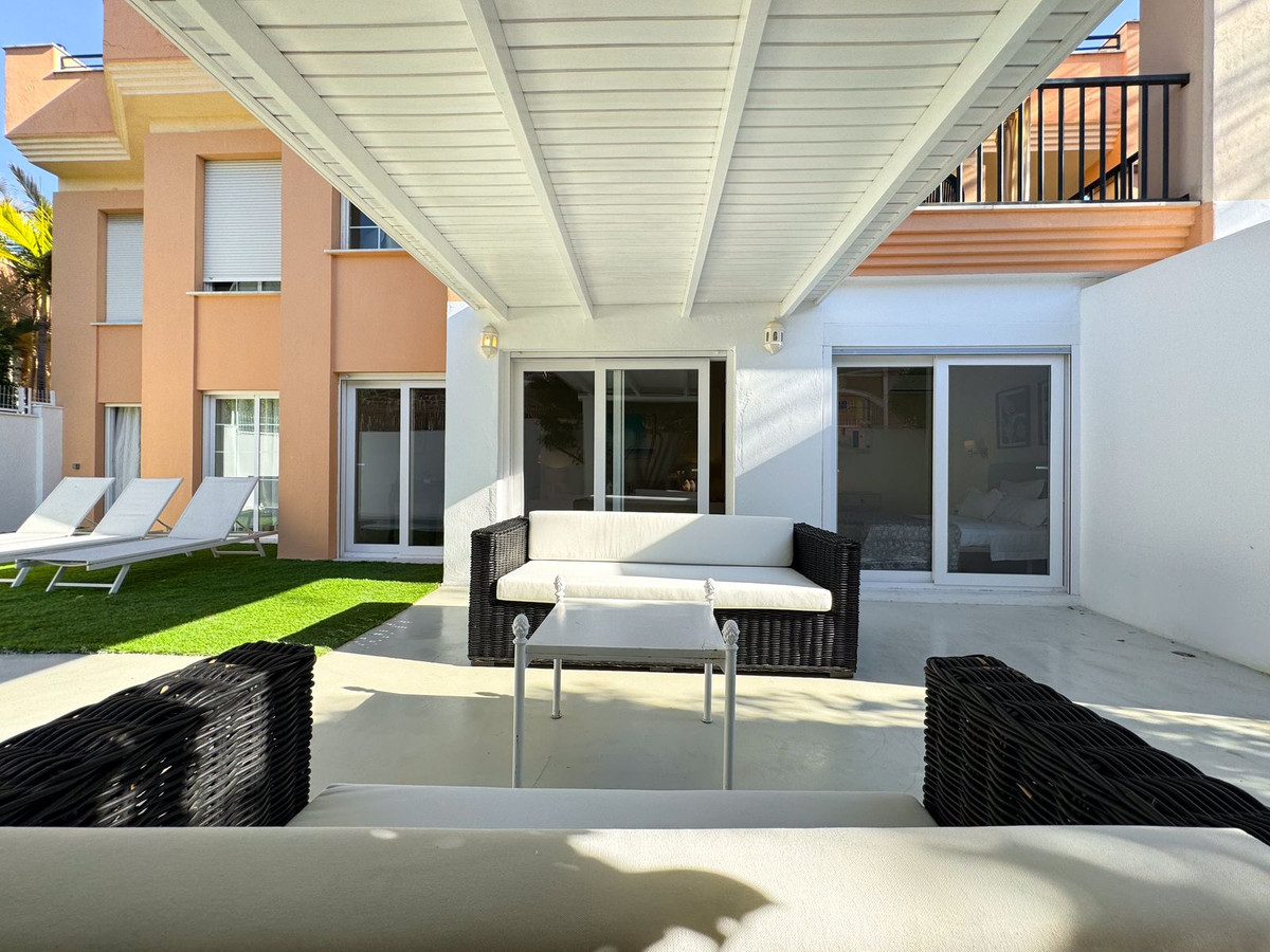 Wij presenteren dit exclusieve luxe appartement, gelegen in een van Marbella's meest gewilde wijken, met directe toegang tot het strand. Perfect voor wie op zoek is naar comfort, privacy en een verfijnde levensstijl. Het appartement beschikt over 150 m² aan zorgvuldig ontworpen interieurs, waaronder: Een ruime en lichte woonkamer, ideaal om te ontspannen of gasten te ontvangen. Drie ruime slaapkamers met moderne afwerkingen, voor maximaal comfort. Drie elegante en functionele badkamers. Een volledig uitgeruste keuken met hoogwaardige apparatuur en voldoende opbergruimte. Buiten vindt u een privétuin van 150 m², de perfecte plek om te genieten van de rust in de buitenlucht. Het appartement beschikt ook over een terras met solarium en een privézwembad, waar u in alle privacy kunt ontspannen en genieten van unieke momenten. Het wooncomplex biedt een breed scala aan voorzieningen om deze luxe ervaring compleet te maken: Twee gemeenschappelijke zwembaden, omgeven door prachtig aangelegde tuinen. 24-uurs beveiliging garandeert uw gemoedsrust te allen tijde. Berging en privéparkeerplaats zijn bij de prijs inbegrepen. Dankzij de uitzonderlijke ligging biedt Jardines de Lunamar directe toegang tot het strand en is het omgeven door hoogwaardige voorzieningen, waaronder restaurants, winkels en recreatiemogelijkheden. Dit appartement combineert luxe, comfort en nabijheid van de zee, waardoor het een ideale keuze is voor wie op zoek is naar een permanente verblijfplaats of een tweede huis in Marbella.
