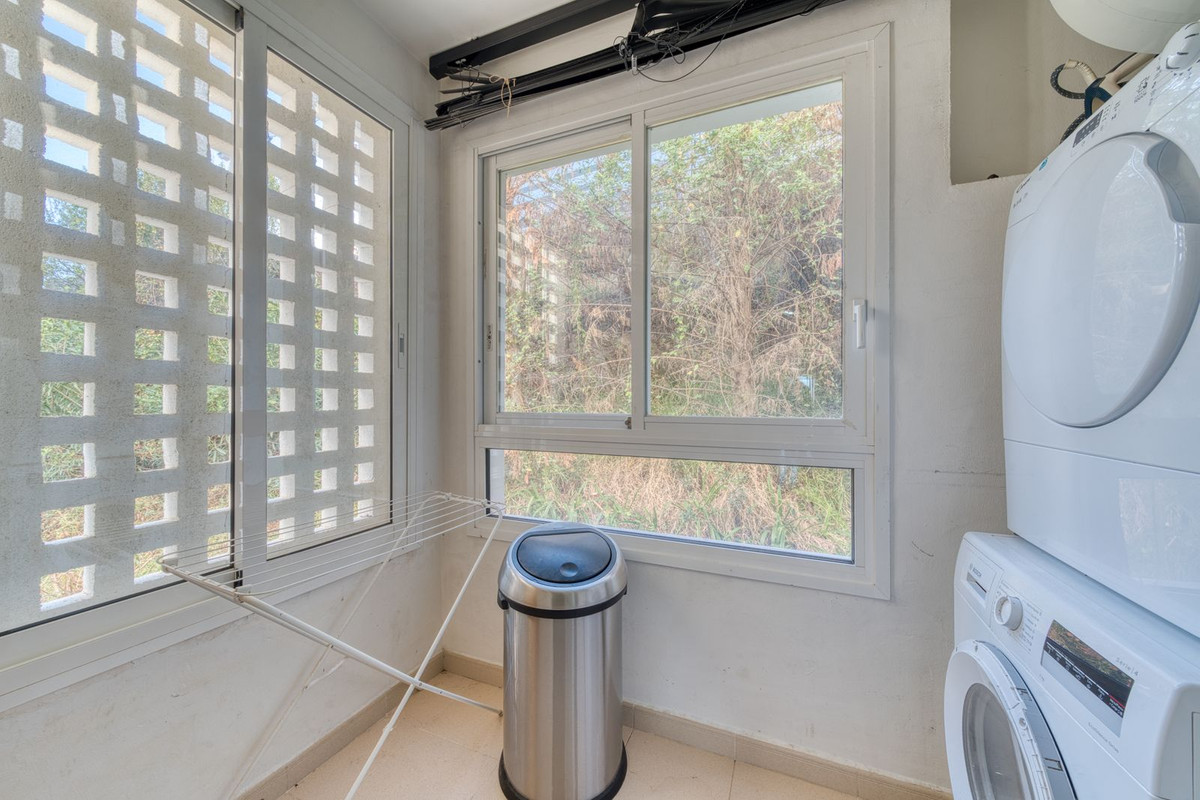 Ruim appartement met uitzicht op de bergen en de zee nabij Golf Valley | Marbella Dit prachtig ingerichte appartement biedt een fantastische combinatie van comfort, ruimte en een panoramisch uitzicht. Dankzij de verhoogde ligging geniet u van een weids uitzicht op de bergen en gedeeltelijk uitzicht op zee, wat een rustige en elegante achtergrond creëert voor het dagelijks leven. Een ruime hal leidt naar een goed ontworpen, volledig ingerichte keuken met een aparte bijkeuken. De woon- en eetkamer is uitzonderlijk ruim en biedt direct toegang tot een groot overdekt terras met een onvergetelijk uitzicht over het omliggende landschap. Deze buitenruimte is perfect om te ontspannen, gasten te ontvangen en te genieten van warme avonden met familie en vrienden. De woning beschikt over twee tot drie slaapkamers, elk met volledig ingerichte kasten. De hoofd- en tweede slaapkamer hebben directe toegang tot het terras, waardoor er van zonsopgang tot zonsondergang veel natuurlijk licht in de kamers is. De hoofdslaapkamer beschikt over een eigen badkamer en beide badkamers zijn voorzien van vloerverwarming. Het appartement is geheel voorzien van crèmekleurige marmeren vloeren en airconditioning voor zowel de warme als de koude seizoenen. Een eigen overdekte parkeerplaats en een ruime berging zijn inbegrepen, wat dit een zeldzame en waardevolle kans maakt in deze gewilde omgeving. De woning is prachtig onderhouden met aangelegde tuinen, een groot zwembad en een speciaal kinderbad, wat zorgt voor een rustige resortachtige omgeving. Op korte loopafstand vindt u een indrukwekkende verzameling voorzieningen, waaronder een luxe hotel, restaurants, cafés, een spa, een fitnessruimte, een kinderclub, golfbanen, een golfacademie, een pro-shop, paddlebanen en een kinderspeelplaats. De locatie is ideaal voor zowel comfort als levensstijl, met Puerto Banús op slechts tien minuten afstand en het centrum van Marbella op vijftien minuten rijden. De toegang tot de AP7 is vlakbij en de luchthaven van Malaga ligt op ongeveer vijfendertig minuten afstand. Dit uitzonderlijke appartement biedt een prachtig uitzicht, royale leefruimtes en een fantastische woonomgeving. Een absolute aanrader voor iedereen die op zoek is naar kwaliteit, comfort en een toplocatie aan de kust.