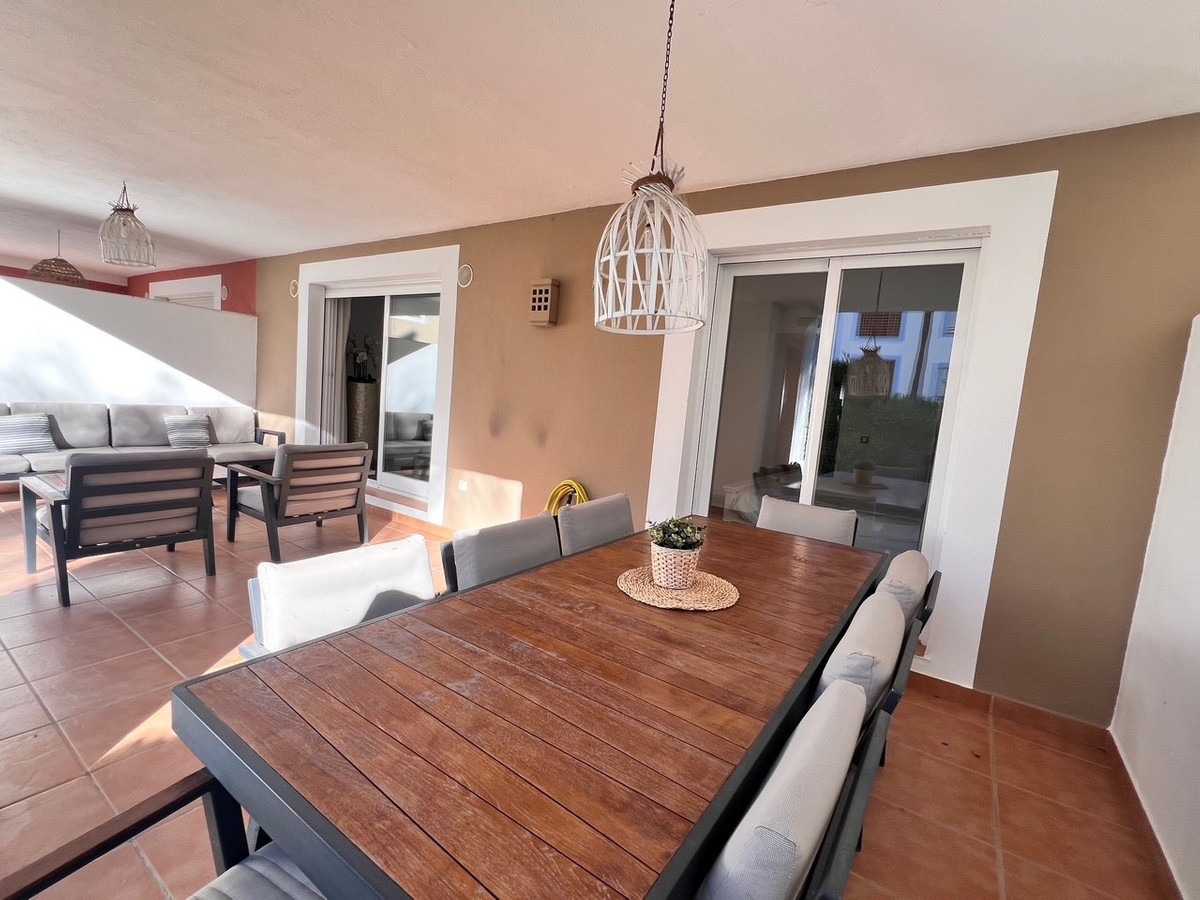 Dit prachtig ingerichte appartement met 2 slaapkamers en 2 badkamers op de begane grond, aan de prestigieuze New Golden Mile van Estepona, biedt het ultieme op het gebied van comfort en gemak, met als bijkomend voordeel dat het zich in een resort bevindt waar vakantieverhuur is toegestaan. Het appartement is op het westen gelegen en beschikt over een eigen tuin, perfect om te genieten van zonnige middagen en buiten te leven. Binnen is het appartement volledig gemeubileerd en uitgerust met een state-of-the-art domoticasysteem (domotica) waarmee u eenvoudig verlichting, klimaatbeheersing, beveiliging en meer kunt regelen vanaf uw smartphone of tablet. Dit smart home-systeem voegt extra gemak toe, zodat u uw omgeving kunt aanpassen voor comfort en energiezuinigheid. De ruime woonkamer baadt in het natuurlijke licht en de moderne keuken is volledig uitgerust met hoogwaardige apparatuur. Beide slaapkamers zijn ruim van formaat, waarbij de master suite een eigen badkamer heeft en de tweede slaapkamer handig is verbonden met een aparte gastenbadkamer. Bij de verkoopprijs is een ondergrondse parkeerplaats inbegrepen, waardoor een veilige en gemakkelijke toegang is gegarandeerd. Als onderdeel van de community heeft u toegang tot resortachtige voorzieningen, waaronder een lagunezwembad, een poolbar en restaurant (geopend van april tot oktober), met heerlijke drankjes en maaltijden, en prachtig aangelegde tuinen, perfect om te ontspannen. Het complex is volledig omheind en heeft 24-uurs beveiliging en conciërgeservice om aan uw behoeften te voldoen. Dit appartement biedt de ideale combinatie van modern wonen, de nieuwste snufjes en een fantastische locatie. Het is dus zowel geschikt voor eigen gebruik als een lucratieve investering.
