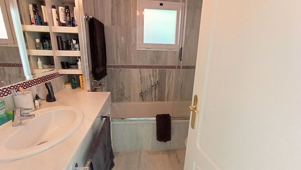 Prachtige terrassen met uitzicht op zee en de bergen. Meer dan 60 vierkante meter aan overdekte en onoverdekte terrassen. Onberispelijk penthouse met twee verdiepingen. Een ingebouwde binnentrap biedt toegang tot de bovenverdieping. De begane grond bestaat uit twee slaapkamers en twee complete badkamers, terwijl de bovenverdieping een slaapkamer met gastentoilet heeft. Terrassen, uitzicht en rust wachten op u. Het complex beschikt over twee zwembad- en tuingedeeltes, evenals voldoende gemeenschappelijke parkeergelegenheid. Het appartement wordt vrijwel volledig gemeubileerd verkocht. Er is een ondergrondse parkeerplaats beschikbaar in het aangrenzende complex. De slaapkamer op de bovenverdieping is meer een kleine woonkamer, omdat deze als doorgang naar het grote terras dient. Daarom hebben we drie slaapkamers vermeld. Penthouse-duplex, Calahonda, Costa del Sol. 3 slaapkamers, 2,5 badkamers, bebouwd 130 m², terras 76 m². Ligging: Voorstedelijk, Dichtbij golfbaan, Dichtbij zee, Dichtbij stad, Urbanisatie. Oriëntatie: Zuidoost. Staat: Goed. Zwembad: Gemeenschappelijk, Kinderbad. Klimaatregeling: Airconditioning, Warme airconditioning, Koude airconditioning. Uitzicht: zee, bergen, platteland, panoramisch. Kenmerken: Overdekt terras, Inbouwkasten, Dichtbij openbaar vervoer, Privéterras, Solarium, Ensuite badkamer, Marmeren vloer, Dubbel glas, Glasvezel. Meubilair: Volledig gemeubileerd. Keuken: volledig ingericht. Tuin: Gemeenschappelijk. Beveiliging: Afgesloten complex. Parkeren: Gemeenschappelijk. Nutsvoorzieningen: elektriciteit, drinkwater.