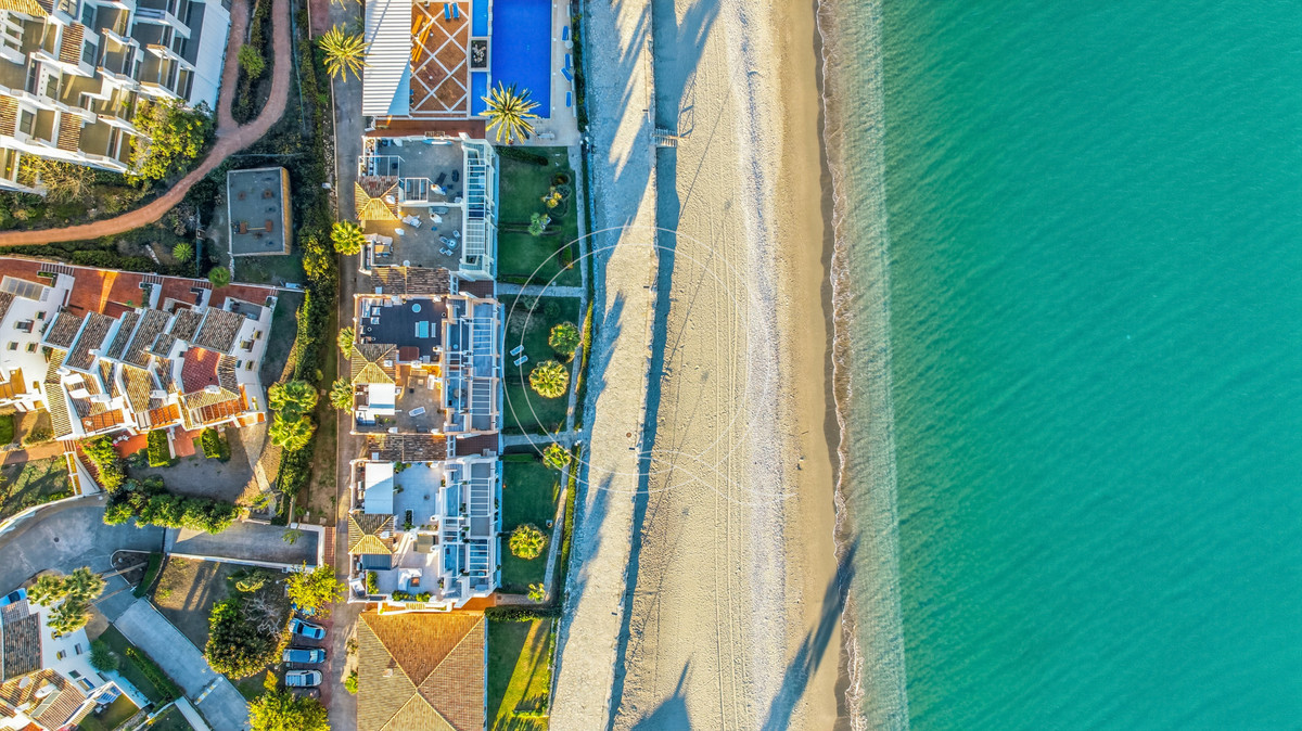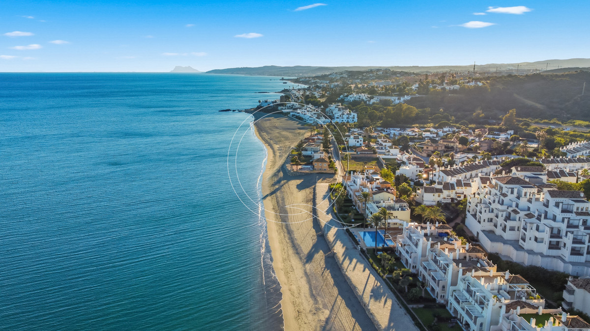 Dit appartement met drie slaapkamers bevindt zich op de begane grond van een prestigieus complex direct aan het strand, net ten westen van Estepona, en biedt een uitzonderlijke combinatie van kustcomfort en een ontspannen mediterrane levensstijl. Met directe toegang tot de tuin en op slechts een steenworp afstand van het strand en de iconische Paseo Marítimo, biedt het een zeldzame kans om te genieten van het leven aan zee op een van de meest gewilde locaties in de regio. Het appartement profiteert van een onovertroffen locatie: dagelijkse voorzieningen zijn vlakbij, het bruisende centrum van Estepona ligt op korte rijafstand en de rustige omgeving aan zee zorgt voor een ideale balans tussen gemak en rust. Binnen verbindt de lichte en ruime indeling de keuken, eetkamer en woonkamer in een open ruimte die zorgt voor een ontspannen woon- en verblijfssfeer. Grote ramen en schuifdeuren laten veel natuurlijk licht binnen en bieden een naadloze overgang naar de buitenruimte. Een opvallend kenmerk van deze woning is de royale privétuin met terras – perfect om te genieten van rustige ochtenden, buiten te dineren of gewoon te ontspannen aan zee. De buitenruimte vergroot de woonruimte en draagt bij aan het dagelijkse genot van de kustomgeving. De master suite biedt een serene oase met uitzicht op zee en een eigen stijlvolle badkamer. Twee extra gastenslaapkamers delen een goed uitgeruste badkamer, wat comfort en privacy garandeert voor familie en bezoekers. Met 115 vierkante meter woonruimte en een terras van 15 vierkante meter dat direct toegang biedt tot de tuin, combineert de woning functionaliteit met een elegante woonstijl. Een eigen garage en een ruime berging zorgen voor extra gemak. Het complex kenmerkt zich door klassieke Andalusische architectuur, een groot gemeenschappelijk zwembad omgeven door weelderig groen en directe toegang tot het strand en de boulevard, ideaal voor ontspannen wandelingen, fietstochten of gewoon om te genieten van het mediterrane klimaat. Dit uitnodigende appartement op de begane grond belichaamt de essentie van het leven aan zee, waar comfort, ruimte en een bevoorrechte locatie samenkomen aan de oevers van de Middellandse Zee.