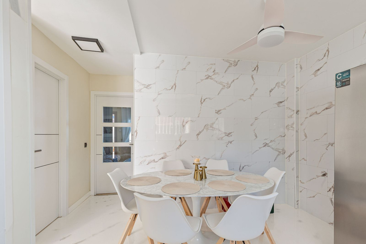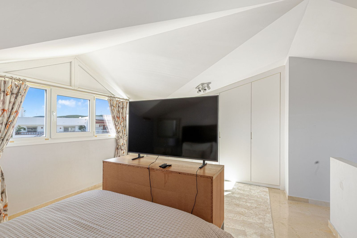 5-slaapkamer herenhuis met uitzicht op de wijngaard - tussen Manilva en Sabinillas Dit herenhuis met vijf slaapkamers ligt tussen de wijngaarden die naar de kust afdalen, tussen Manilva en San Luis de Sabinillas. Het combineert het gemak van het moderne gezinsleven met de romantiek van een authentieke Andalusische omgeving. Hoogtepunten van het pand * Stadswoning met vijf slaapkamers en drie badkamers, verdeeld over meerdere verdiepingen * Ruime, afgesloten entreepatio die dienstdoet als privé-binnenplaats * Een groot halfoverdekt balkon met open uitzicht over de wijngaarden, het zwembad en de kustlijn * Master suite op zolderniveau met eigen badkamer en terras - een gevoel van rust * Keldergarage en berging met directe toegang tot gemeenschappelijke zwembaden en tuinen * Gated community op korte loopafstand van het dorpsplein en de voorzieningen van Manilva Interieurbeschrijving U komt binnen via een ruime, omheinde patio met hoge muren die een rustige, besloten binnenplaats creëren - perfect voor spelende kinderen, huisdieren die in de zon liggen en lange, gezellige lunches in de schaduw van de middagbries. Een nieuwe voordeur geeft direct toegang tot de volledig ingerichte keuken, een praktisch hart van het huis met een semi-open gevoel dankzij de centrale trap die de keuken subtiel scheidt van de woonkamer. De lounge is licht en uitnodigend, omlijst door uitzichten die je aandacht trekken zodra je binnenkomt. Schuif de deuren open naar een groot halfoverdekt balkon en het landschap ontvouwt zich: wijngaarden en het gemeenschappelijke zwembad op de voorgrond, bergen die opdoemen op de achtergrond en een kustlijn die zich uitstrekt tot Estepona. Het is een echte buitenkamer - een plek om de dag te beginnen met koffie en af te sluiten met diners bij zonsondergang - beschut genoeg om het hele jaar door te gebruiken, maar toch open naar de vergezichten die het landgoed kenmerken. Deze verdieping is compleet met een gastenbadkamer, die ruimte biedt voor extra gemak bij het dagelijks leven en het ontvangen van gasten. Slaapkamers & Indeling Boven, op de eerste verdieping, bevinden zich vier tweepersoonsslaapkamers en een familiebadkamer, die flexibele ruimte bieden voor gasten, thuiskantoren, hobbykamers of groeiende gezinnen. Twee grotere slaapkamers aan de achterzijde delen een eigen balkon met een even indrukwekkend uitzicht op zee en de bergen - een intieme plek voor rustige ochtenden, slaapmutsjes en lange gesprekken. De zolderverdieping is omgetoverd tot een master suite met eigen badkamer, terras en dakkapellen. Verscholen onder de dakrand voor privacy en een gevoel van rust, waarbij de hoogte een subtiel gevoel van boven alles geeft. Al met al is de indeling geschikt voor zowel het dagelijks leven als voor het comfortabel organiseren van grotere bijeenkomsten. Terrassen, uitzichten en buitenleven De buitenruimte is een echte blikvanger. De afgesloten patio biedt een veilige speelruimte voor kinderen en huisdieren, en een beschutte binnenplaats voor lange lunches en ontspannen avonden. Vanuit de woonkamer bereikt u een groot halfoverdekt balkon dat dienstdoet als een echte buitenkamer, met uitzicht op de wijngaarden, het gemeenschappelijke zwembad, de bergen en de kustlijn tot aan Estepona. Onder de lounge biedt de kelderverdieping een praktische toevoeging: een garage en berging met directe toegang tot de gemeenschappelijke zwembaden en tuinen. Ideaal voor strandspullen, fietsen, paddleboards en alles wat hoort bij een leven tussen wijngaarden en de Middellandse Zee. Gemeenschap & Levensstijl Het herenhuis bevindt zich in een afgesloten complex met slechts een handvol woningen, met goed onderhouden tuinen en een gemeenschappelijk zwembad als middelpunt. Het leven hier wisselt zich moeiteloos af tussen binnen en buiten: ochtendzwemmen, luie middagen bij het zwembad en avonden op uw eigen terras met uitzicht op de wijnranken. De omgeving combineert het rustige ritme van een traditioneel dorp met de faciliteiten die u van een moderne Costa del Sol-ontwikkeling mag verwachten, wat een evenwichtige levensstijl creëert voor zowel vaste bewoners als vakantiegangers. Locatie & Omgeving De locatie biedt u het beste van twee werelden: het rustigere ritme van een pueblo blanco, waar het lokale leven zich afspeelt op het plein en de seizoenen worden gekenmerkt door de cyclus van de wijngaarden, en de energie van de kust op slechts een korte rijafstand, waar u kunt golfen, winkelen en dagjes uit naar het strand kunt. Vanaf uw voordeur is het ongeveer vijf minuten lopen naar het dorpsplein van Manilva, waar cafés, tapasbars, kleine supermarkten, banken en apotheken zich verzamelen rond witgekalkte straten. Er rijdt regelmatig een pendeldienst naar San Luis de Sabinillas voor grotere supermarkten, een ruimere keuze aan voorzieningen en lange zandstranden. Het nabijgelegen Puerto de La Duquesa biedt een levendige jachthaven met restaurants en promenades langs het water. Met de auto zijn Estepona en Sotogrande binnen 15 minuten te bereiken, Marbella in minder dan 30 minuten, de luchthaven van Malaga in ongeveer een uur en de luchthaven van Gibraltar is zelfs nog dichterbij voor reizigers vanuit het Verenigd Koninkrijk. Dit maakt reizen eenvoudig voor zowel eigenaren als gasten. Voor weekendtripjes zijn Málaga, Granada, Cádiz, Jerez en Sevilla allemaal binnen ongeveer tweeënhalf uur te bereiken. Hierdoor kunt u de cultuur, de keuken en de historische wijken van Andalusië prima verkennen voor een ontspannen dagtocht. Waarom het opvalt * Sfeervolle omgeving tussen wijngaarden tussen Manilva en Sabinillas * Vijf-slaapkamerindeling, ideaal voor gezinnen, gasten of flexibel thuiswerken * Meerdere buitenruimtes, waaronder een groot entreeterras en een terras met breed uitzicht * Afgesloten complex met zwembad, tuinen en directe toegang vanuit de privégarage * Gemakkelijk bereikbaar vanaf stranden, jachthavens, golfbanen en belangrijke steden aan de Costa del Sol Veelgestelde vragen Wat zijn de tot
