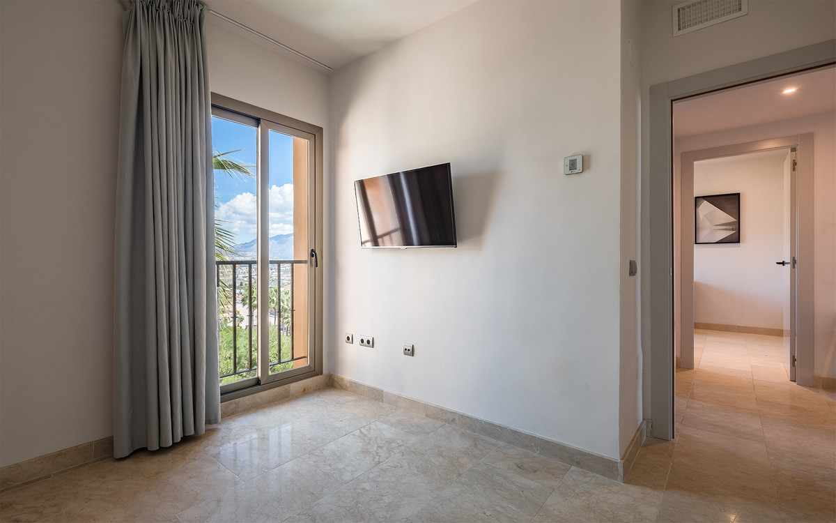 Spectaculair penthouse op één niveau met panoramisch uitzicht op zee – Hacienda del Señorio de Cifuentes, Benahavís Dit uitzonderlijke penthouse op één verdieping biedt een adembenemend panoramisch uitzicht over de Middellandse Zee, Gibraltar en zelfs de verre kustlijn van Noord-Afrika. De woning heeft een uitnodigende entreehal die leidt naar een lichte en ruime woon-eetkamer met toegang tot twee prachtige terrassen. Het terras op het zuidoosten biedt een adembenemend uitzicht op de berg La Concha, de golfbaan van Atalaya en de zee, terwijl het terras op het zuiden/zuidwesten een weids uitzicht op zee en onvergetelijke zonsondergangen biedt. De moderne open keuken is volledig uitgerust met hoogwaardige Siemens-apparatuur en is perfect ontworpen voor zowel functionaliteit als stijl. De hoofdslaapkamer met eigen badkamer geeft direct toegang tot het terras, waardoor een naadloze overgang tussen binnen en buiten ontstaat. Twee extra slaapkamers delen een fraai ingerichte badkamer. Extra functies zijn onder andere: 24-uurs beveiliging en conciërgeservice Camerabewaking in de hele gemeenschap Airconditioning (warm en koud) met Airzone zoneregelaars Vloerverwarming in het hele huis Gasbarbecue Dit penthouse is gelegen in een rustige en veilige woonwijk op slechts 15 minuten rijden van Puerto Banús en het strand, en combineert rust en privacy met gemakkelijke toegang tot de beste voorzieningen van de Costa del Sol.