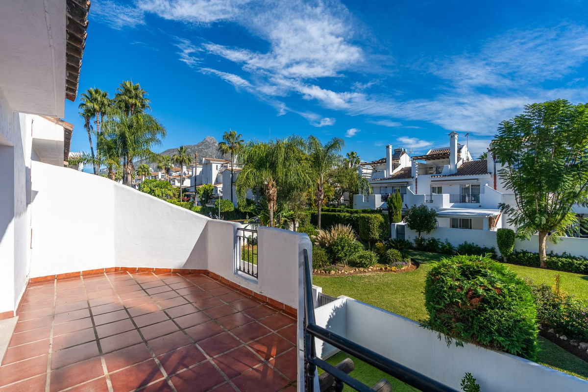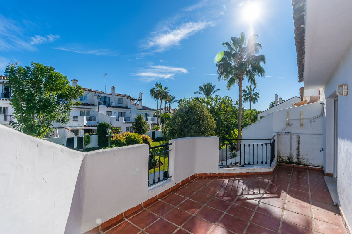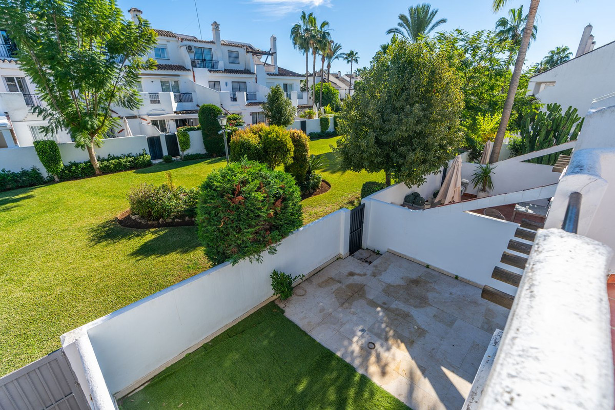 Een goed gelegen herenhuis met 3 slaapkamers en 3 badkamers in Los Naranjos, in het hart van Nueva Andalucía en op een steenworp afstand van Puerto Banús. De woning staat leeg en is toe aan renovatie, maar biedt een sterk potentieel voor herinrichting en waardevermeerdering in een van de meest gewilde woonwijken van Marbella. Het huis is verdeeld over drie verdiepingen en beschikt over een privétuin met directe toegang tot de gemeenschappelijke tuinen en het zwembad. Dankzij de indeling is het mogelijk om maximaal twee extra kamers te creëren door de garage, het dakterras of de keuken opnieuw in te delen, afhankelijk van het gewenste project. Gelegen in een gemeenschap die bekend staat om zijn Andalusische charme en aangelegde omgeving, ligt de woning dicht bij scholen, restaurants, golfbanen en essentiële voorzieningen. Ideaal voor kopers die op zoek zijn naar een persoonlijke woning of een solide langetermijninvestering op een toplocatie.