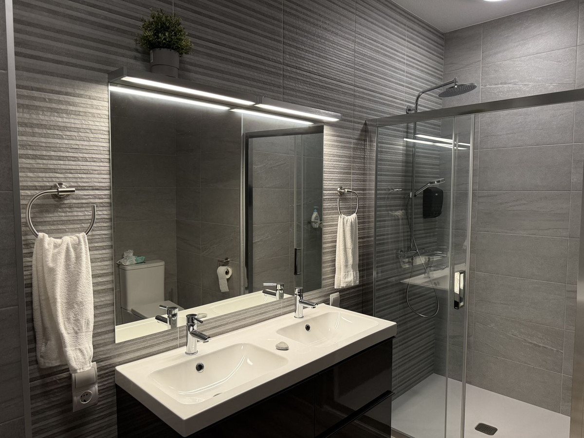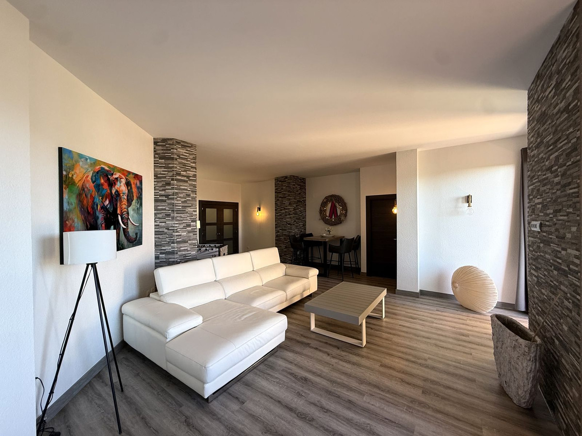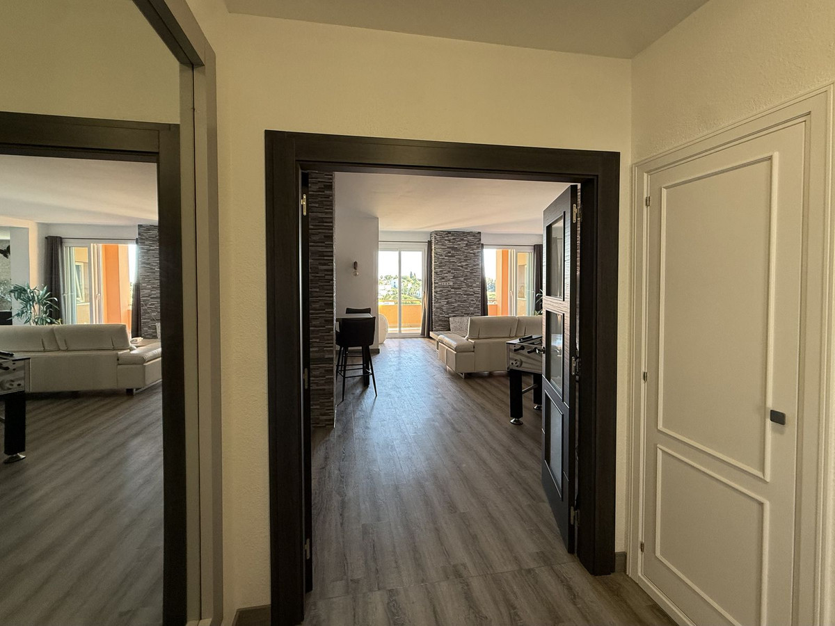 Dit onlangs gerenoveerde appartement met 3 slaapkamers en 3 badkamers biedt 170 m² lichte, ruime woonruimte op één verdieping, oorspronkelijk gecreëerd door twee units samen te voegen tot één. Gelegen op de begane grond van een gebouw met 6 verdiepingen, maar gelijk aan de derde verdieping, profiteert het van volledige privacy zonder directe buren. De woning beschikt over een nieuwe keuken met Bosch- en Siemens-apparatuur, granieten werkbladen, nieuwe vloeren, deuren, hoge plafonds, een nieuwe cv-ketel en UV-werende dubbele beglazing. De hoofdslaapkamer beschikt over een en-suite badkamer en inloopkast. Een overdekt privéterras van 12 m² biedt een rustgevend uitzicht op zee en de bergen en de woning is op het oosten gericht. De community beschikt over een groot zomerzwembad, een kinderbad, een tennisbaan, een overdekte ontmoetingsruimte en een barbecue-/picknickplaats. Twee overdekte privéparkeerplaatsen zijn inbegrepen en de kosten voor tuinonderhoud, schoonmaak en zwembadonderhoud zijn inbegrepen in de kosten van de community. Dit ruime, rustige en instapklare appartement ligt op slechts 5 minuten lopen van het strand en supermarkten, en op 5 minuten rijden van het centrum van Estepona. Het is ideaal voor comfortabel wonen aan de kust.