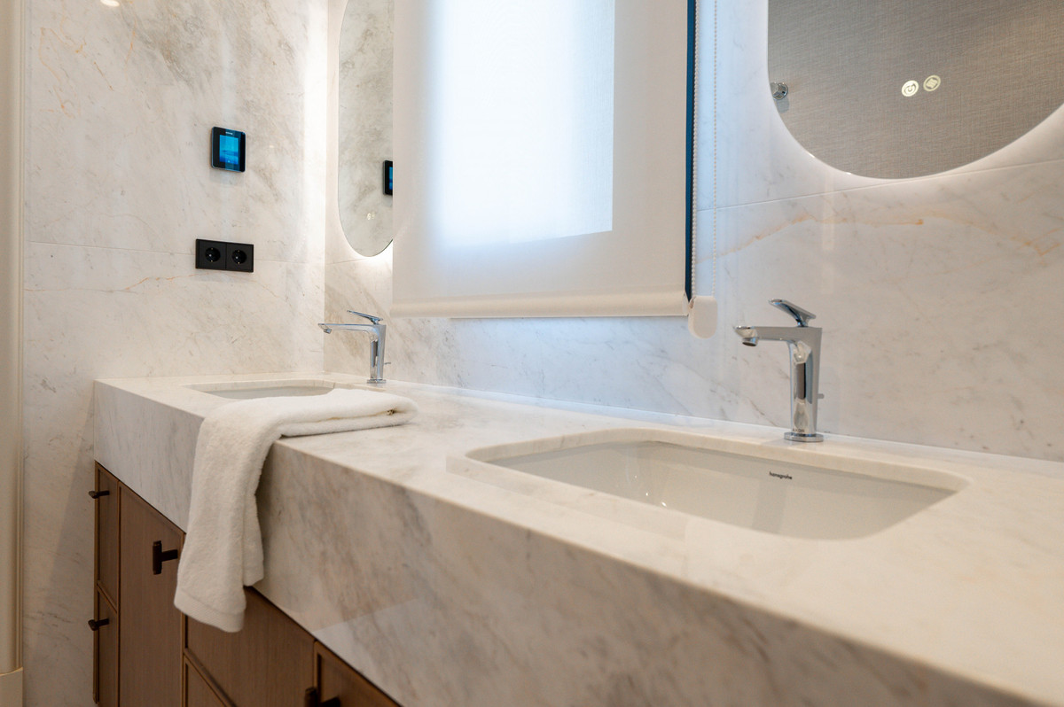 Deze prachtige villa, discreet gelegen achter een privépoort in een van Elviria's meest gewilde woonwijken, is een verborgen pareltje dat zijn charme onthult zodra u de woning betreedt. Vanaf de straat heeft de woning een bescheiden voorgevel, maar eenmaal binnen de poorten opent het zich naar een prachtig aangelegd perceel van 1.350 m² met een betoverend gevoel van ruimte, licht en rust. Met circa 270 m² aan verfijnde leefruimte binnen, aangevuld met bijna 200 m² aan terrassen, waaronder een zonneterras met uitzicht op groen en zee, is deze villa zorgvuldig ontworpen voor comfortabel wonen met het gezin en verfijnde entertainment in de buitenlucht. De begane grond heeft een lichte en open indeling die de keuken, eetkamer en woonkamer naadloos met elkaar verbindt. Het interieur is ingericht in een neutraal kleurenpalet met elegante houtaccenten, wat een harmonieuze mix creëert van modern design en natuurlijke warmte. De kamerhoge glaspanelen aan beide gevels overspoelen de ruimte met natuurlijk licht en zorgen voor een opvallende zichtlijn vanuit de hal naar het terras en verder. Op deze verdieping bevinden zich ook drie ruime slaapkamers met eigen badkamer, elk met een smaakvolle afwerking en gemakkelijke toegang tot de buitenruimtes. De woon- en keukenruimtes komen direct uit op een groot, gedeeltelijk overdekt terras met uitzicht op de prachtig verzorgde tuin met twee niveaus en het uitnodigende zwembad. Aangrenzend aan het zwembad bevindt zich een stijlvolle buitenkeuken en barbecueplek, perfect gelegen naast een ruim zonneterras, ideaal om gasten te ontvangen of in alle privacy te ontspannen. Onder het zonneterras bevindt zich een veelzijdige ruimte die momenteel is ingericht als sportschool, voor extra aantrekkingskracht. De kelderverdieping, bereikbaar via een binnentrap, geniet dankzij slimme architectonische planning van een royale plafondhoogte en veel natuurlijk licht. Hier vindt u een volledig zelfstandig appartement met een ruime vierde slaapkamer, een badkamer en extra leefruimte, perfect voor gasten of een uitgebreide familie. Deze ruimte kan ook eenvoudig worden omgebouwd tot een vijfde slaapkamer, wat uitstekende flexibiliteit biedt. De villa combineert prachtig natuursteen, weelderig groen en verfijnde afwerkingen. Of u nu op zoek bent naar een permanente woning, een vakantiehuis of een slimme investering, deze woning voldoet aan alle eisen. Een uitzonderlijke kans op een toplocatie in Marbella. Bezichtigingen worden sterk aanbevolen om de unieke sfeer en het ontwerp van dit opmerkelijke huis ten volle te kunnen waarderen.