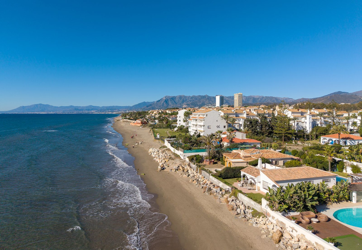 Charmant pareltje aan de kust – op slechts een steenworp afstand van het strand! Ontdek deze vrijstaande villa op slechts 150 meter van het strand in de zeer gewilde woonwijk Marbesa. Deze prachtig gerenoveerde, gelijkvloerse woning beschikt over 2 slaapkamers en 2 badkamers en is direct te betrekken. Een buitentrap leidt naar een ruim dakterras waar u kunt genieten van een prachtig uitzicht op zee en onvergetelijke zonsondergangen, met uitzicht tot aan de Afrikaanse kustlijn en Gibraltar. De woning beschikt over een gezellig terras met een jacuzzi en een tuin – perfect voor barbecues en ontspannen mediterrane avonden met familie en vrienden, het hele jaar door. Ideaal gelegen op loopafstand van een supermarkt en populaire restaurants zoals Moosa Bay, Club 200 en Simbad. Het centrum van Marbella ligt op slechts 10 minuten rijden en de luchthaven van Málaga is in ongeveer 35 minuten te bereiken. Een uitzonderlijke kans die u niet mag missen! Vrijstaande villa, Marbesa, Costa del Sol. 2 slaapkamers, 2 badkamers, bebouwde oppervlakte 90 m², terras 181 m², tuin/perceel 268 m². Ligging: Aan het strand, vlakbij de zee, dicht bij scholen. Oriëntatie: Zuidoost, Zuid, Zuidwest. Conditie: Uitstekend. Klimaatregeling: Airconditioning, Warme airconditioning, Koude airconditioning. Uitzicht: Zee, tuin. Kenmerken: Overdekt terras, Inbouwkasten, Nabij openbaar vervoer, Privéterras, Serre, Berging, Badkamer en suite, Jacuzzi, Barbecue, Dubbele beglazing, Glasvezelinternet. Meubilair: Optioneel. Keuken: Volledig ingericht. Tuin: Privé, onderhoudsvriendelijk. Beveiliging: Elektrische rolluiken, alarmsysteem, 24-uursbewaking. Parkeren: Privé. Categorie: Strandwoningen, Vakantiehuizen, Investeringen, Luxe, Herverkoop, Hedendaags.