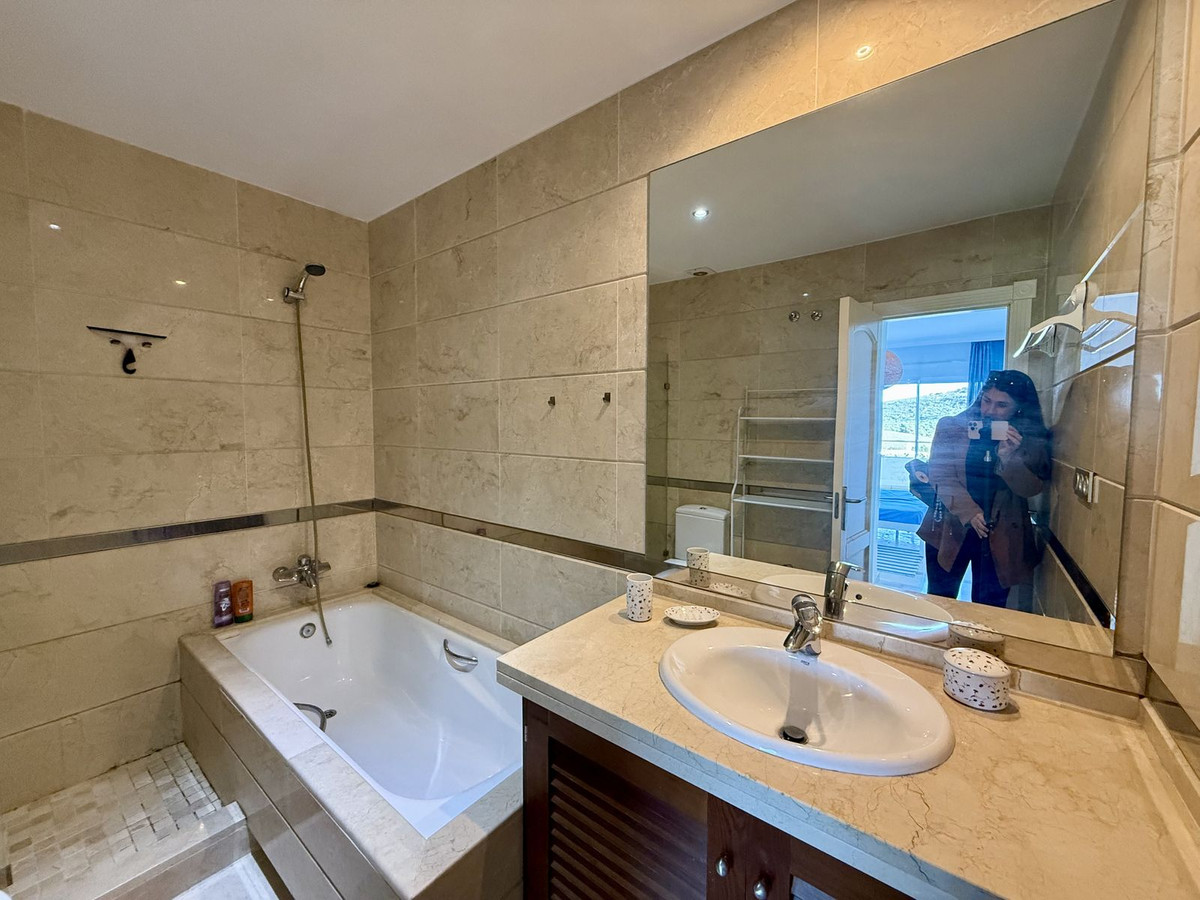 Dit ruime en elegante appartement met drie slaapkamers in San Roque Club, gelegen in een van de meest prestigieuze woonwijken van de regio, biedt de perfecte combinatie van comfort, stijl en een natuurlijke omgeving. Met royale afmetingen en een uitstekende oriëntatie op het zuidwesten, onderscheidt de woning zich door licht, ruimte en een serene sfeer. Een uitnodigende hal leidt naar binnen en verbindt de woning met de grote gezinskeuken, de slaapvleugel en, via een sierlijke boog, de lichte en ruime woonkamer. Deze prachtige ruimte beschikt over een open haard en een elegante eethoek die direct toegang biedt tot het terras – een ideale plek om te ontspannen, gasten te ontvangen of gewoon te genieten van het rustige uitzicht. Alle drie de slaapkamers zijn ruim en beschikken over een eigen en-suite badkamer, wat privacy en comfort garandeert voor familieleden of gasten. Het gastentoilet biedt extra gemak. Elke slaapkamer is voorzien van inbouwkasten die uitstekende opbergruimte bieden. Het appartement bevindt zich in een prachtig onderhouden woonwijk met verzorgde tuinen en een gemeenschappelijk zwembad. Het combineert de rust van een verfijnde woonomgeving met het gemak van de nabijheid van de bekende golfbanen, jachthaven en voorzieningen van Sotogrande, op slechts een steenworp afstand. De woning beschikt tevens over twee eigen parkeerplaatsen en een berging in de kelder van het gebouw, met een lift die direct toegang biedt tot het appartement voor dagelijks gemak. Perfect als permanente woning of als elegante vakantiewoning, biedt dit appartement een zeldzame kans om te genieten van de uitzonderlijke levenskwaliteit aan de kust van Cádiz, in de exclusieve omgeving van San Roque Club en op slechts enkele minuten van Sotogrande.