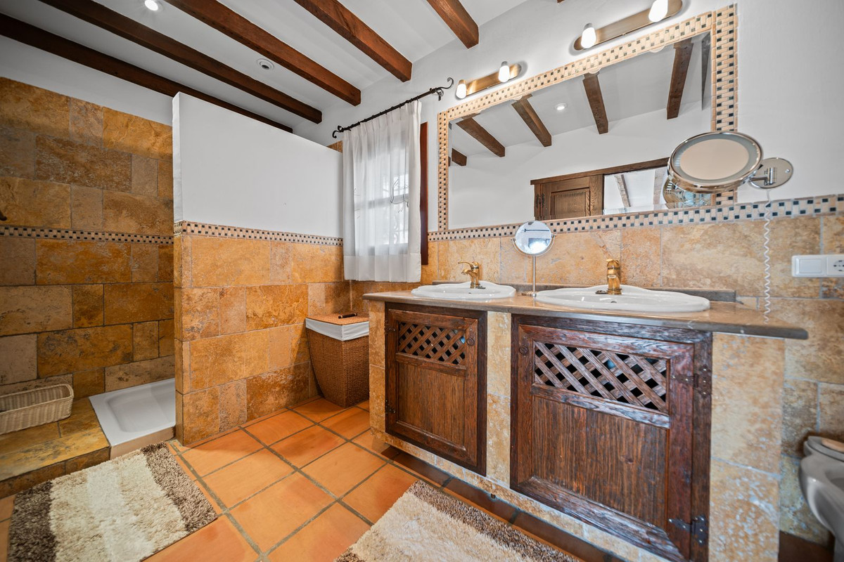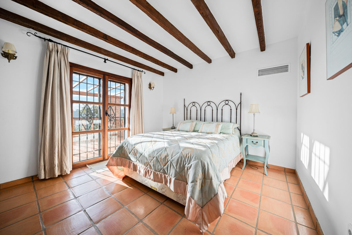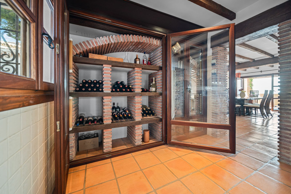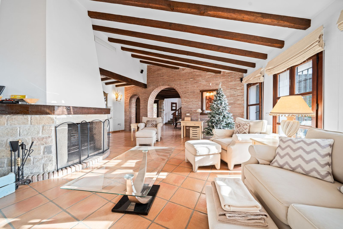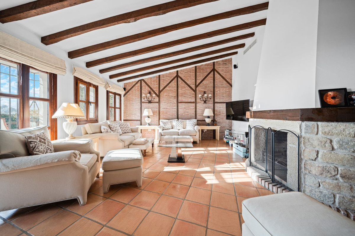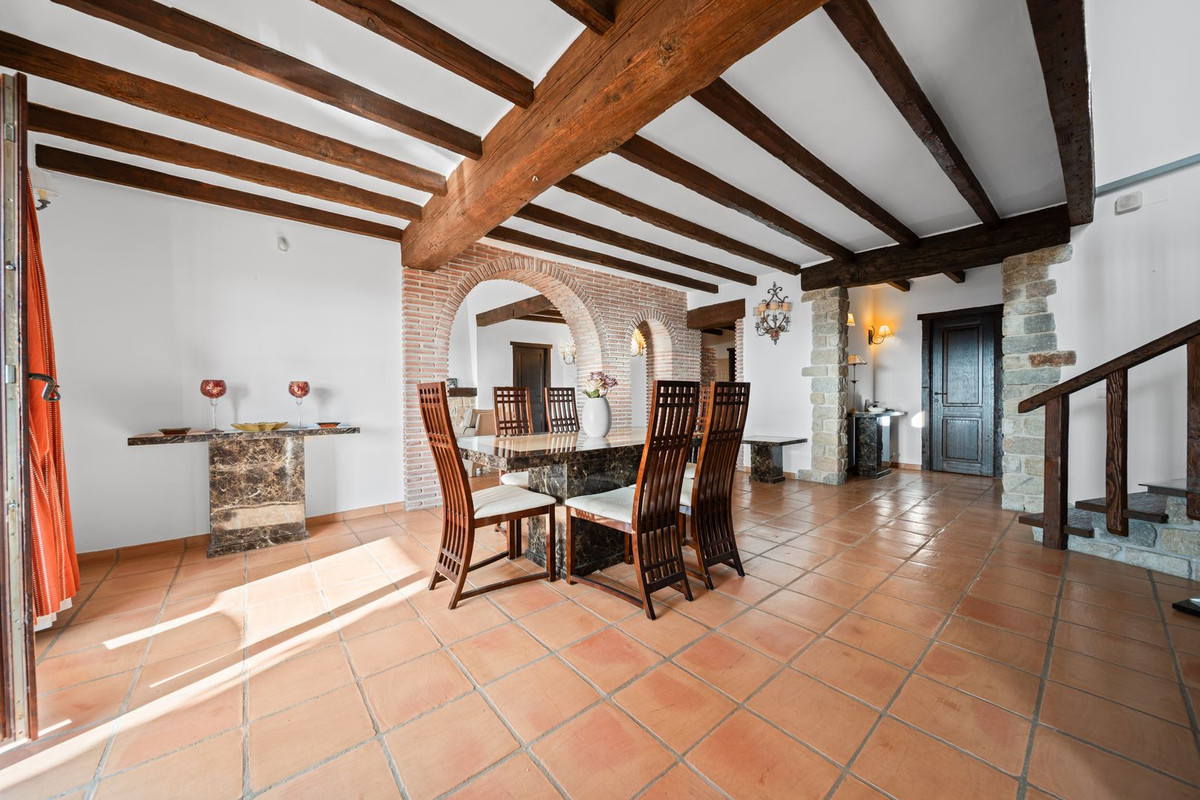 Uitzonderlijke kans! Prachtige villa in landelijke stijl met panoramisch uitzicht – Lomas de Mijas Met genoegen presenteren wij deze werkelijk unieke villa in landelijke stijl, te koop aangeboden in de prestigieuze en gewilde urbanisatie Lomas de Mijas, op slechts 3 minuten rijden van het charmante en historische Mijas Pueblo. Deze accommodatie biedt werkelijk adembenemende uitzichten – over de majestueuze bergen, de kustlijn van Fuengirola en Mijas, en natuurlijk de eindeloze, panoramische Middellandse Zee. De villa verkeert in uitstekende staat en betovert met haar authentieke Andalusische karakter: prachtige houten balken, details van baksteen en natuursteen, en een elegante rustieke afwerking die een warme en uitnodigende sfeer creëert. Het hoofdhuis beschikt over drie ruime slaapkamers, elk met een eigen kleedkamer en en-suite badkamer. Alle slaapkamers bieden een spectaculair uitzicht op zee – wakker worden in deze omgeving is een waar genot. Het zelfstandige gastenappartement beschikt over een eigen keuken, woonkamer, slaapkamer en directe toegang tot het zwembad – en biedt daarmee perfecte privacy voor familieleden, gasten of een au pair. Een groot, verwarmd zwembad zorgt ervoor dat u er het hele jaar door van kunt genieten. De charmante tuin in landelijke stijl leidt direct naar een prachtige barbecue en buitenkeuken, ideaal om vrienden en familie te ontvangen. De woning beschikt tevens over een dubbele garage en een eigen oprit met ruimte voor nog drie voertuigen. De villa wordt volledig gemeubileerd verkocht, is direct klaar om in te trekken en biedt uitzonderlijk comfort, ruimte, privacy en charme – en dat alles op een van de meest gewilde locaties aan de Costa del Sol.