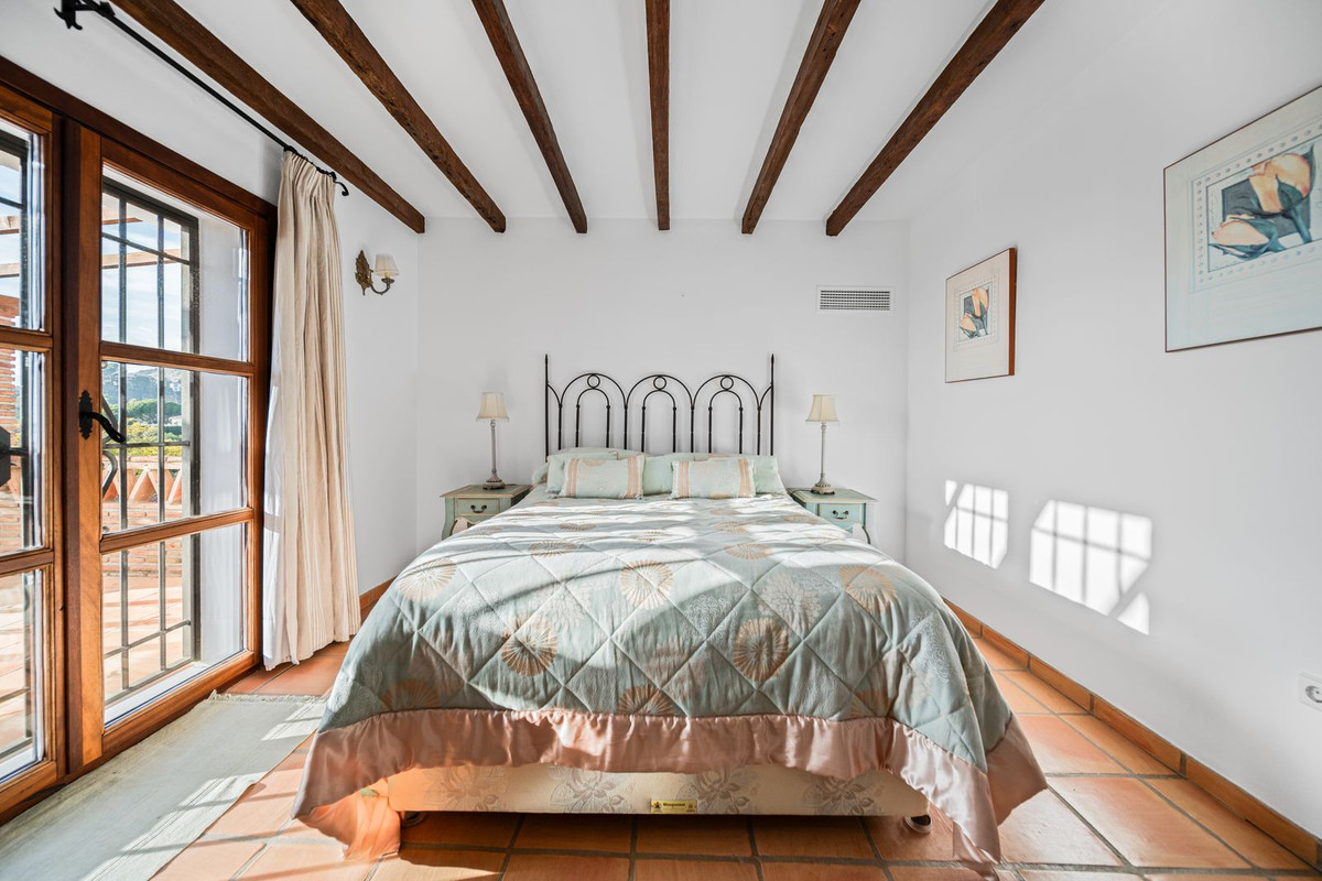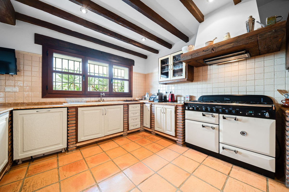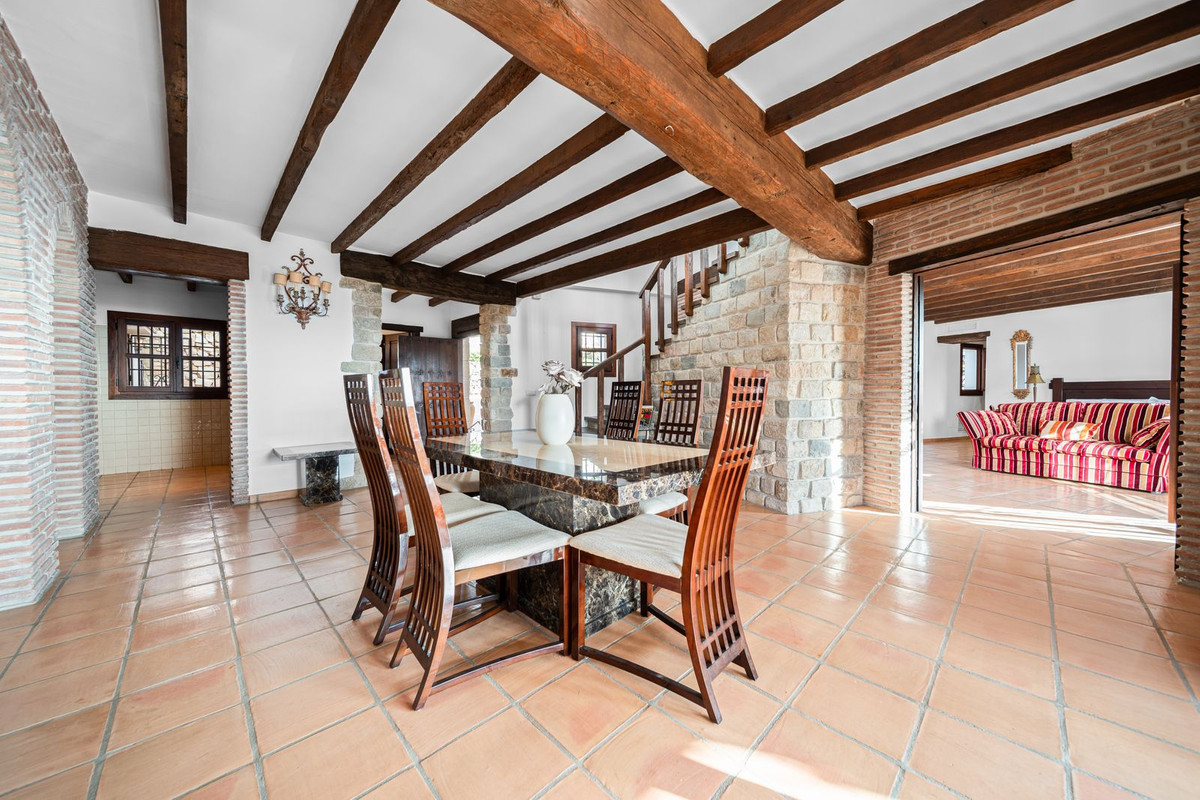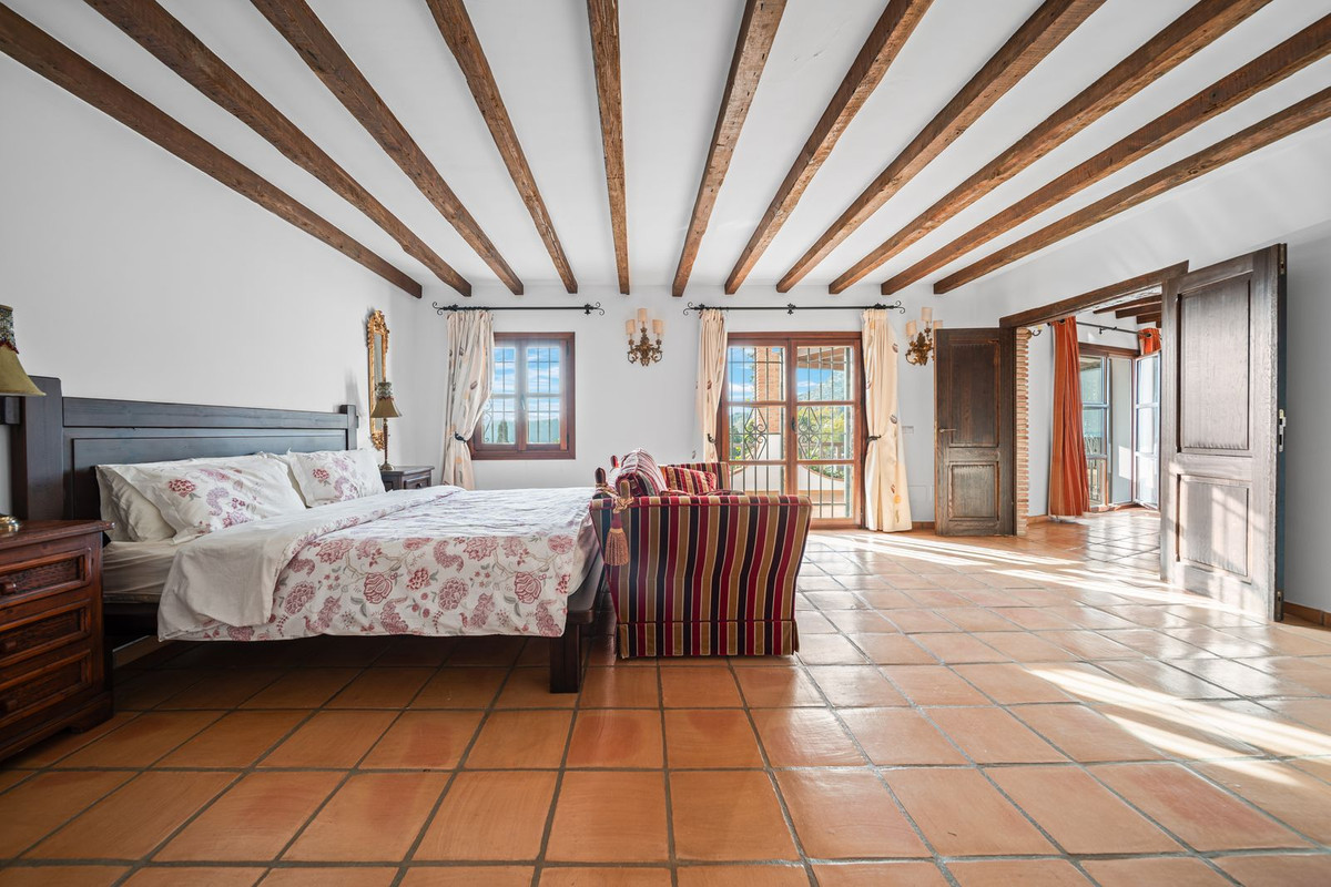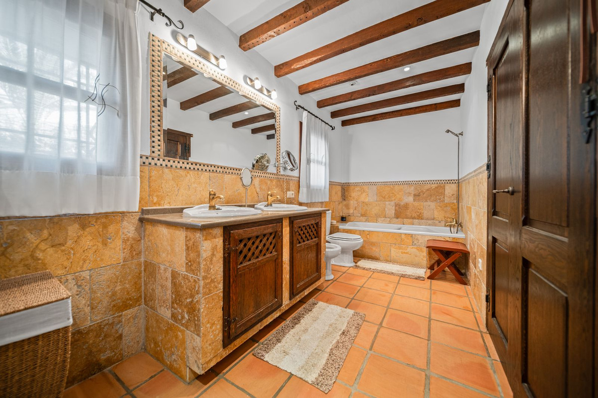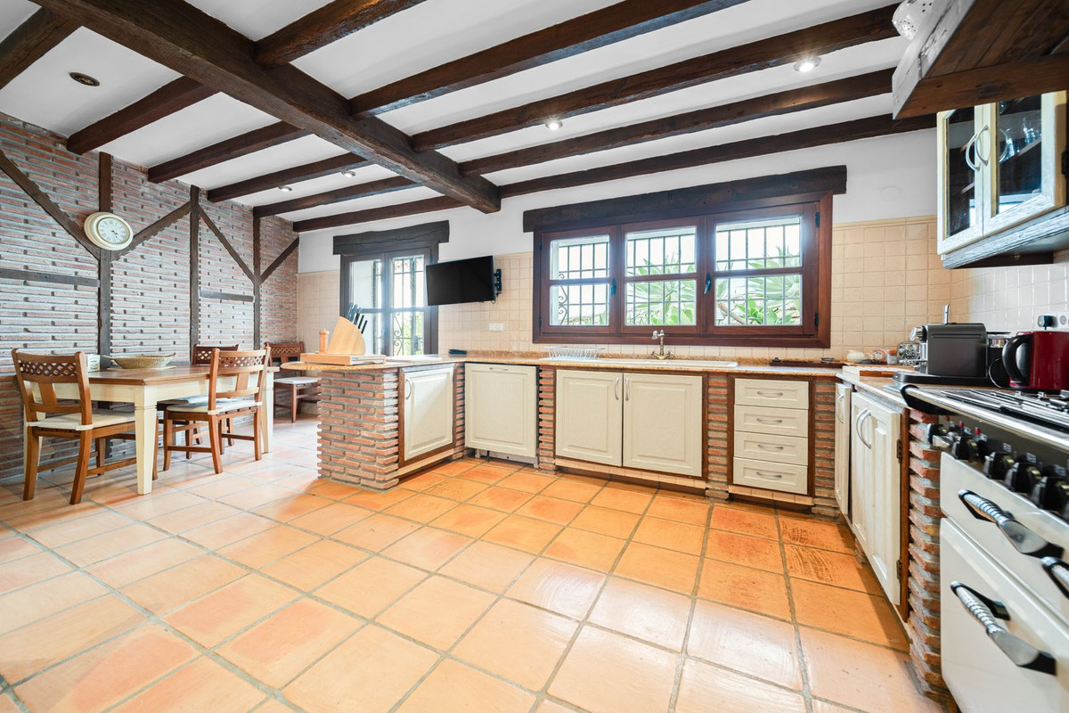 Uitzonderlijke kans! Prachtige villa in landelijke stijl met panoramisch uitzicht – Lomas de Mijas Met genoegen presenteren wij deze werkelijk unieke villa in landelijke stijl, te koop aangeboden in de prestigieuze en gewilde urbanisatie Lomas de Mijas, op slechts 3 minuten rijden van het charmante en historische Mijas Pueblo. Deze accommodatie biedt werkelijk adembenemende uitzichten – over de majestueuze bergen, de kustlijn van Fuengirola en Mijas, en natuurlijk de eindeloze, panoramische Middellandse Zee. De villa verkeert in uitstekende staat en betovert met haar authentieke Andalusische karakter: prachtige houten balken, details van baksteen en natuursteen, en een elegante rustieke afwerking die een warme en uitnodigende sfeer creëert. Het hoofdhuis beschikt over drie ruime slaapkamers, elk met een eigen kleedkamer en en-suite badkamer. Alle slaapkamers bieden een spectaculair uitzicht op zee – wakker worden in deze omgeving is een waar genot. Het zelfstandige gastenappartement beschikt over een eigen keuken, woonkamer, slaapkamer en directe toegang tot het zwembad – en biedt daarmee perfecte privacy voor familieleden, gasten of een au pair. Een groot, verwarmd zwembad zorgt ervoor dat u er het hele jaar door van kunt genieten. De charmante tuin in landelijke stijl leidt direct naar een prachtige barbecue en buitenkeuken, ideaal om vrienden en familie te ontvangen. De woning beschikt tevens over een dubbele garage en een eigen oprit met ruimte voor nog drie voertuigen. De villa wordt volledig gemeubileerd verkocht, is direct klaar om in te trekken en biedt uitzonderlijk comfort, ruimte, privacy en charme – en dat alles op een van de meest gewilde locaties aan de Costa del Sol.