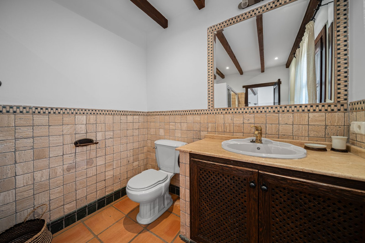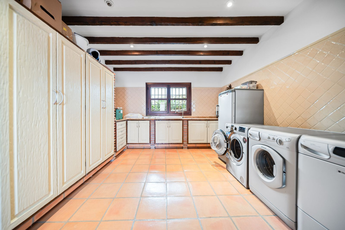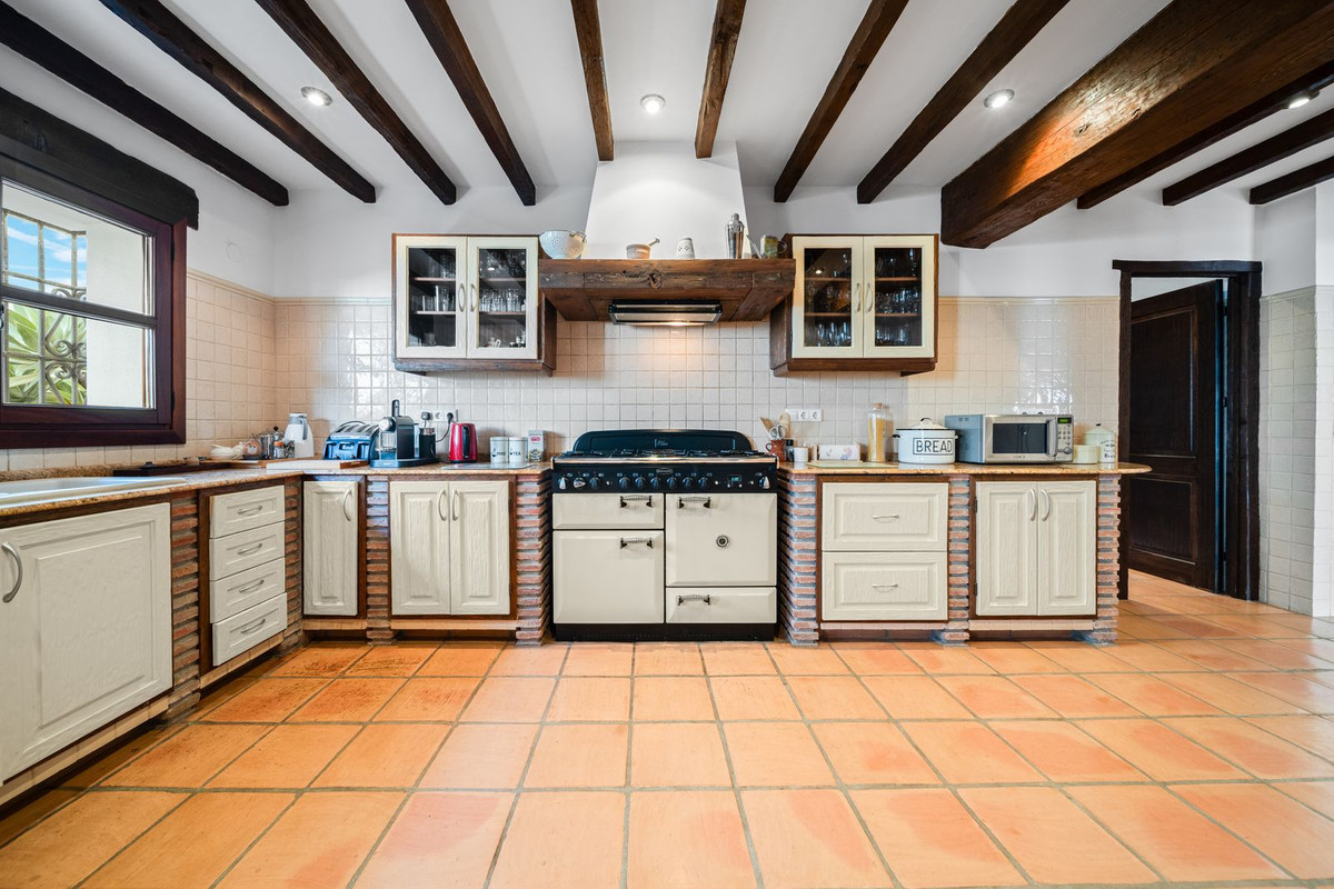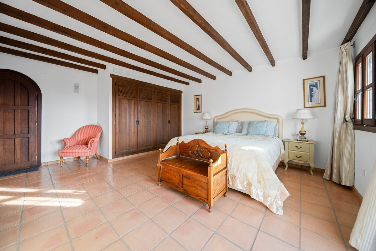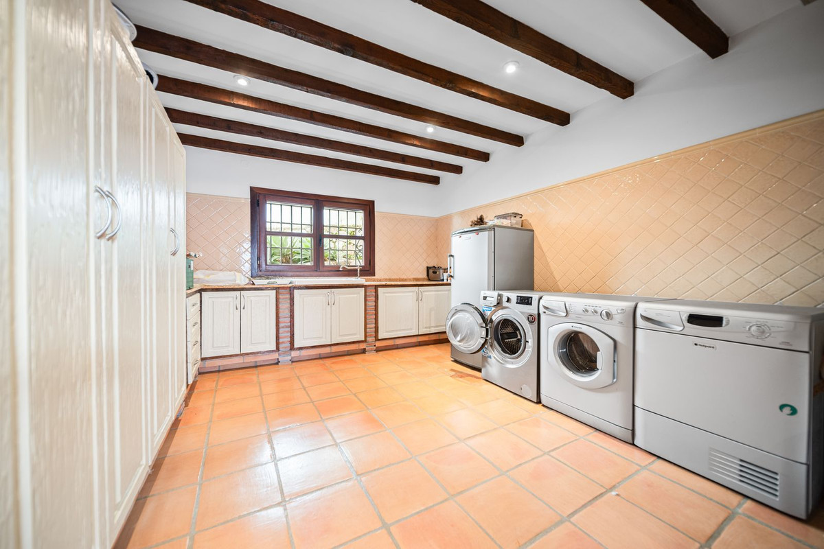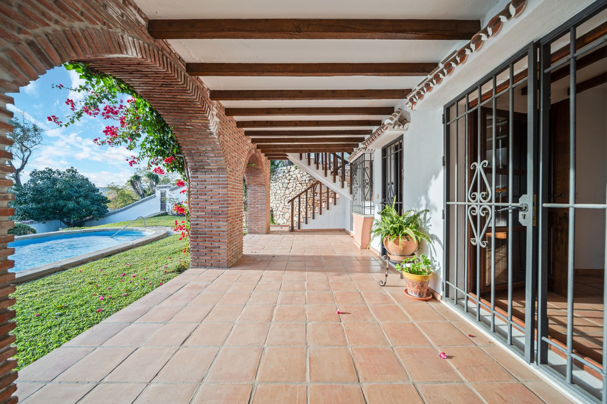 Uitzonderlijke kans! Prachtige villa in landelijke stijl met panoramisch uitzicht – Lomas de Mijas Met genoegen presenteren wij deze werkelijk unieke villa in landelijke stijl, te koop aangeboden in de prestigieuze en gewilde urbanisatie Lomas de Mijas, op slechts 3 minuten rijden van het charmante en historische Mijas Pueblo. Deze accommodatie biedt werkelijk adembenemende uitzichten – over de majestueuze bergen, de kustlijn van Fuengirola en Mijas, en natuurlijk de eindeloze, panoramische Middellandse Zee. De villa verkeert in uitstekende staat en betovert met haar authentieke Andalusische karakter: prachtige houten balken, details van baksteen en natuursteen, en een elegante rustieke afwerking die een warme en uitnodigende sfeer creëert. Het hoofdhuis beschikt over drie ruime slaapkamers, elk met een eigen kleedkamer en en-suite badkamer. Alle slaapkamers bieden een spectaculair uitzicht op zee – wakker worden in deze omgeving is een waar genot. Het zelfstandige gastenappartement beschikt over een eigen keuken, woonkamer, slaapkamer en directe toegang tot het zwembad – en biedt daarmee perfecte privacy voor familieleden, gasten of een au pair. Een groot, verwarmd zwembad zorgt ervoor dat u er het hele jaar door van kunt genieten. De charmante tuin in landelijke stijl leidt direct naar een prachtige barbecue en buitenkeuken, ideaal om vrienden en familie te ontvangen. De woning beschikt tevens over een dubbele garage en een eigen oprit met ruimte voor nog drie voertuigen. De villa wordt volledig gemeubileerd verkocht, is direct klaar om in te trekken en biedt uitzonderlijk comfort, ruimte, privacy en charme – en dat alles op een van de meest gewilde locaties aan de Costa del Sol.
