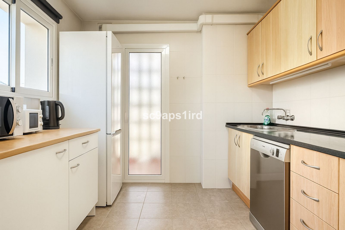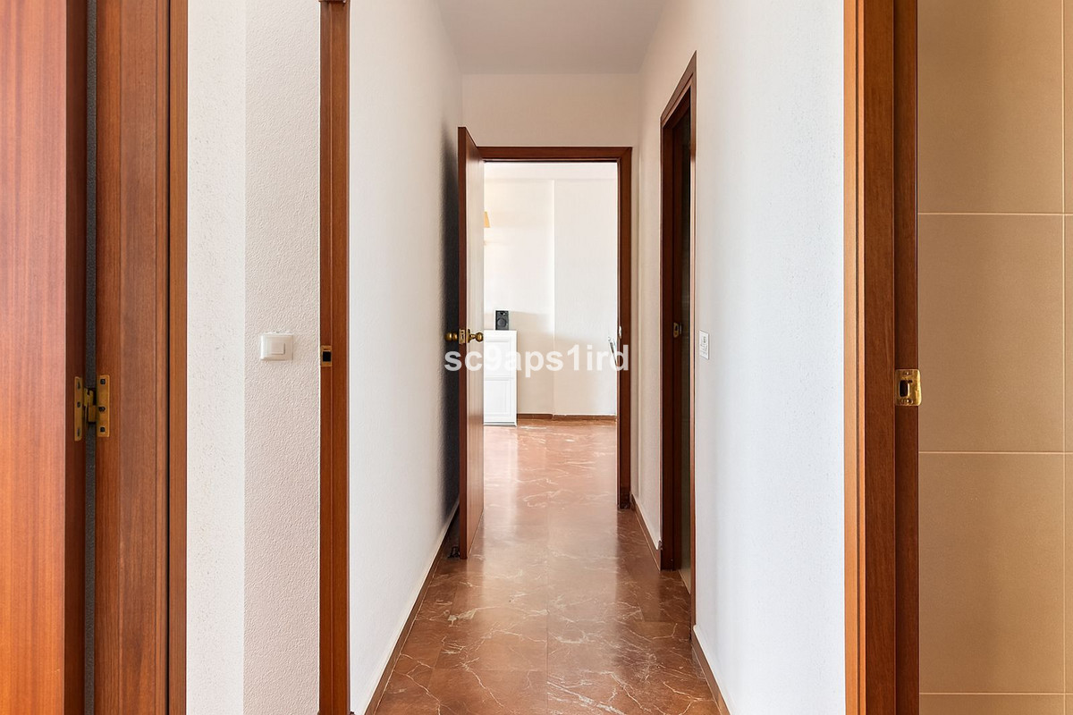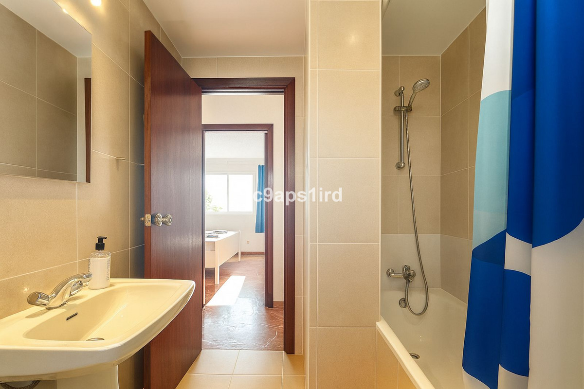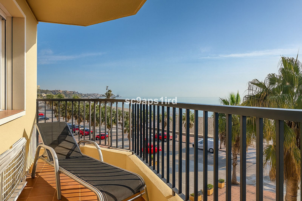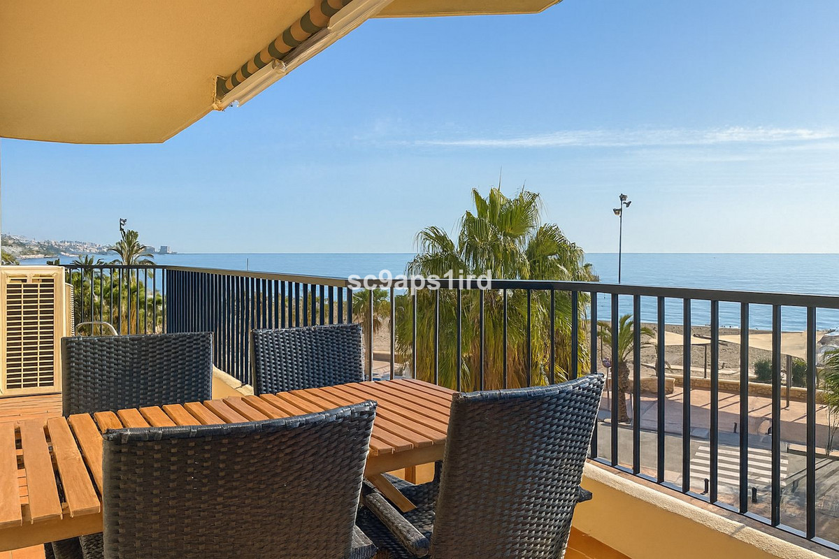 Dit gunstig gelegen appartement op een middelste verdieping geniet een werkelijk bevoorrechte positie aan de Paseo Marítimo in Fuengirola, direct tegenover het strand en op korte loopafstand van treinstation Carvajal. De woning heeft een woonoppervlakte van 94 m² plus een terras op het zuiden van 18 m², met een vrij uitzicht over de Middellandse Zee en de Sierra Nevada-bergen. Het terras is ideaal om buiten te vertoeven en is voorzien van een uitschuifbaar zonnescherm voor schaduw wanneer gewenst. Binnenin beschikt het appartement over drie slaapkamers en twee badkamers, waarbij alle slaapkamers zijn voorzien van inbouwkasten. De indeling is praktisch en comfortabel, met een aparte keuken die tevens dienstdoet als bijkeuken/wasruimte. Het appartement, gebouwd in 1980, maakt deel uit van een beveiligd wooncomplex met een toegangspoort, goed onderhouden gemeenschappelijke tuinen, een zwembad en gemeenschappelijke parkeergelegenheid. Met het strand letterlijk aan de overkant van de weg en op loopafstand van het treinstation, winkels, restaurants en alle dagelijkse voorzieningen, biedt deze woning een uitstekende kans als permanente woning, vakantiehuis of investering op een van de meest gunstig gelegen kustlocaties van Fuengirola.