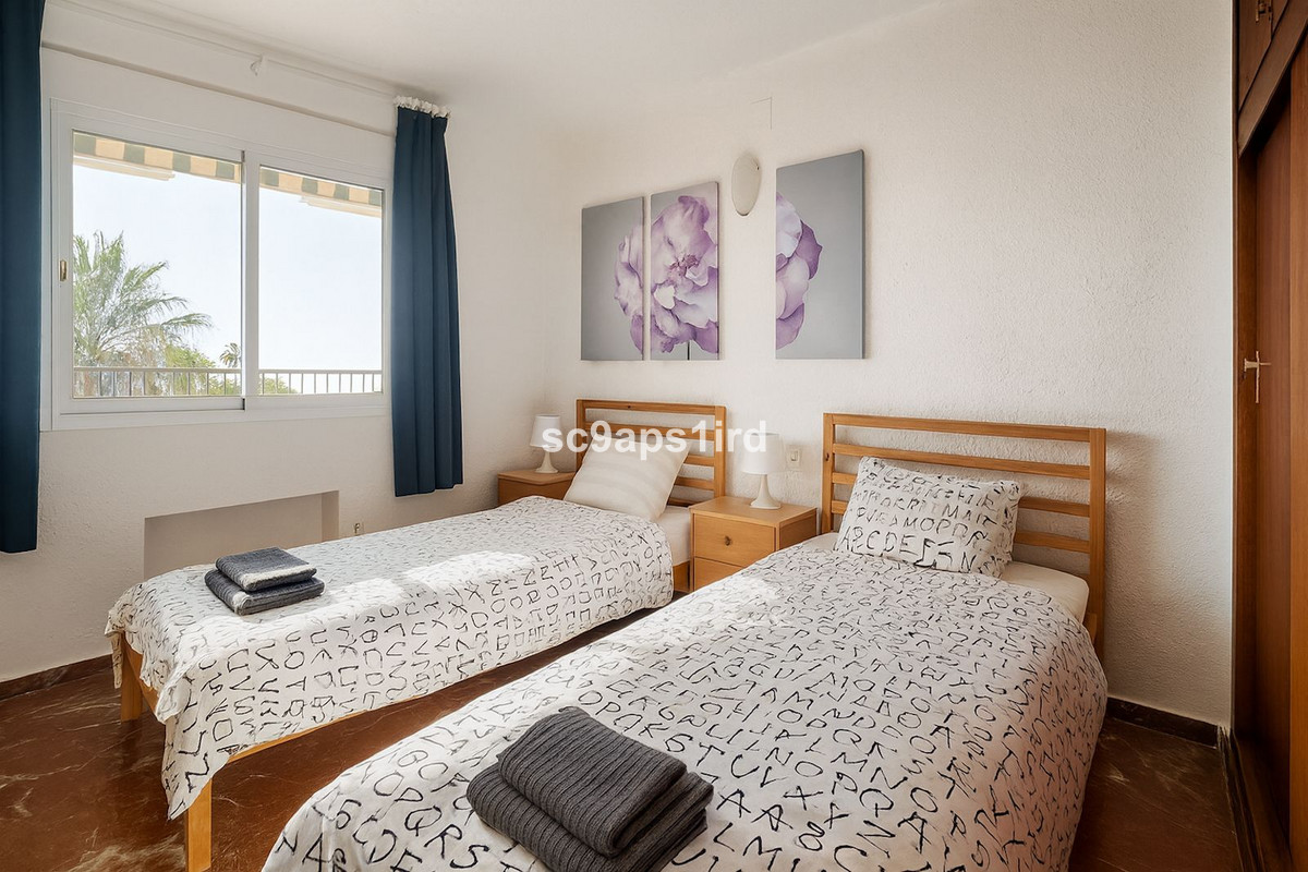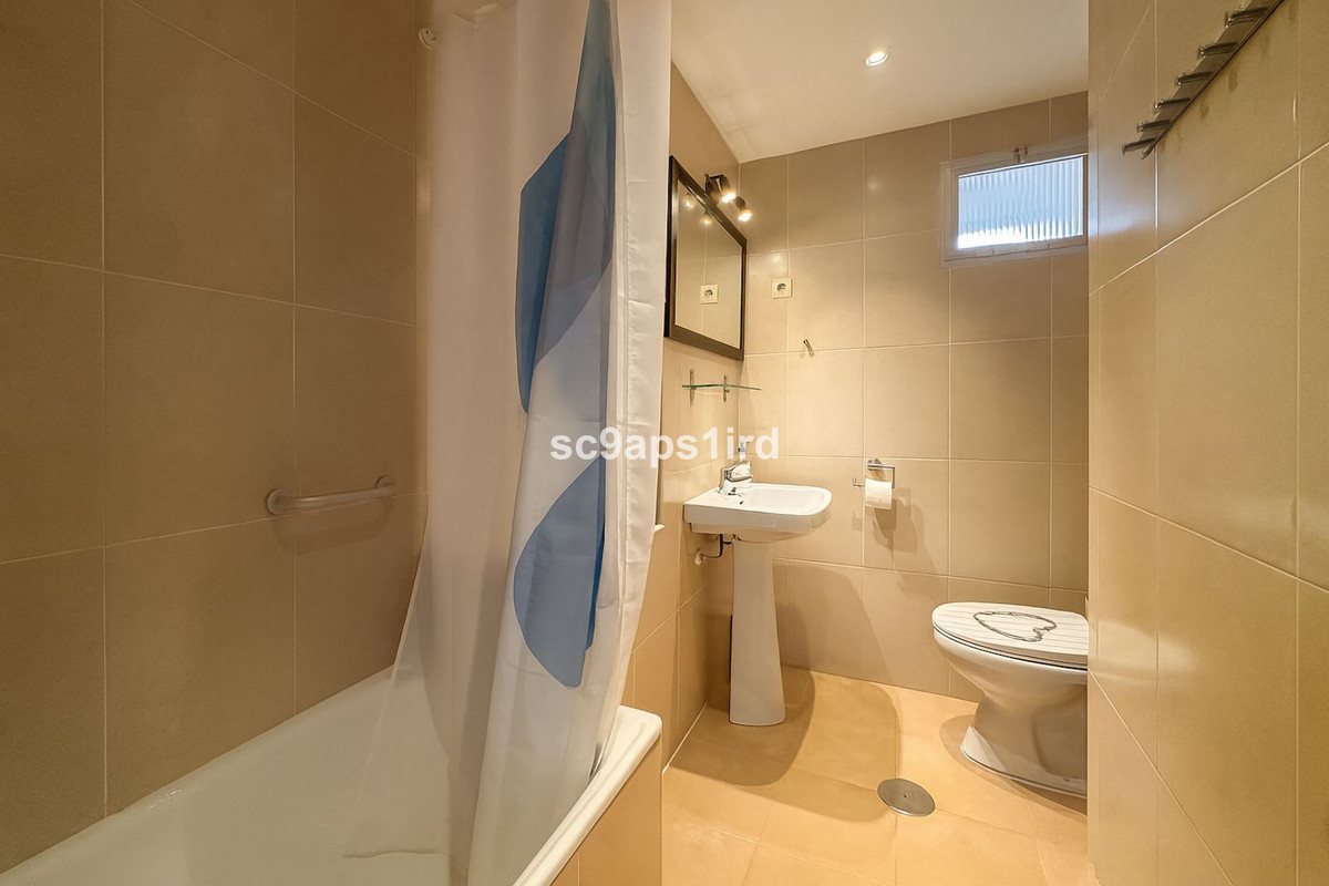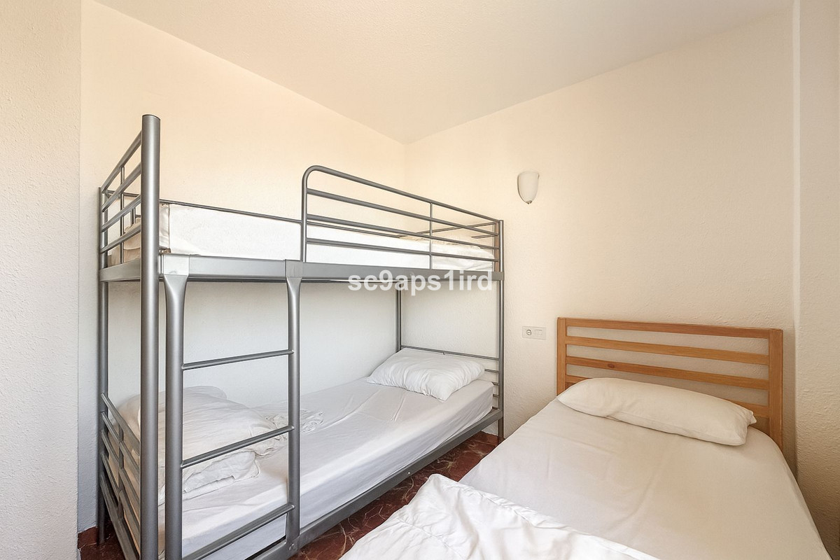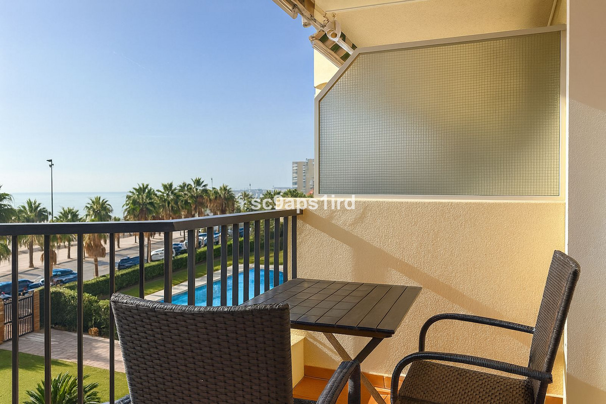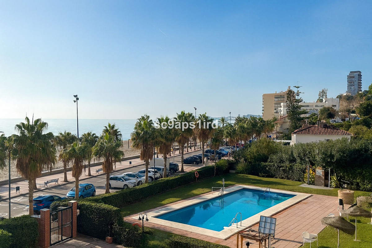 Dit gunstig gelegen appartement op een middelste verdieping geniet een werkelijk bevoorrechte positie aan de Paseo Marítimo in Fuengirola, direct tegenover het strand en op korte loopafstand van treinstation Carvajal. De woning heeft een woonoppervlakte van 94 m² plus een terras op het zuiden van 18 m², met een vrij uitzicht over de Middellandse Zee en de Sierra Nevada-bergen. Het terras is ideaal om buiten te vertoeven en is voorzien van een uitschuifbaar zonnescherm voor schaduw wanneer gewenst. Binnenin beschikt het appartement over drie slaapkamers en twee badkamers, waarbij alle slaapkamers zijn voorzien van inbouwkasten. De indeling is praktisch en comfortabel, met een aparte keuken die tevens dienstdoet als bijkeuken/wasruimte. Het appartement, gebouwd in 1980, maakt deel uit van een beveiligd wooncomplex met een toegangspoort, goed onderhouden gemeenschappelijke tuinen, een zwembad en gemeenschappelijke parkeergelegenheid. Met het strand letterlijk aan de overkant van de weg en op loopafstand van het treinstation, winkels, restaurants en alle dagelijkse voorzieningen, biedt deze woning een uitstekende kans als permanente woning, vakantiehuis of investering op een van de meest gunstig gelegen kustlocaties van Fuengirola.