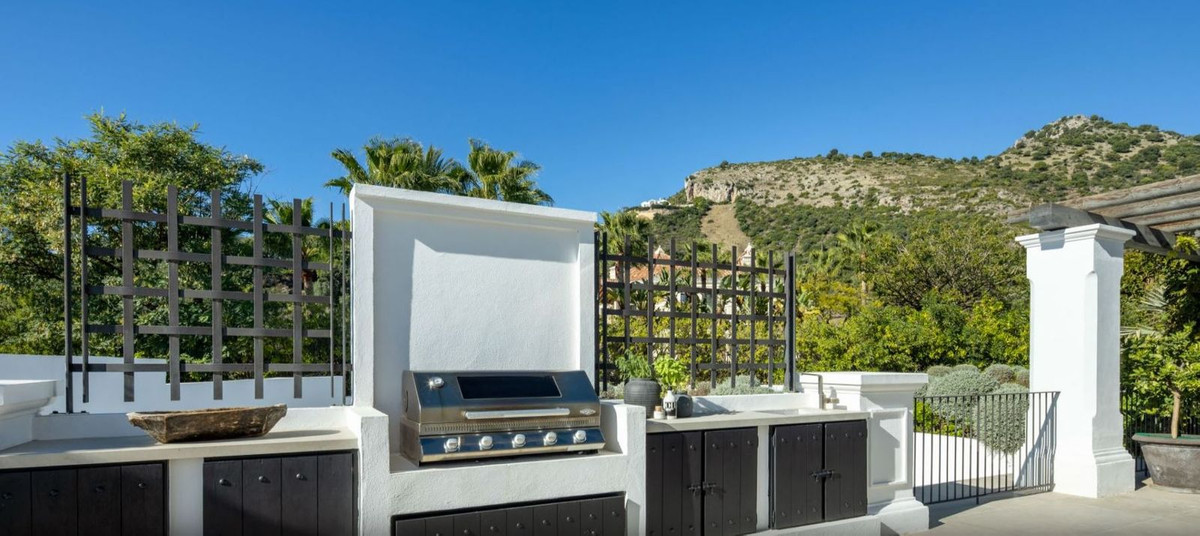 Gelegen in de prestigieuze, 24-uurs beveiligde enclave van het Marbella Club Golf Resort, biedt dit op Andalusië geïnspireerde, maar toch eigentijdse herenhuis een buitengewone combinatie van tijdloze elegantie en moderne luxe. Het exclusieve resort beschikt over een uitzonderlijke 18-holes golfbaan, ontworpen door de legendarische Dave Thomas, en gerenommeerde paardensportfaciliteiten waar de Spaanse kampioenschappen springen worden gehouden. Bij binnenkomst wordt u verwelkomd in een ruime lounge met een elegante glazen open haard die een prachtig uitzicht biedt op het 113 m² grote zwembad, de verzorgde tuinen en de Middellandse Zee. Het zwembadgedeelte is voorzien van hoogwaardige elementen, waaronder een verwarmingssysteem, een elektrische afdekking en zonnepanelen voor de waterverwarming, waardoor u het hele jaar door kunt genieten van een zwembad met een uitzonderlijke energie-efficiëntie. Grenzend aan de woonkamer bevinden zich een privé-tv-kamer en een stijlvolle formele eetkamer, die ideale ruimtes bieden voor zowel ontspanning als het ontvangen van gasten. De begane grond omvat tevens twee ruime slaapkamers met eigen badkamer, elk met directe toegang tot de fraai aangelegde tuinen met prachtig natuursteen, wat zorgt voor een serene sfeer. De open, moderne keuken, uitgerust met hoogwaardige Gaggenau-apparatuur, combineert een strak Scandinavisch design met superieure functionaliteit, waardoor deze perfect is voor dagelijks gebruik of het ontvangen van gasten. Boven imponeert de master suite met een op maat gemaakte kleedkamer en een luxueuze marmeren badkamer, voorzien van een sculpturaal bad met panoramisch uitzicht op de zee en Gibraltar. Twee extra slaapkamers en een volledig ingerichte badkamer completeren deze verdieping en zorgen voor comfort en privacy. Tot de voorzieningen voor ontspanning en welzijn behoren een privégym, sauna, stoombad en een speciale bioscoopzaal met Bang & Olufsen-technologie. Buiten bieden ruime terrassen en een ingebouwde buitenkeuken met barbecue een adembenemend uitzicht op de zee, Gibraltar en Noord-Afrika. Dankzij de ligging op het zuiden geniet u van de zon van zonsopgang tot zonsondergang. Veiligheid en comfort staan voorop, met perimeterbeveiliging, bewakingscamera's en parkeergelegenheid voor maximaal tien voertuigen, waaronder een afgesloten garage en overdekte carports. Bewoners hebben tevens toegang tot het clubhuis van het resort, dat geroemd wordt om zijn verfijnde mediterrane keuken en rustgevende uitzicht op het meer. Met zes slaapkamers, zes badkamers, hoogwaardige afwerking, geavanceerde technologie en doordacht ontworpen recreatieruimtes biedt dit landhuis een uitzonderlijke levensstijl vol privacy, stijl en verfijning op een van de meest gewilde locaties aan de Costa del Sol.