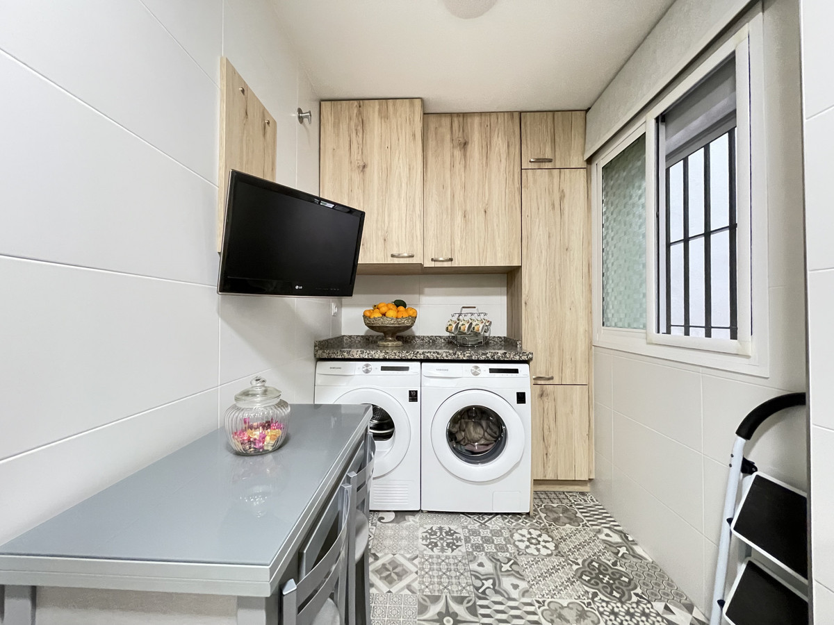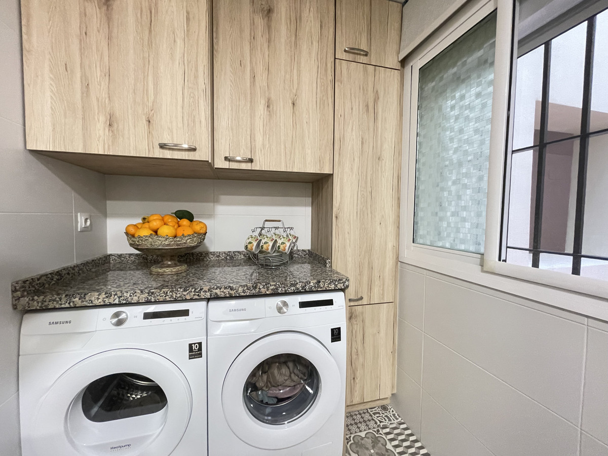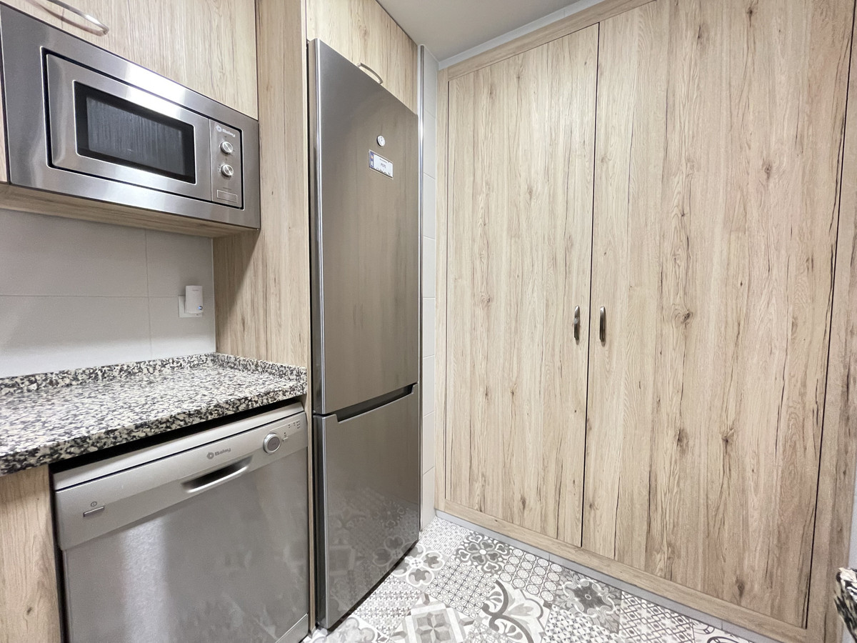 Dit appartement in het centrum van Estepona, Malaga, onderscheidt zich door zijn uitstekende locatie en moderne voorzieningen. Gelegen in een rustige buurt dicht bij alle voorzieningen, bevindt de woning zich op korte loopafstand van winkels, scholen, openbaar vervoer en speeltuinen, evenals het strand, en biedt zo een comfortabele en ontspannen stedelijke woonervaring. De woning, die na een complete renovatie zo goed als nieuw is, beschikt over twee slaapkamers en een badkamer. Een van de kamers is een ruime kleedkamer die optimale opbergruimte biedt. Het appartement is voorzien van airconditioning, tegelvloeren en inbouwkasten, elementen die comfort en functionaliteit bieden. De volledig uitgeruste keuken omvat een praktische bijkeuken. De woonkamer grenst aan een groot privéterras, ideaal voor gezellige bijeenkomsten of om te barbecueën. Het wooncomplex biedt gemeenschappelijke voorzieningen zoals een zwembad en een tuin, waardoor u kunt ontspannen zonder het terrein te verlaten. Bovendien bevindt de woning zich in een beveiligde woonwijk met camerabewaking, wat de veiligheid verhoogt. Het gebouw beschikt over een lift en het appartement heeft een eigen parkeerplaats en berging. Dit alles maakt deze woning een ideale keuze voor zowel een permanente woning als een tweede huis, waardoor u kunt genieten van rust en stilte zonder de nabijheid van alle essentiële voorzieningen te hoeven missen.