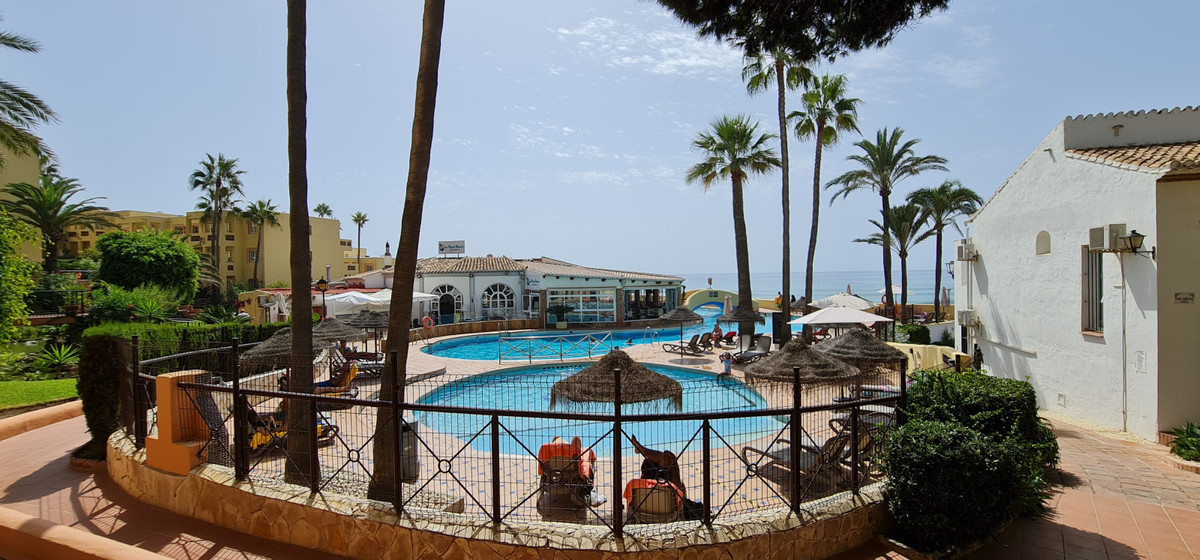 Dit studio-appartement, met een vergunning voor toeristische verhuur, is onlangs gerenoveerd en ligt in een urbanisatie direct aan het strand in Calahonda, Mijas Costa. Alle voorzieningen en het strand zijn op loopafstand. Het is een fantastische vakantiewoning die dankzij de uitstekende locatie van de urbanisatie ook zeer goed verhuurd wordt. Binnen de urbanisatie vindt u diverse restaurants en winkels. De gemeenschap beschikt over een tennisbaan, grote tuinen en een gemeenschappelijk zwembad. Een prachtige studio met een terras op het zuiden en gedeeltelijk uitzicht op zee. Naast de ruime woonkamer vindt u er ook een kleine keuken en een aparte badkamer. Het is ongeveer 30 minuten rijden van de luchthaven en het centrum van Málaga, en slechts 20 minuten van Marbella.