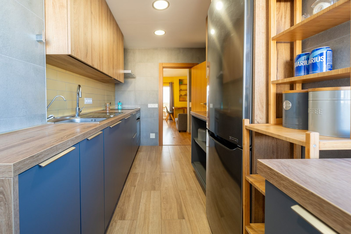 Prachtig gerenoveerd appartement met drie slaapkamers, gelegen in het hart van Fuengirola, biedt de perfecte combinatie van comfort, stijl en gemak. Gelegen op de derde verdieping van een goed onderhouden gebouw met slechts acht appartementen, bevindt deze woning zich op loopafstand van belangrijke vervoersknooppunten, restaurants, winkels, supermarkten en het strand. Het appartement beschikt over een ruime en doordacht ingerichte woonkamer, ideaal voor ontspannen gezinsleven en het ontvangen van gasten. De gloednieuwe, volledig uitgeruste keuken biedt voldoende kastruimte en wordt aangevuld met een aparte wasruimte voor extra gemak. Alle drie de slaapkamers zijn ruim, waardoor de woning ideaal is als permanente gezinswoning, vakantiehuis of investering. De moderne gezinsbadkamer is voorzien van een stijlvolle inloopdouche. Vanaf het terras geniet u van een prachtig uitzicht op het Mijas-gebergte, met een charmant zicht tot aan de Benalmádena-stoepa. Het is de perfecte plek om 's ochtends van een kop koffie te genieten met uitzicht op de levendige sfeer van Fuengirola beneden. Extra voorzieningen zijn onder andere toegang tot een gemeenschappelijke parkeerplaats met twee aparte ingangen, beide beveiligd met elektrische slagbomen. Deze instapklare woning behoeft geen verdere renovatie en biedt een zeldzame kans om een volledig gerenoveerd appartement te bezitten op een fantastische centrale locatie, dicht bij alle voorzieningen. Belangrijkste kenmerken: Gerenoveerd appartement Geen lift aanwezig. Gemeenschappelijke parkeerplaats Slechts acht woningen in het gebouw